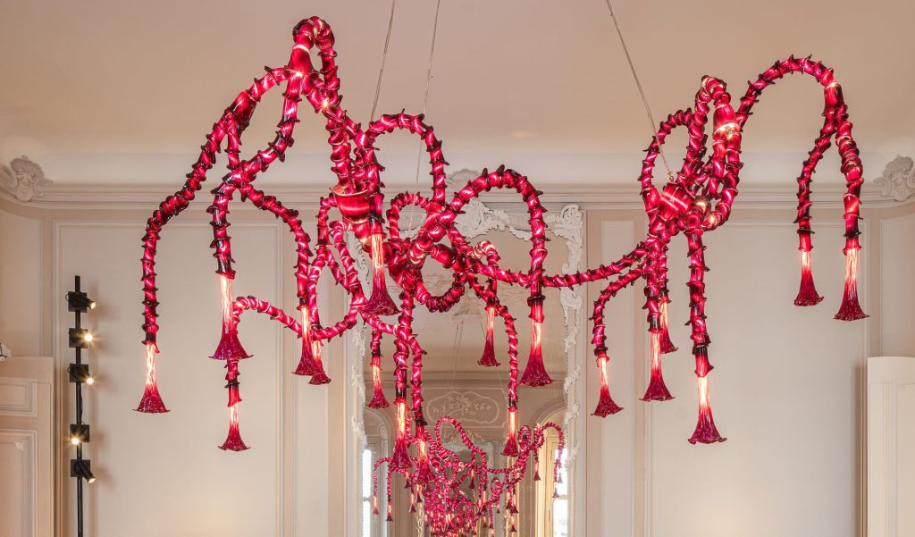 Pellizzari was invited to present his first art installation project at NOMAD Capri in July 2022. His Genetic Variations piece was installed in Prior’s garden in Capri’s old monastery. It was his debut work and first design project, a Murano art glass installation created after several months of experimentation, study of forms and new light technology exploring climate change and the capacity of nature to adapt to it. Pellizzari was then invited to make two new installations in Cairo during Art D’Egypt 2022, presenting two pieces from the Genetic Variations series in flexible satin Murano glass.