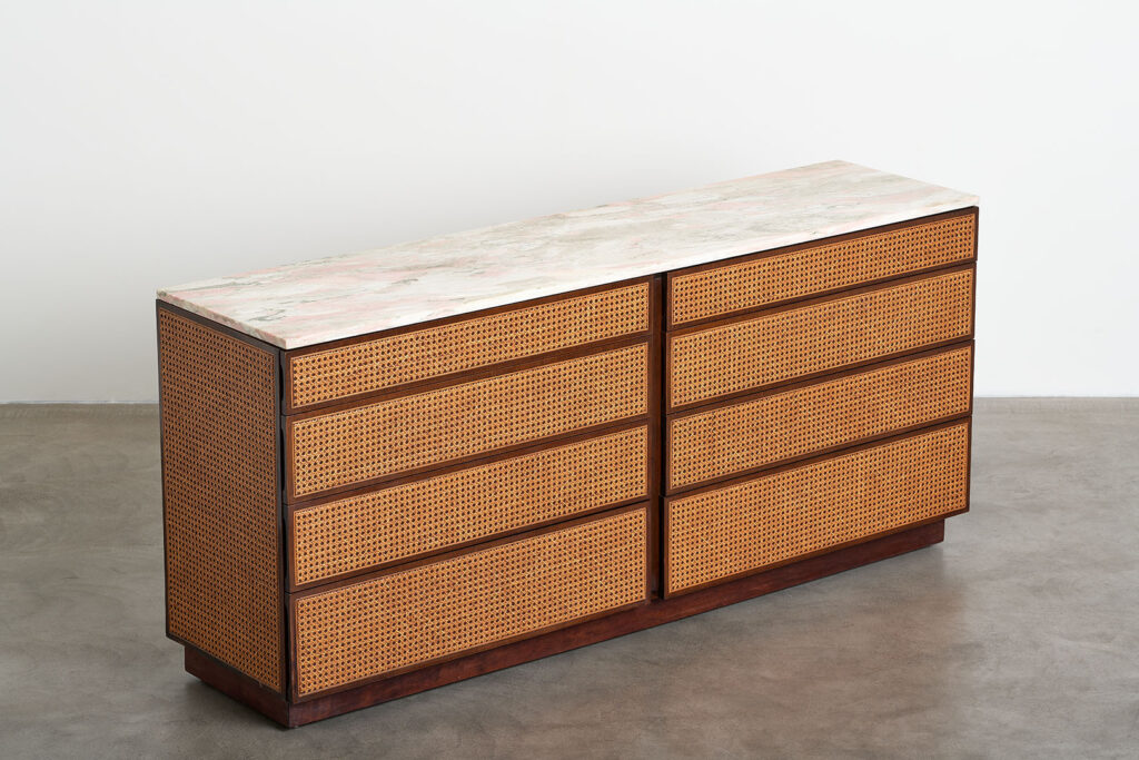 Other notable designers included Vladimir Kagan, who created biomorphic sofas and swivel chairs, Milo Baughman, whose tables and dressers drew from Scandinavian modernism, and Jack Lenor Larsen, who brought dynamic, patterned fabrics to sofas, adding a distinct textile dimension to the collection.