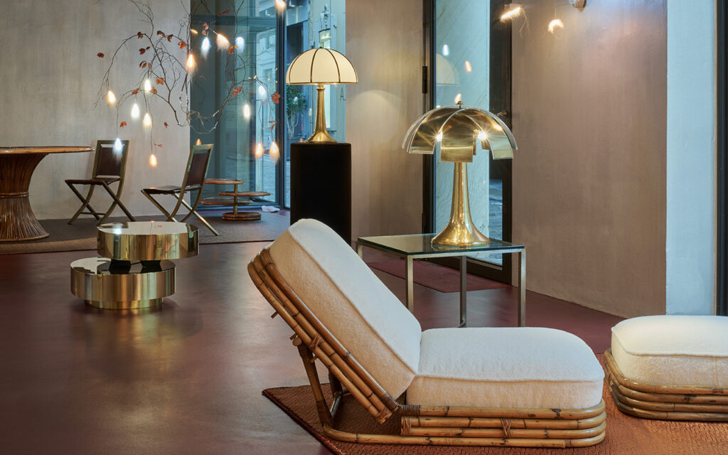 Artist, designer, and entrepreneur, Gabriella Crespi studied architecture at the Politecnico di Milano. Since the 1950s, she has dedicated herself to creating handcrafted furniture and decorative accessories that blend design with sculptural abstraction. As a result of her intense collaboration with master artisans, whose contacts she cherished, she began producing a series of famous collections in the 1960s: the first, Lune, is a line of lamps, frames, and other accessories inspired by the shape of Earth’s satellite; Caleidoscopi, luminous structures with sharp surfaces; Obelischi, an iconic series that recalls the symbol of the divine for the ancient Egyptians; Plurimi, named as a tribute to the artist Emilio Vedova, famous for his Scultura tables, Ellisse, and Cubo Magico; and Rising Sun, which explores versatile materials like rattan, plexiglass, and brass in lamps, beds, and seating. For her invaluable legacy, she has always been a reference point for the aesthetic sensitivity and collecting ethos of Nilufar.