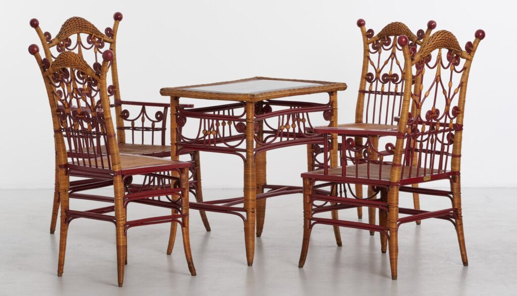 Ditta Italo Crenna, Fabbrica Mobili in Giunco, founded in Florence, gained recognition for its craftsmanship in creating high-quality wicker furniture.