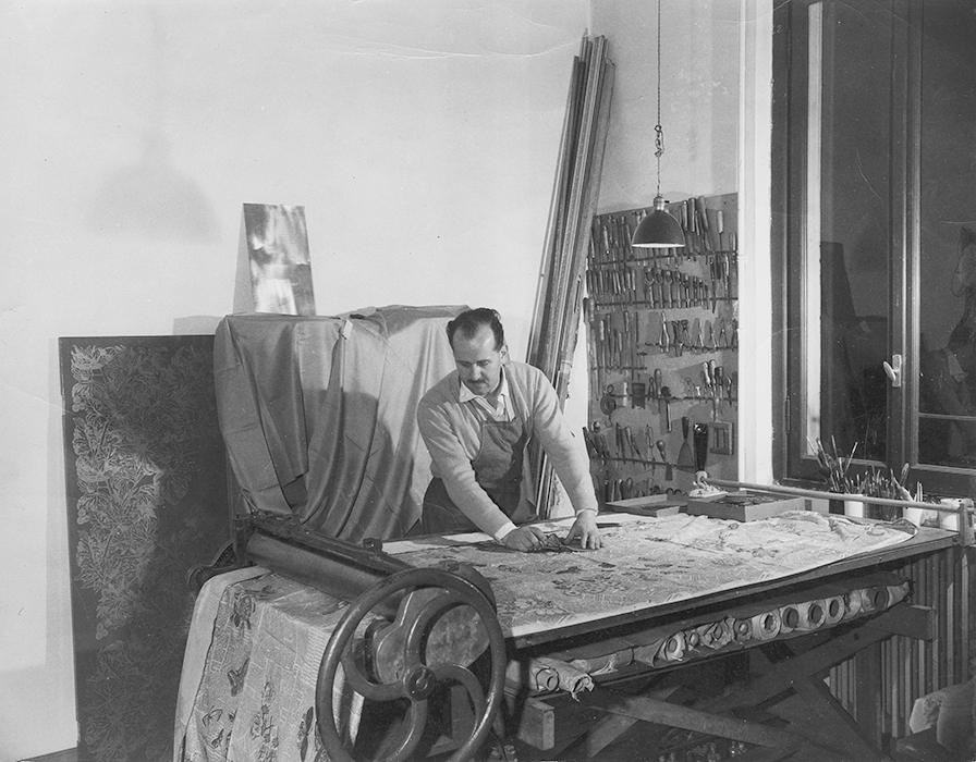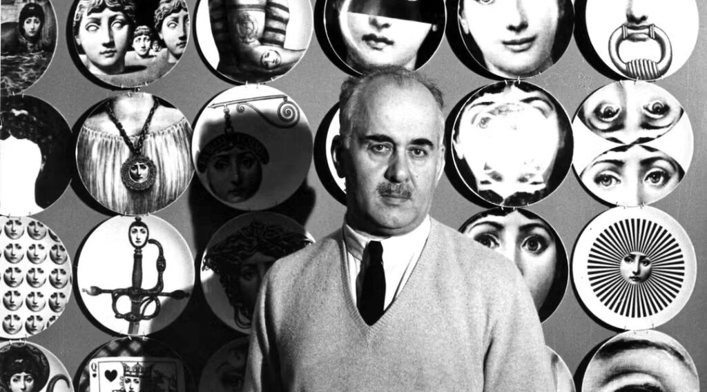 Artist, designer and entrepreneur, he is among the icons of 20th century Italian design. In the 1940s, he founded his eponymous design and decorative arts atelier in Milan. From his meeting with Gio Ponti, the intuition: to produce everyday objects – porcelain, furniture and furnishing accessories – embellished with the hypnotic decorativism of his graphic works. Among his most famous works are the ‘Architettura’ trumeau exhibited at the 9th Triennale in 1951 and the ‘Tema e Variazioni’ series, which declines the portrait of Lina Cavalieri in countless variations, now iconic. He is a witness and winner, with his work, of the challenge of design to survive time.