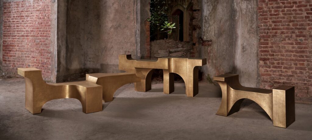 Motifs commemorating ancient narratives, traditions and philosophies are subtly reimagined and contextualized in novel material applications across his work. While the studio’s co lectible pieces are revered by galleries, art fairs, interior designers, craft enthusiasts and co lectors, the designer’s initial creative projects are still celebrated. Goyal’s heartfelt mission to revive metalwork and other traditional crafts in a more accessible form launches in the summer of 2024. He has also co-founded beauty and welness brand Kama Ayurveda, which elevated and gave modern relevance to an ancient system of medicine. Among his more personal projects is Shringara of Shrinathji, the collector’s edition book he conceived and co-designed in 2022, which features miniature paintings of the Hindu deity Lord Shrinathji from his family collection. His studio’s creations share a sense of timelessness with the antique craft pieces that he personally collects. Goyal has been named in Architectural Digest’s definitive list of the 100 most influential architects and interior designers in India and is a winner of an Elle Deco International Design Award. He is represented by Nilufar Gallery in Milan and has exhibited at the 2023 & 2024 editions of the India Art Fair and at PAD London 2023.