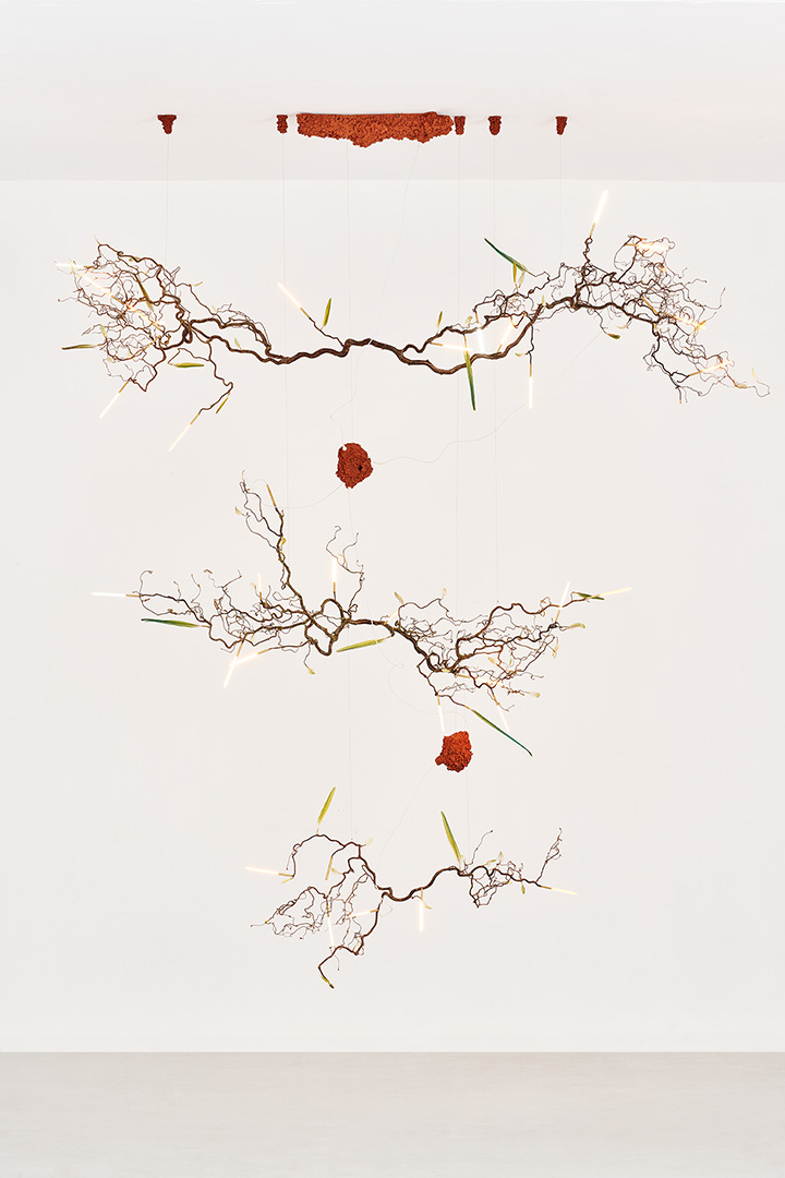 Marchesani’s research stands in a special position—on the edge—in a new and fascinating form of balance between the natural and the artificial. Here matter is no longer forced and forged by an anthropocentric instinct, but on the contrary, technology is digested by the natural element, which becomes its skin and skeleton. The artificial is meticulously integrated into the natural, inhabits it almost invisibly, maintains its technological function and remains excluded from the aesthetic one.
