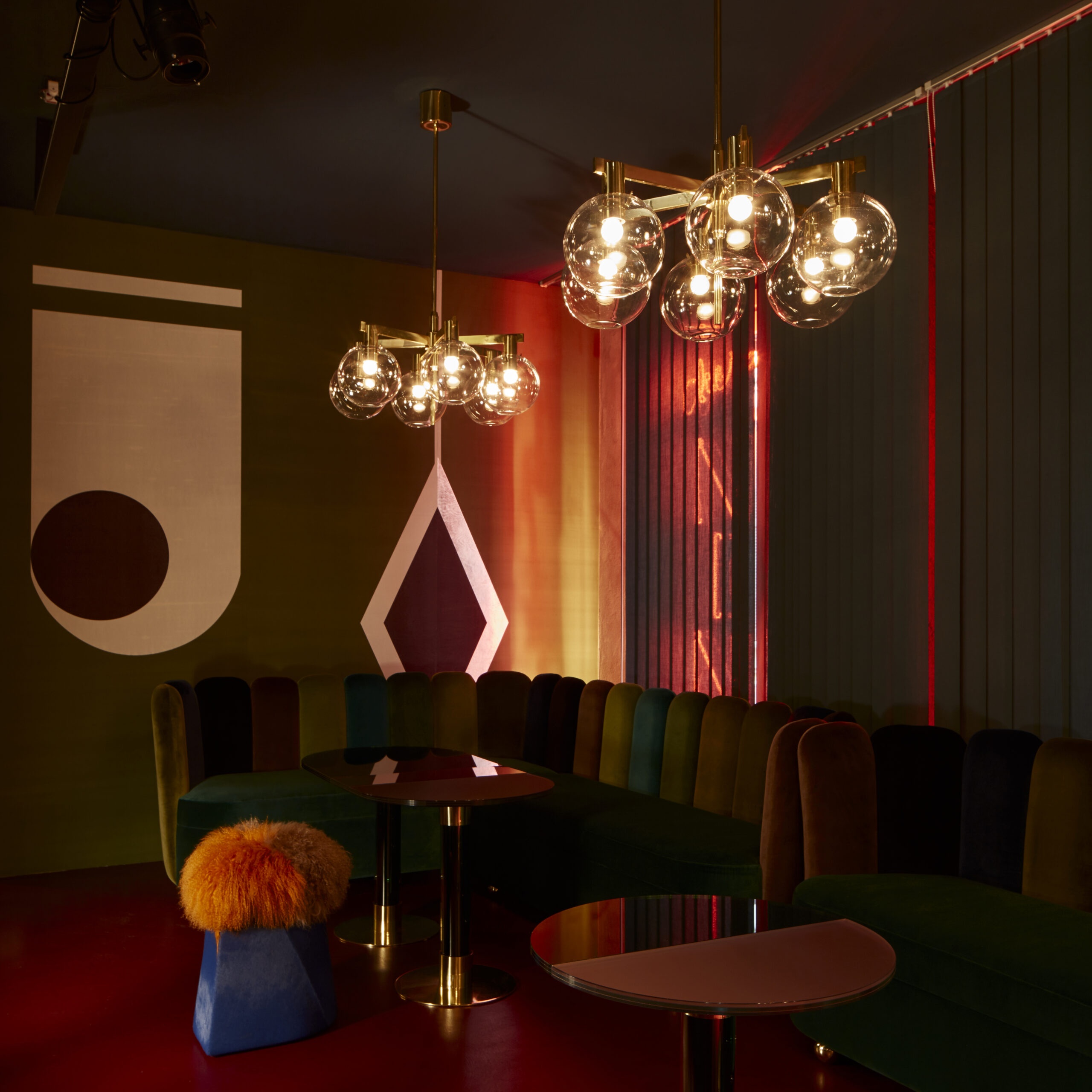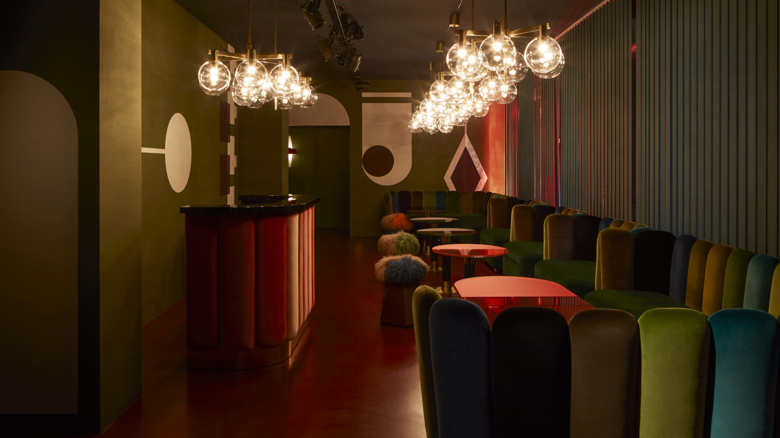 “The spaces are defined by an amazing blend of rounded shapes and specifically designed graphic motifs”, architect and designer India Mahdavi said, “it’s the perfect place to listen to Satie while sipping a long drink.”