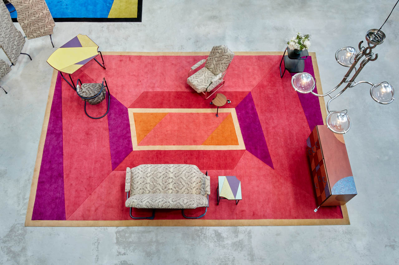 On the occasion of Nilufar’s Milan Design Week, Martino Gamper presents the installation ‘Innesto (Rubbing up the wrong tree)’, designed by Gamper and curated by Nina Yashar. The installation showcases an entire new collection of carpets and furniture.