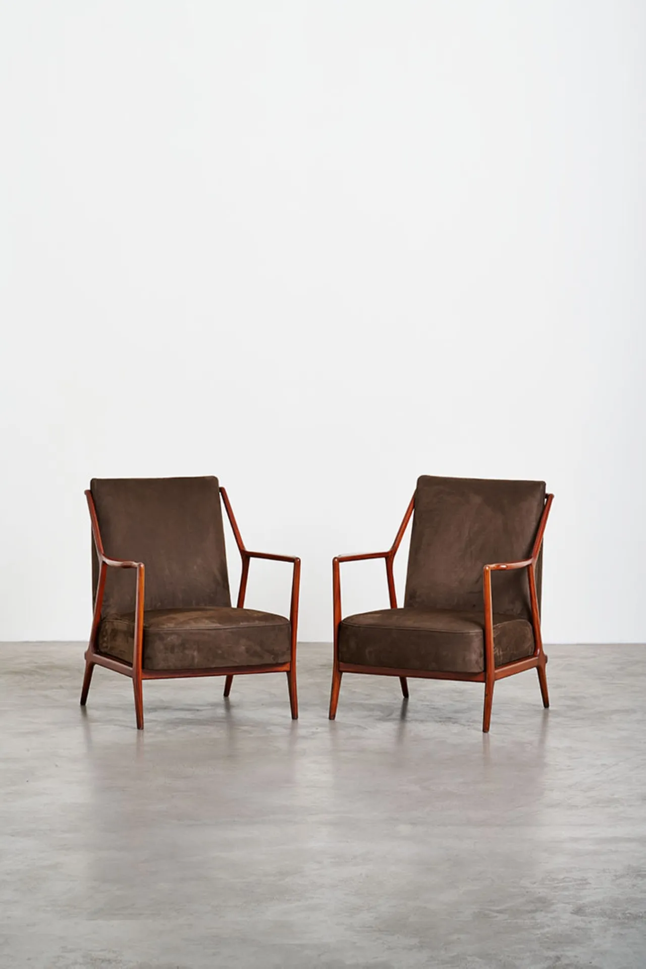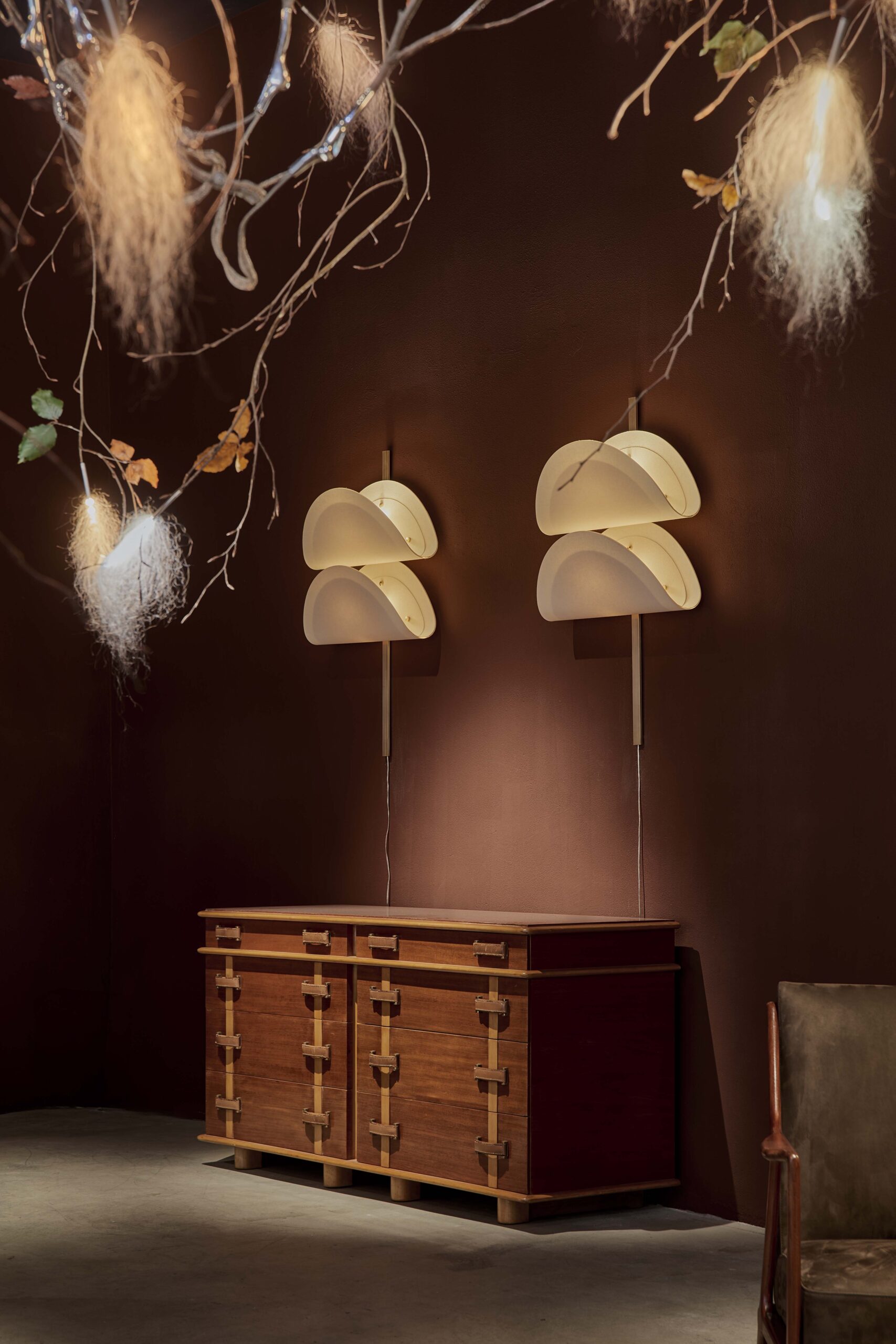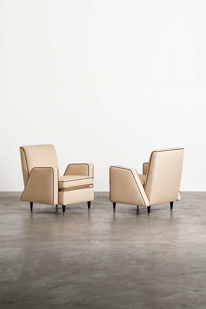 Focusing on the vintage selection, Nilufar presents a pair of 1950s American design armchairs by James Mont, showcasing enduring appeal and craftsmanship, 1970s low tables and lamps by Italian designer Gabriella Crespi, emblems of retro charm, and a pair of mid-century Brazilian design armchairs by Giuseppe Scapinelli epitomize elegance and comfort.