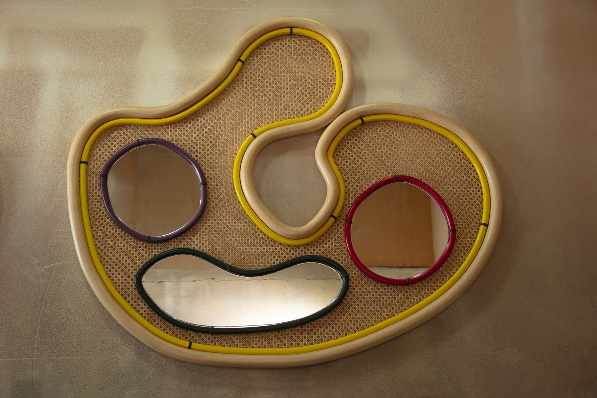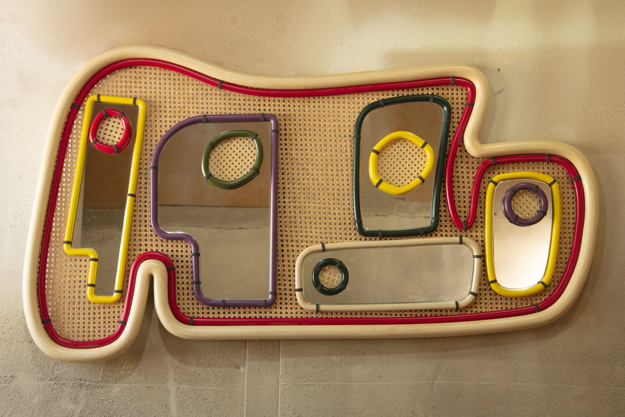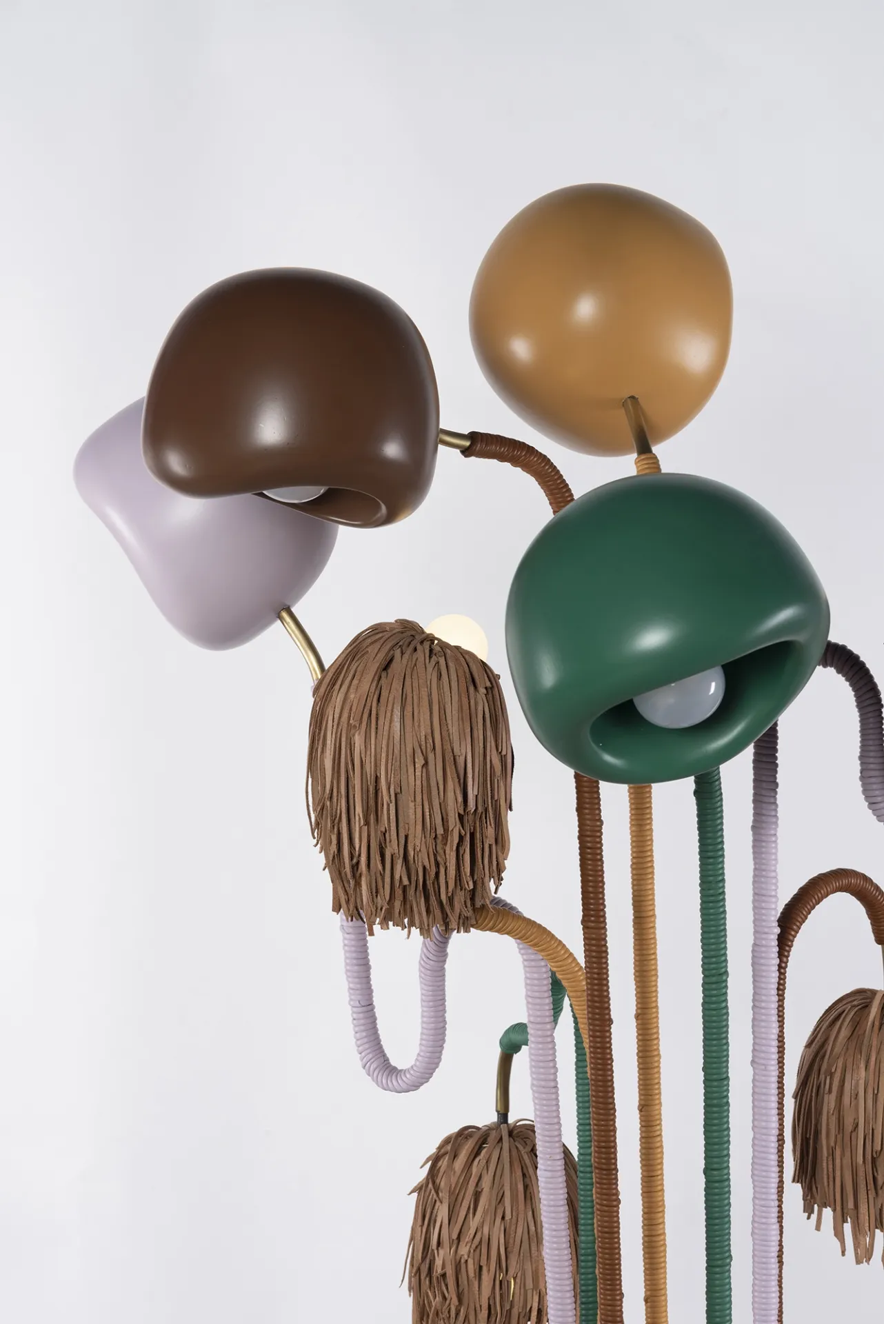 The dreamy effect of the set-up is enhanced by the wall installation that invites visitors to sit and dream about an otherworldly experience. The Medusa lamp inserted in the space of the installation will also bring an element of the imaginative realm, that is being witnessed while sitting on the Flora Modular Sofas, to the physical world – the same one we are experiencing right now.