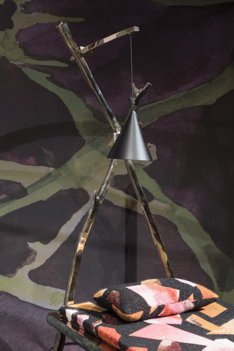 An elegant daybed inspired and constructed following the famous survival principle: “a-frame”. Careful selected branches which had just the perfect size and shape for this object were refined and adjusted in our own wood workshop. They were constructed in a strong and aesthetic way before casting them in bronze. The natural primitive elements have stayed rough as they were and the human primitive elements have been polished in order to create a harmonious contrast within one object.