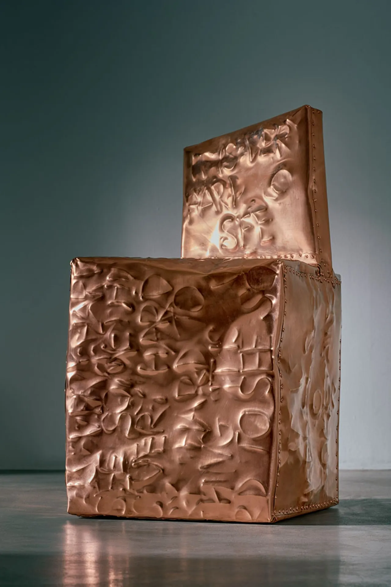 Exploring the interplay between familiar shapes and unexpected materials, this body of works by Shlomo Harush delves into the ongoing relationship between art and function. The manipulation, gravity, intertwining and nailing of the copper alloy or brass in gold tones express tension, life and experience, a feeling of contemporary existence and artistic communication.