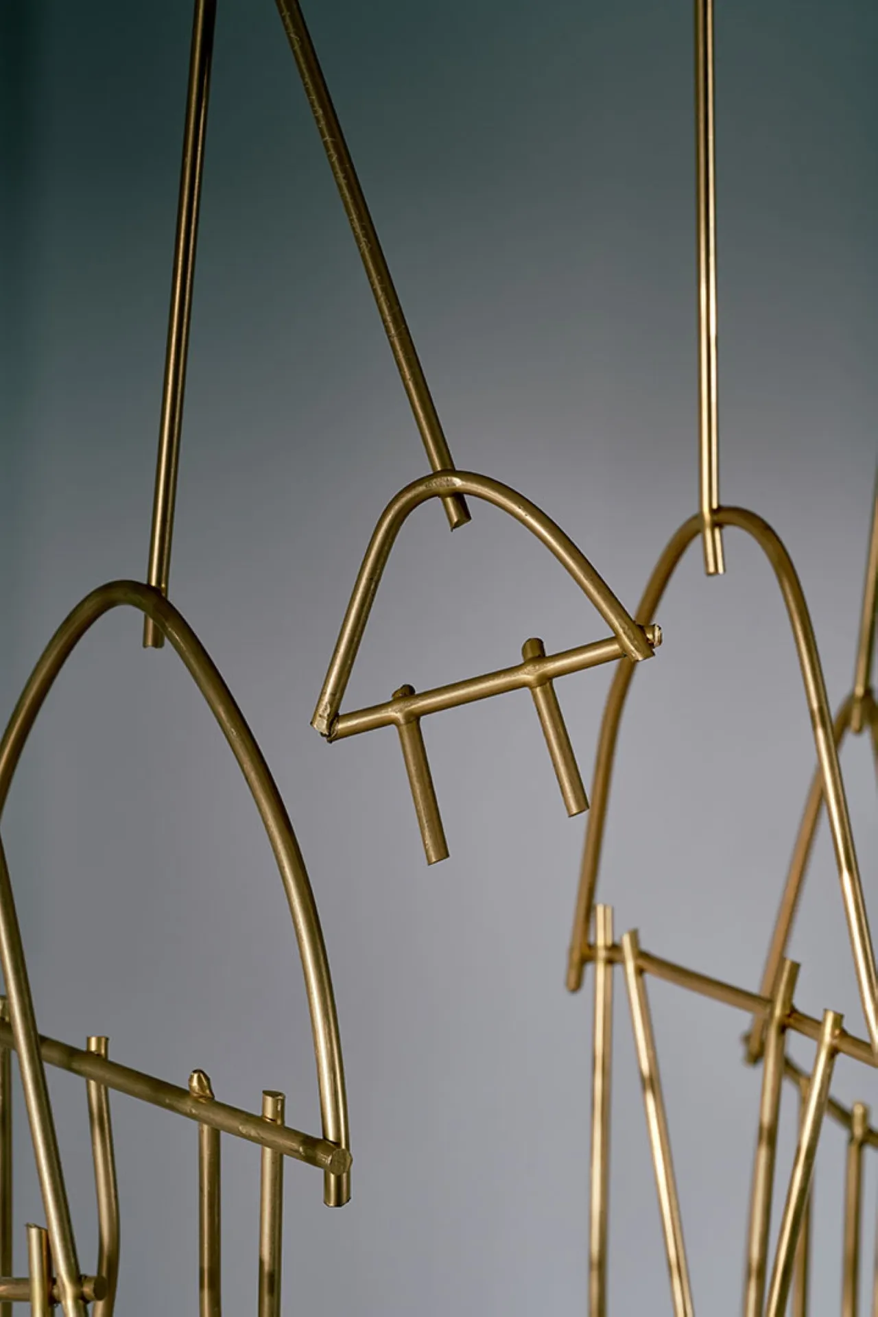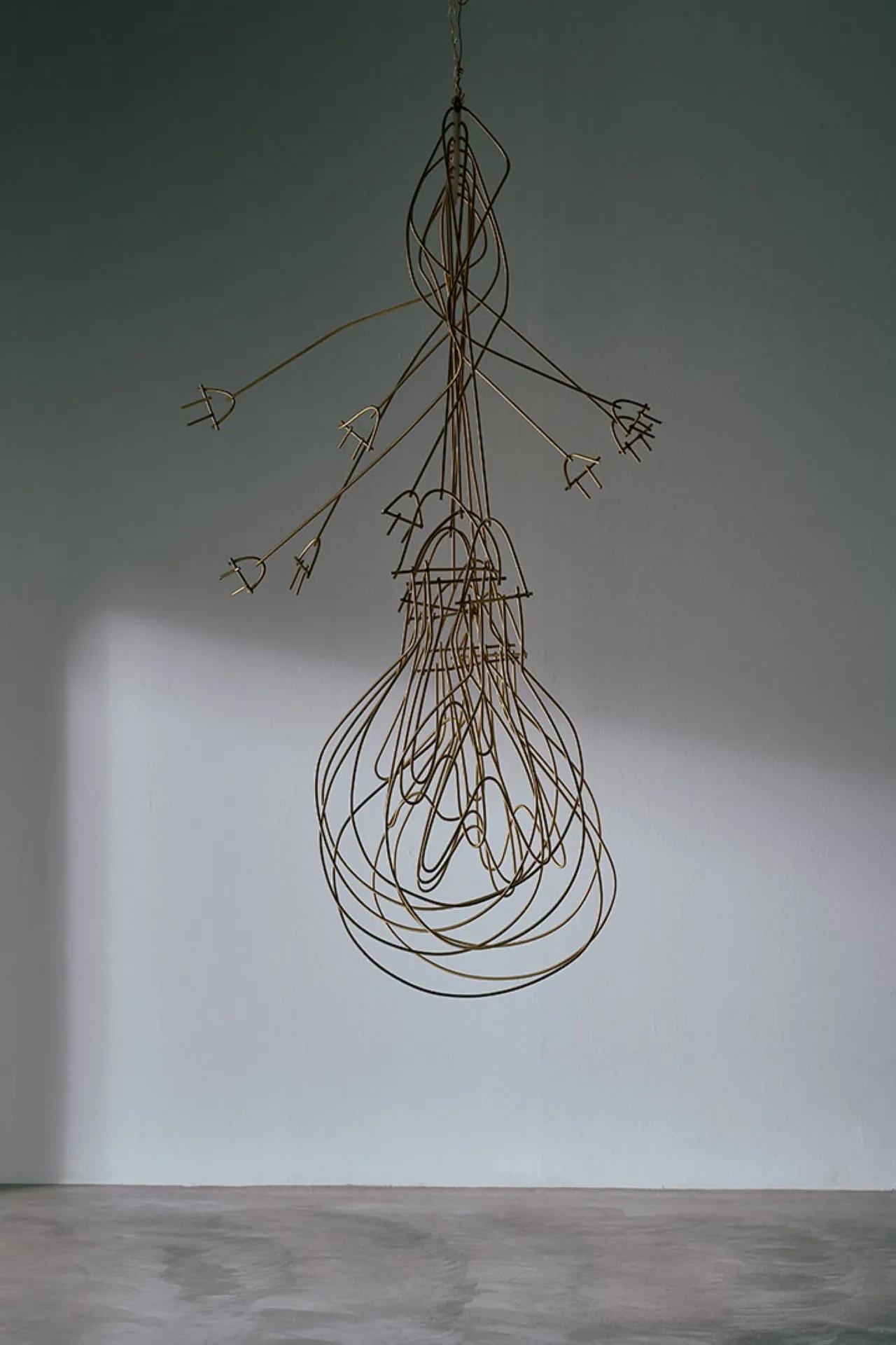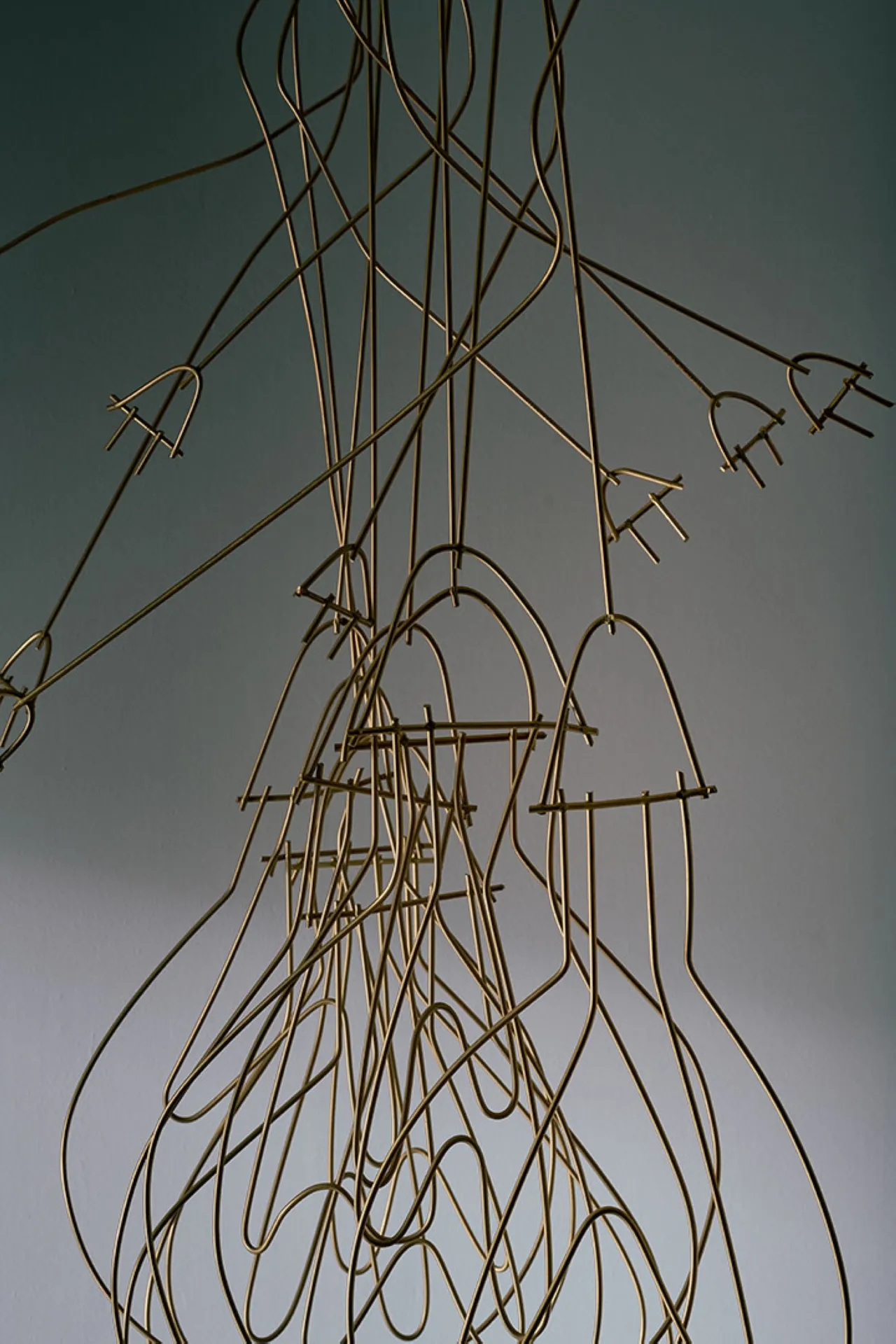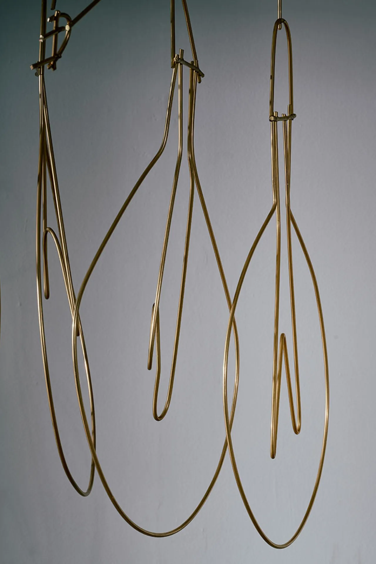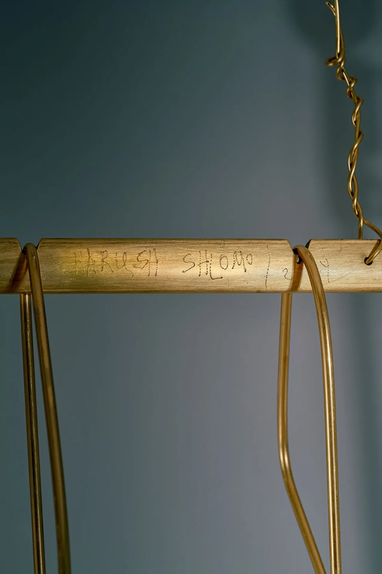 Exploring the interplay between familiar shapes and unexpected materials, this body of works by Shlomo Harush delves into the ongoing relationship between art and function. The manipulation, gravity, intertwining and nailing of the copper alloy or brass in gold tones express tension, life and experience, a feeling of contemporary existence and artistic communication.