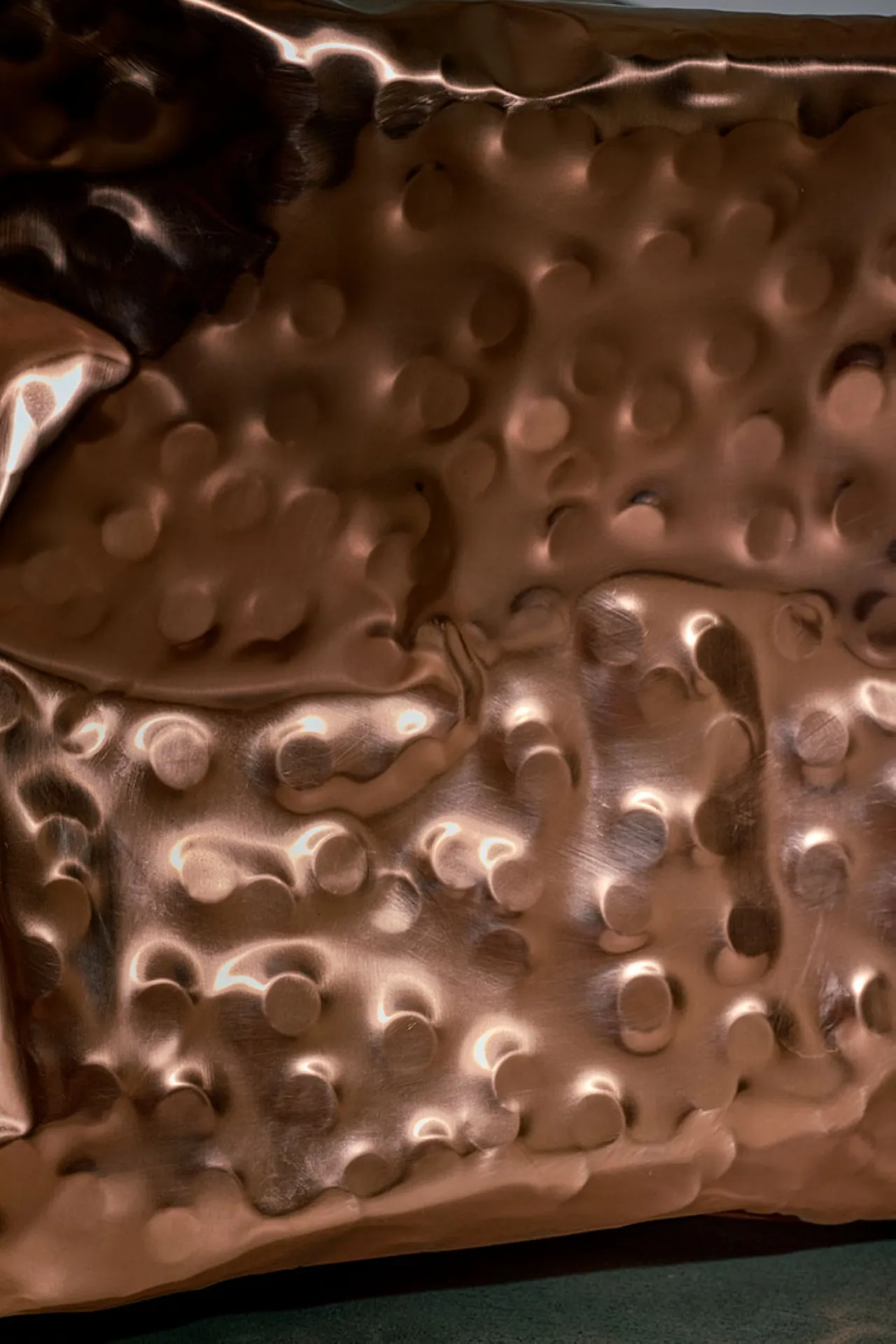Exploring the interplay between familiar shapes and unexpected materials, this body of works by Shlomo Harush delves into the ongoing relationship between art and function. The manipulation, gravity, intertwining and nailing of the copper alloy or brass in gold tones express tension, life and experience, a feeling of contemporary existence and artistic communication.