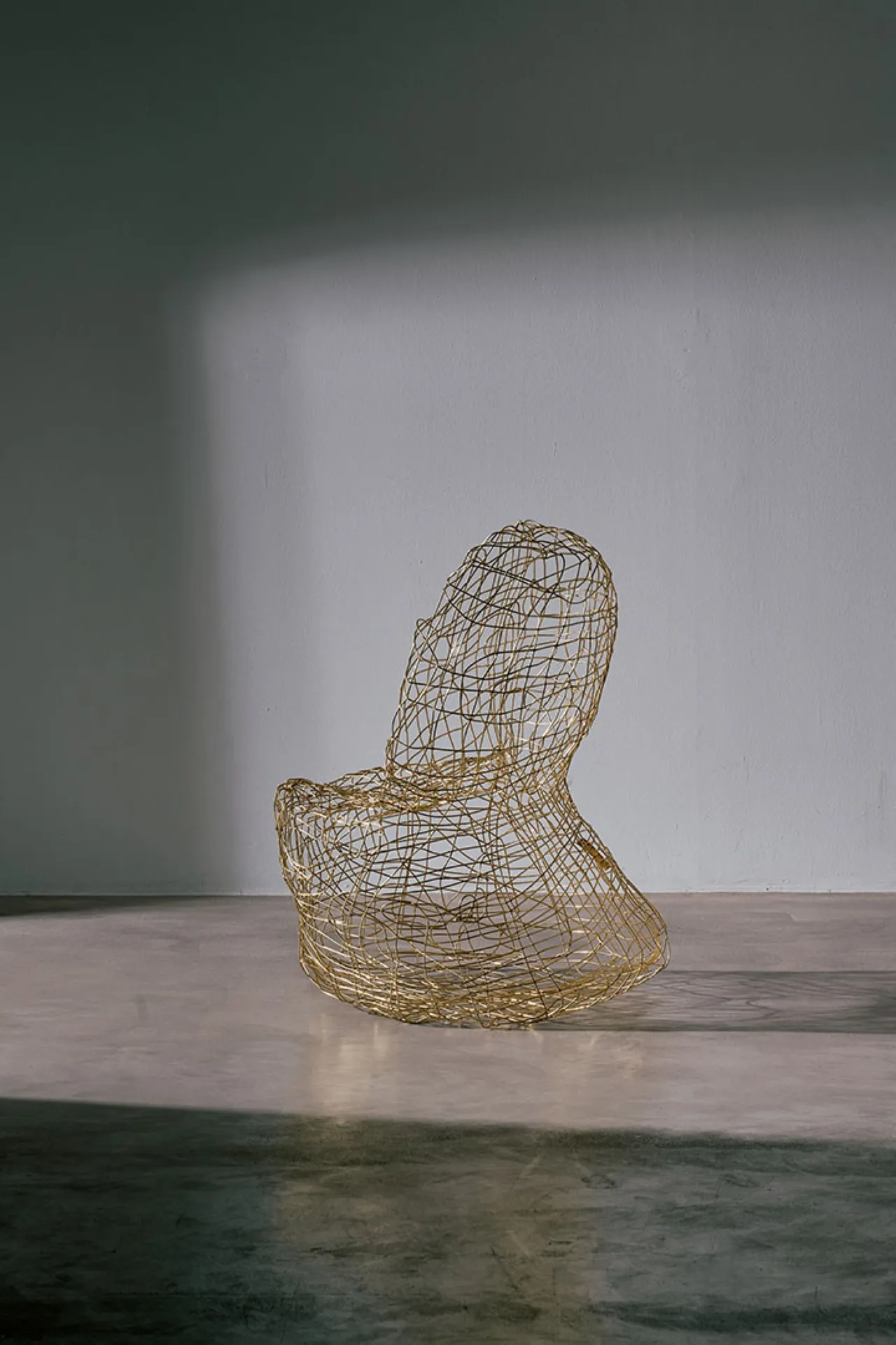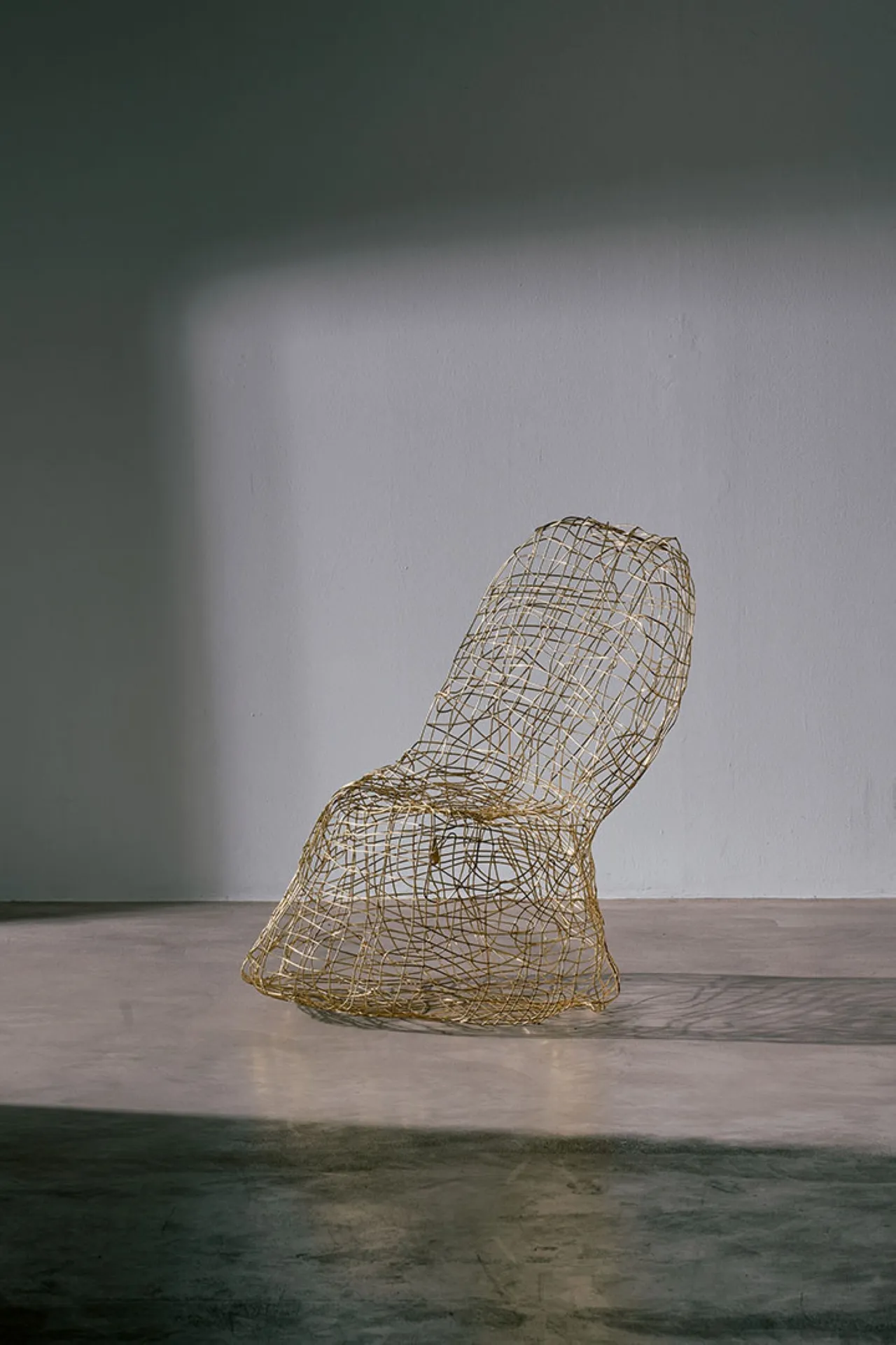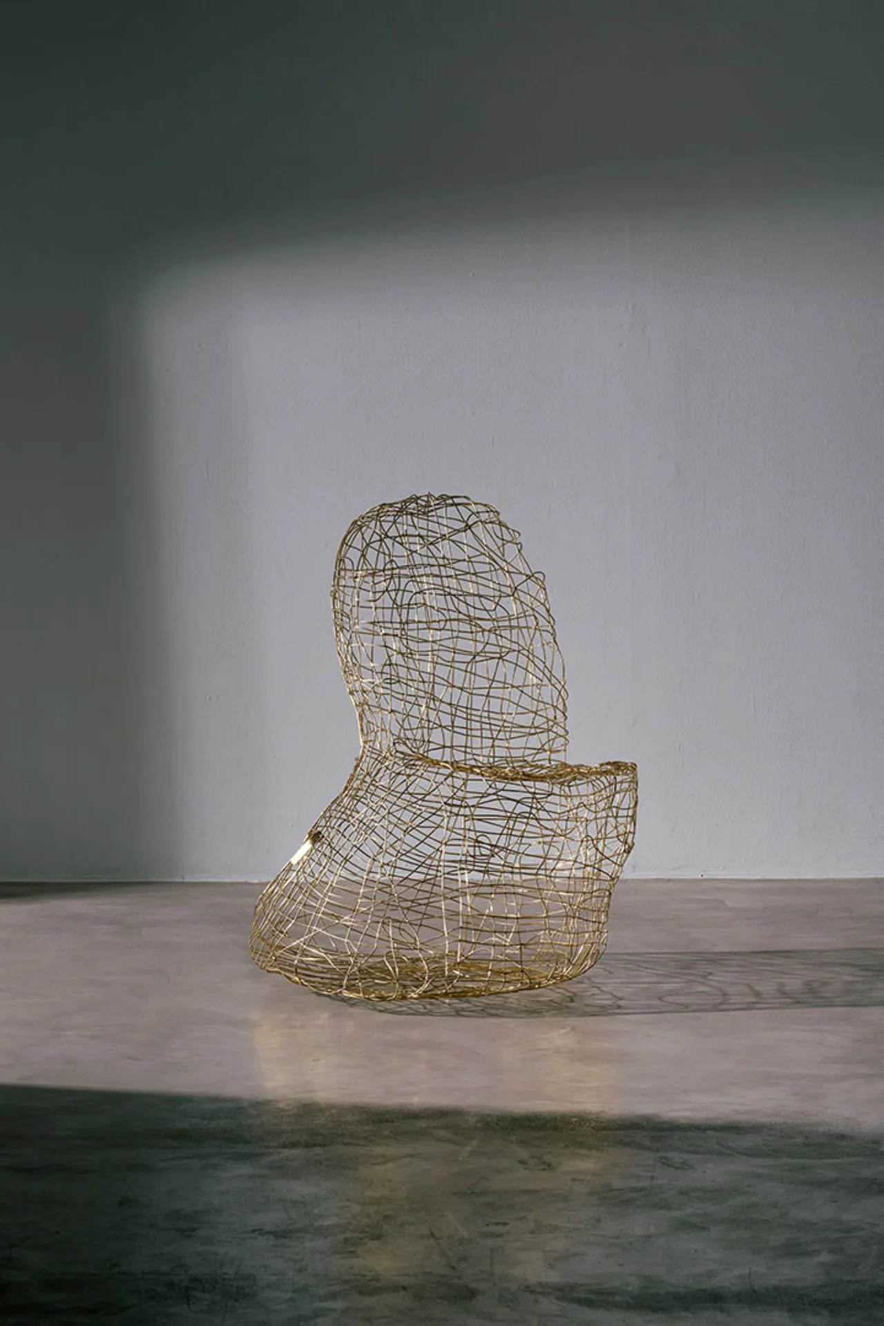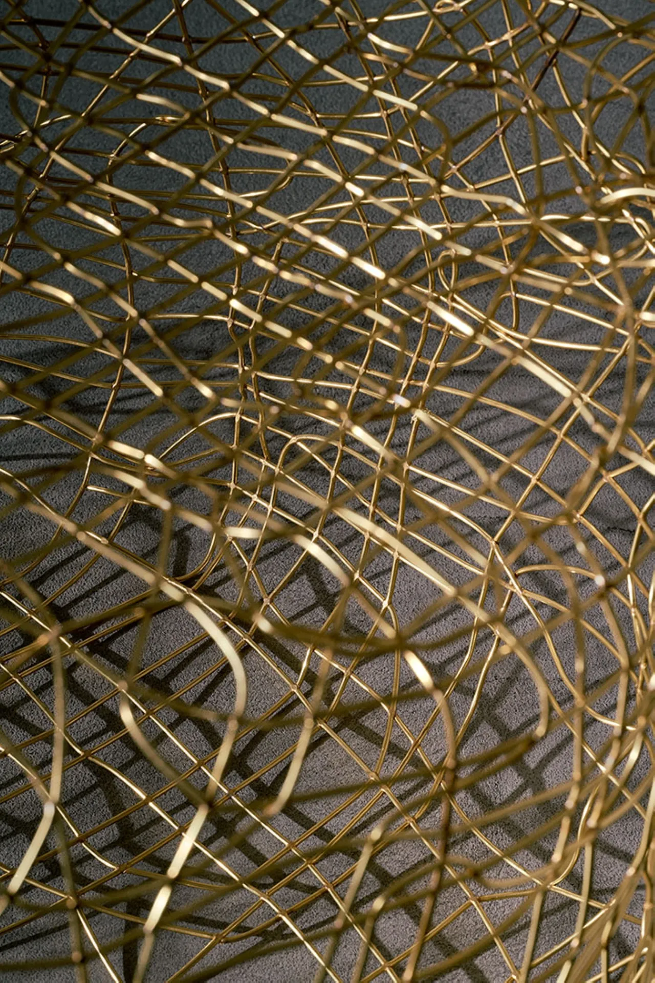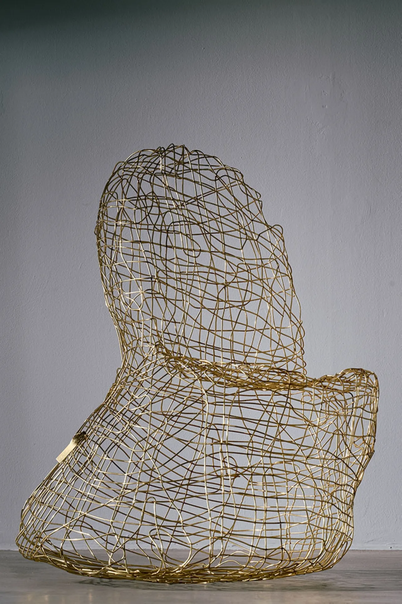 Exploring the interplay between familiar shapes and unexpected materials, this body of works by Shlomo Harush delves into the ongoing relationship between art and function. The manipulation, gravity, intertwining and nailing of the copper alloy or brass in gold tones express tension, life and experience, a feeling of contemporary existence and artistic communication.