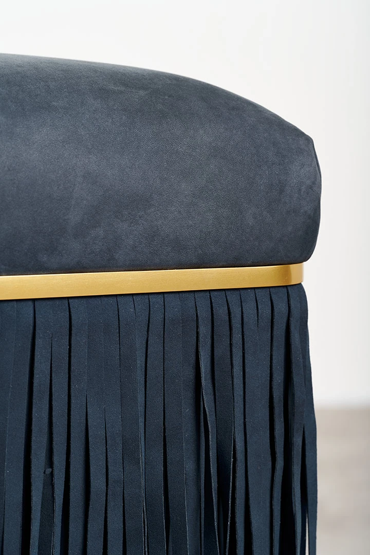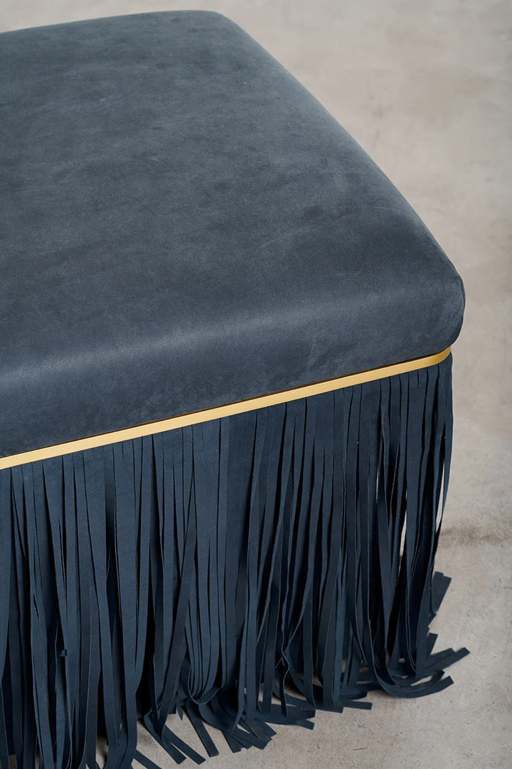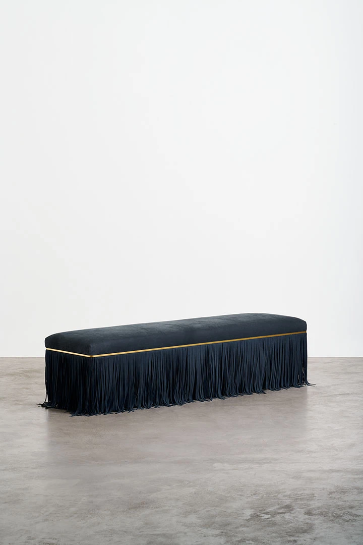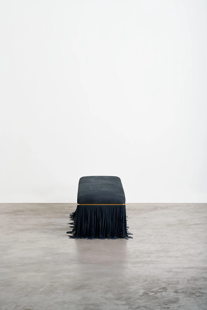 Bald, an innovative furniture line conceived by two designers at TGDD, inspired by the love of hair. In a playful twist, this collection celebrates the absence of hair through its fringe-centric design. Bench, sofa, and armchair are adorned with simple bases, serving as canvases for customizable fringes that mimic hairstyles.The seemingly clean lines of the Bald furniture series give way to a dramatic decorative flourish. Upholstered in nubuck leather with a seat in polyurethane foam, this caramel-hued sofa sports a lush fringe at the sides that evokes a fetchinghairstyle and sharply contrasts with the smooth appearance of the seats in a whimsical game of minimalist and maximalist details.