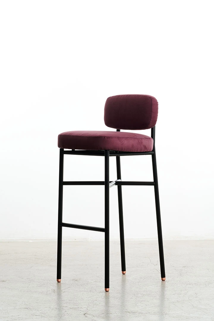 The Dualita series of furniture incorporates contemporary lines with a touch of retro styling. The offering is composed of a chair, armchair, bench and bar stool all featuring an iron structure, vivid monochromatic colors and upholstery in Alcantara.