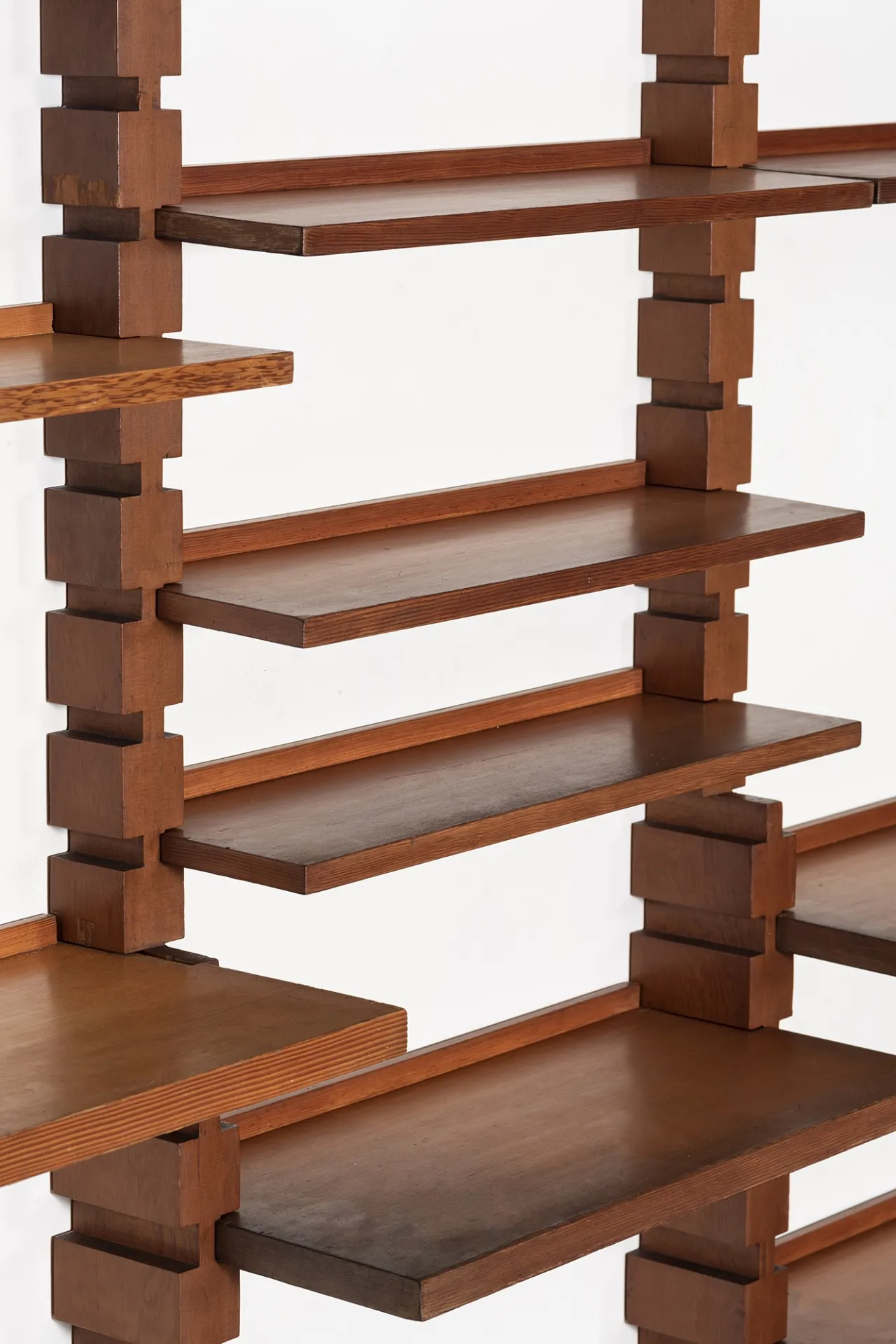 Designed by Ignazio Gardella in the 1960s, this bookcase exemplifies his seamless fusion of tradition and modernity. With its interlocking of modular wooden shelves and timeless design, it reflects Gardella’s dedication to creating sophisticated, elegant pieces that balance functionality with refined aesthetics.