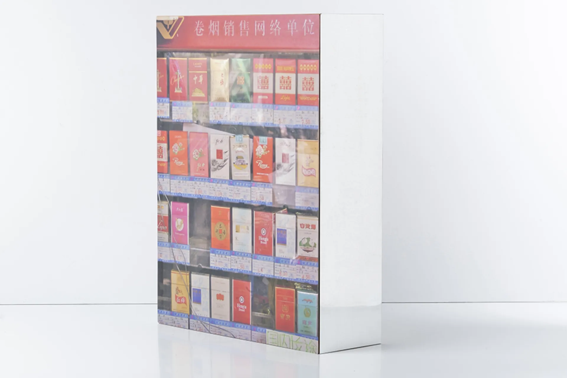 Super-Market collection by Caturegli Formica features small "photo-box" wall units adorned with images of real places and objects, like book piles in Chandigarh and perfume shops in Dubai and Cairo. Through the serialization of objects, the project ironizes on global consumption, suggesting that even a supermarket can be a space for meditation, where everyday items become cult objects.