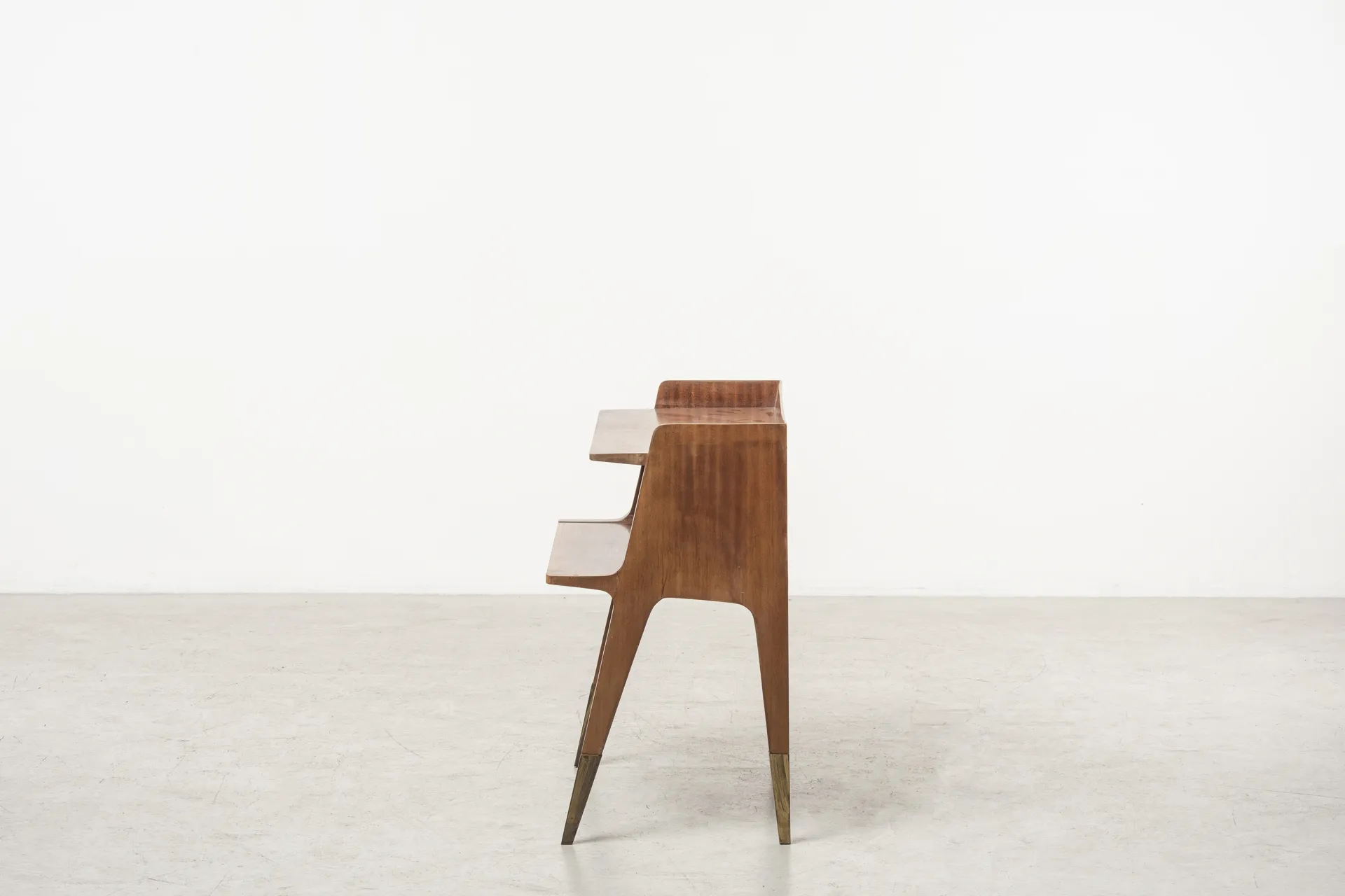 Manufactured in Italy in the 1950s, this cabinet is one of many pieces exemplifying Gio Ponti’s extensive work for private apartments and interiors. Featuring high quality wood and simple yet captivating form, it stands as a timeless icon. A multidisciplinary talent, Gio Ponti investigated art, architecture and design through continuous research into shapes, materials and the essence of reality. Ponti believed that design transcended mere functionality, seeking to harmonize form, creativity, beauty and efficiency.
