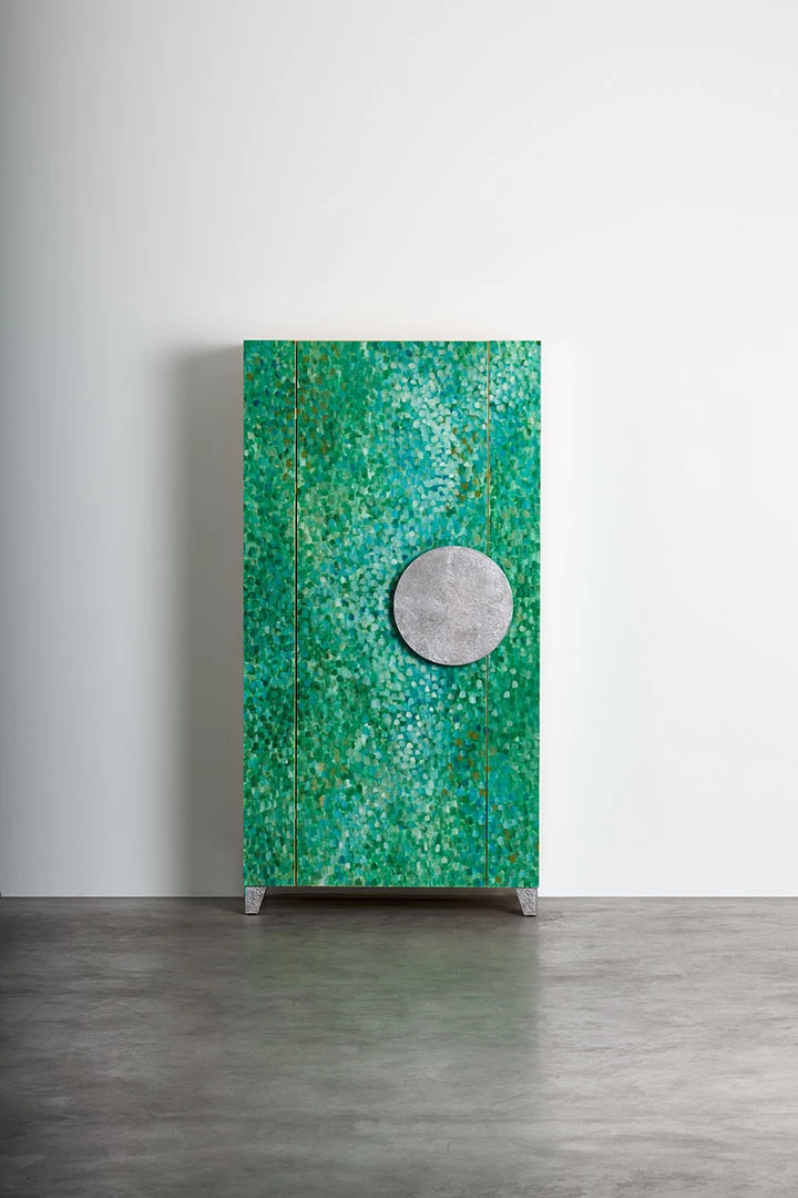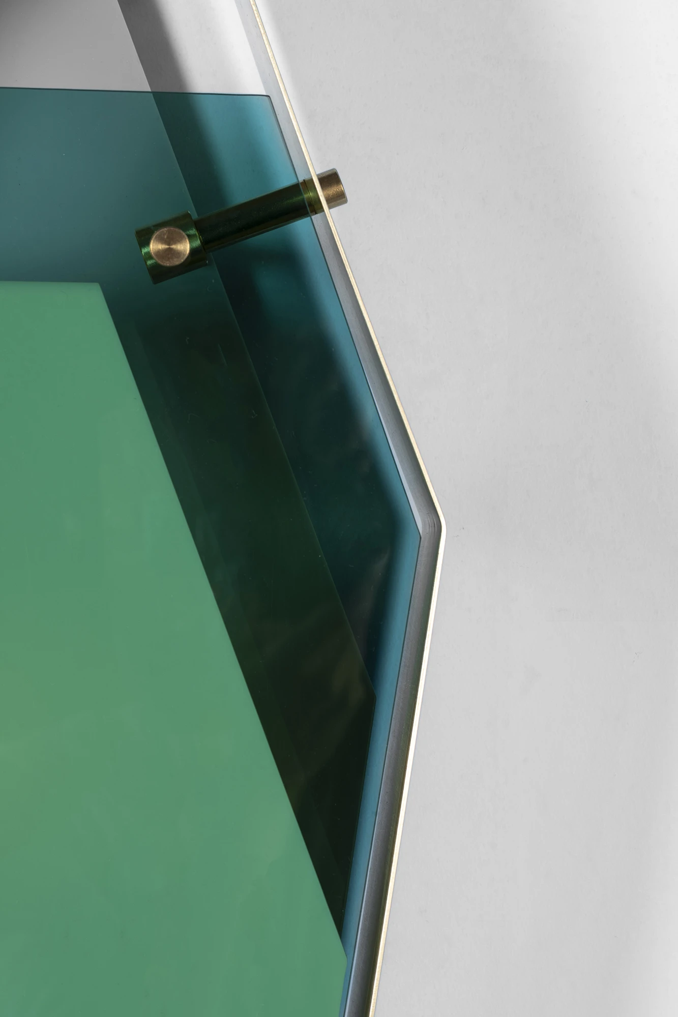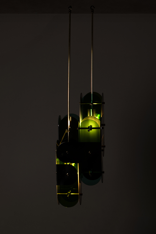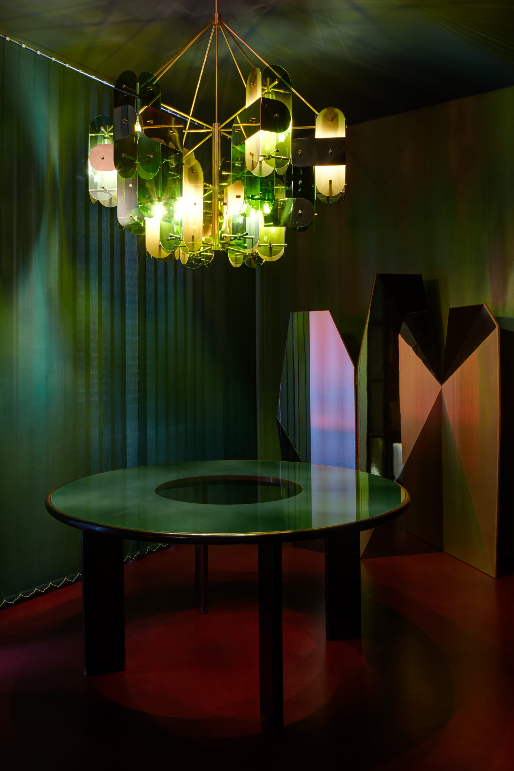 The ASTA series was created for the Chez Nina Club Episode II - a club imagined by India Mahdavi for Nilufar during the MDW in 2019. The ASTA lights are the result of a process driven by color dynamics, translucence and craftsmanship, fusing method and aesthetic in plexiglass and brass. The lights are constructed of a mix of opaque and transparent plexiglass. The light passes through the transparent layers and enhances the colors.The opaque layers shield the lightsource, but still allow the light to pass. This creates a contrast- filled interplay of color, geometry and construction that produces light, reflections and mirror effects.