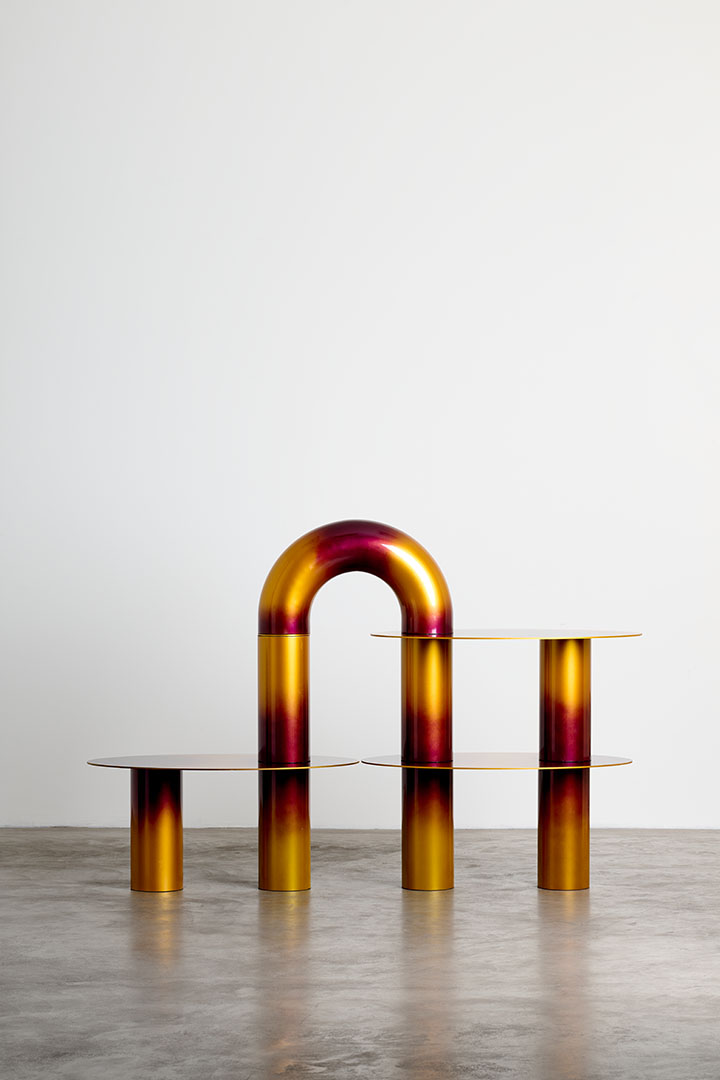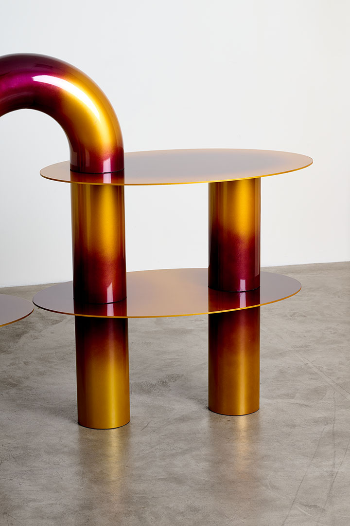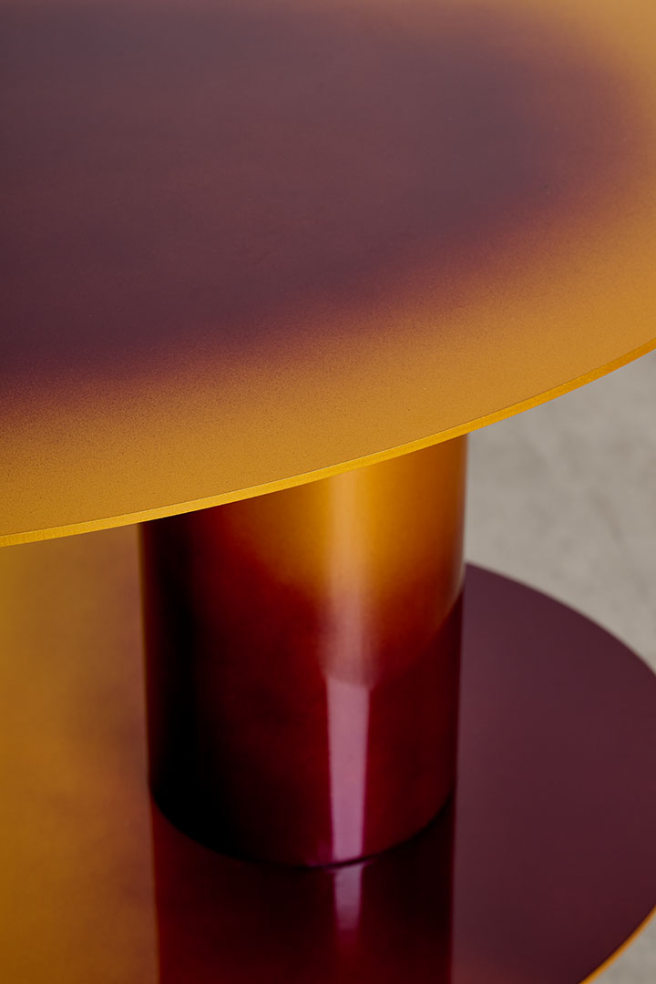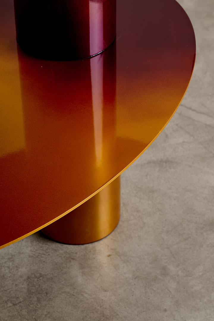 Chromed and gradient painted metal with magnetic surfaces