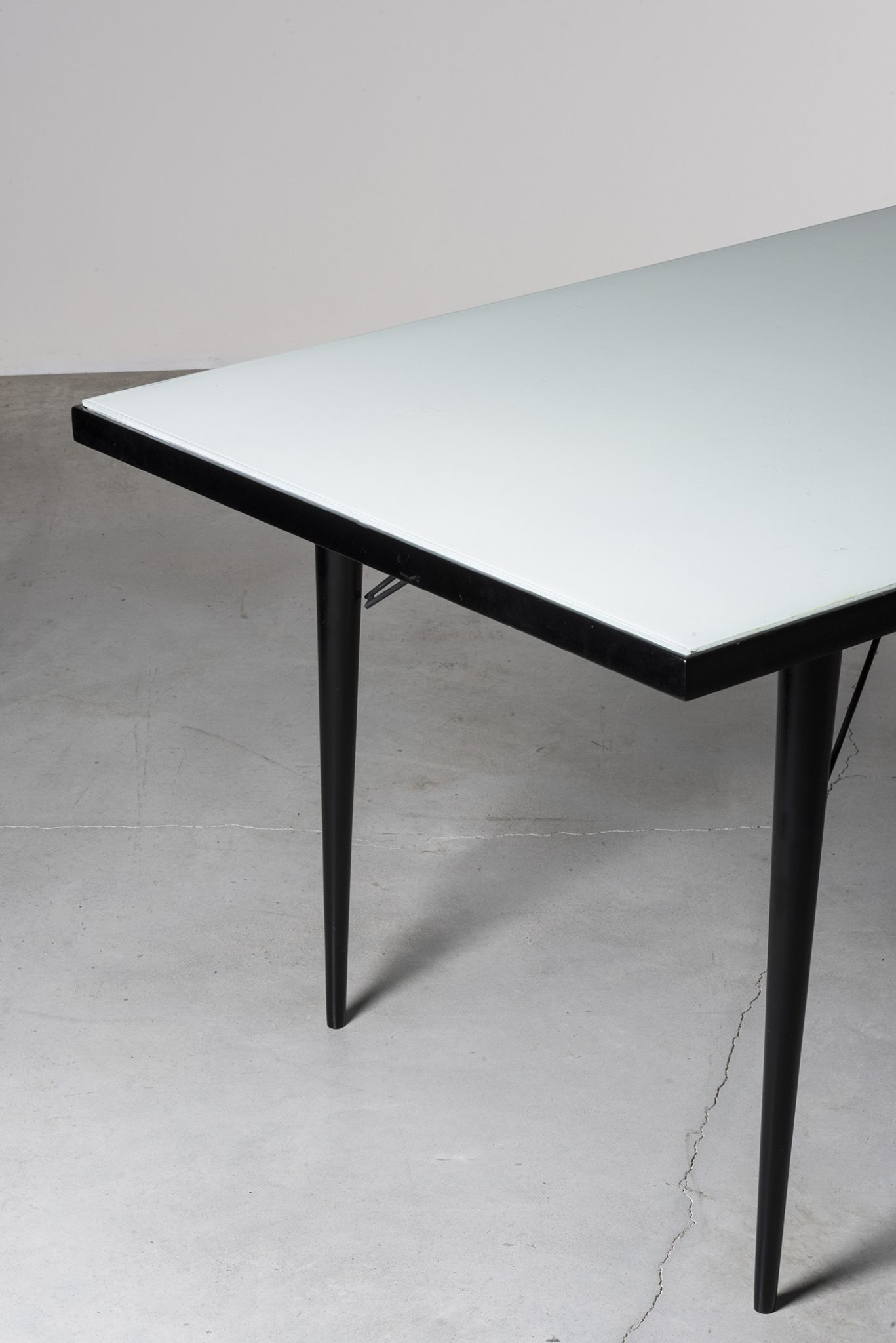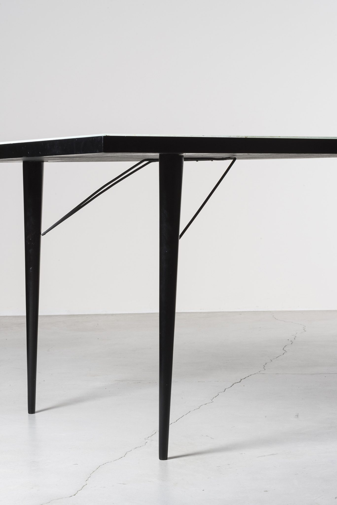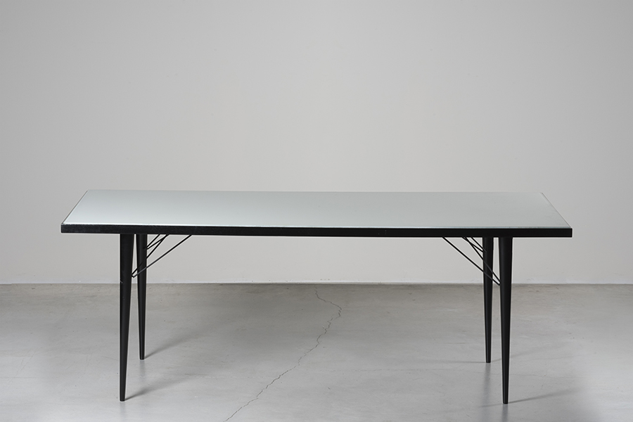 Manufactured in 1950 by Joaquim Tenreiro’s company, Tenrerio Móveis e Decorações, this dining table embodies his visionary approach to design. By incorporating iron, Tenreiro emphasized geometrical and clean lines while maintaining a refined, lightweight, and sophisticated aesthetic. The result is a timeless icon, celebrated for its masterful execution, craftsmanship and versatility, able to adapt to any environment.