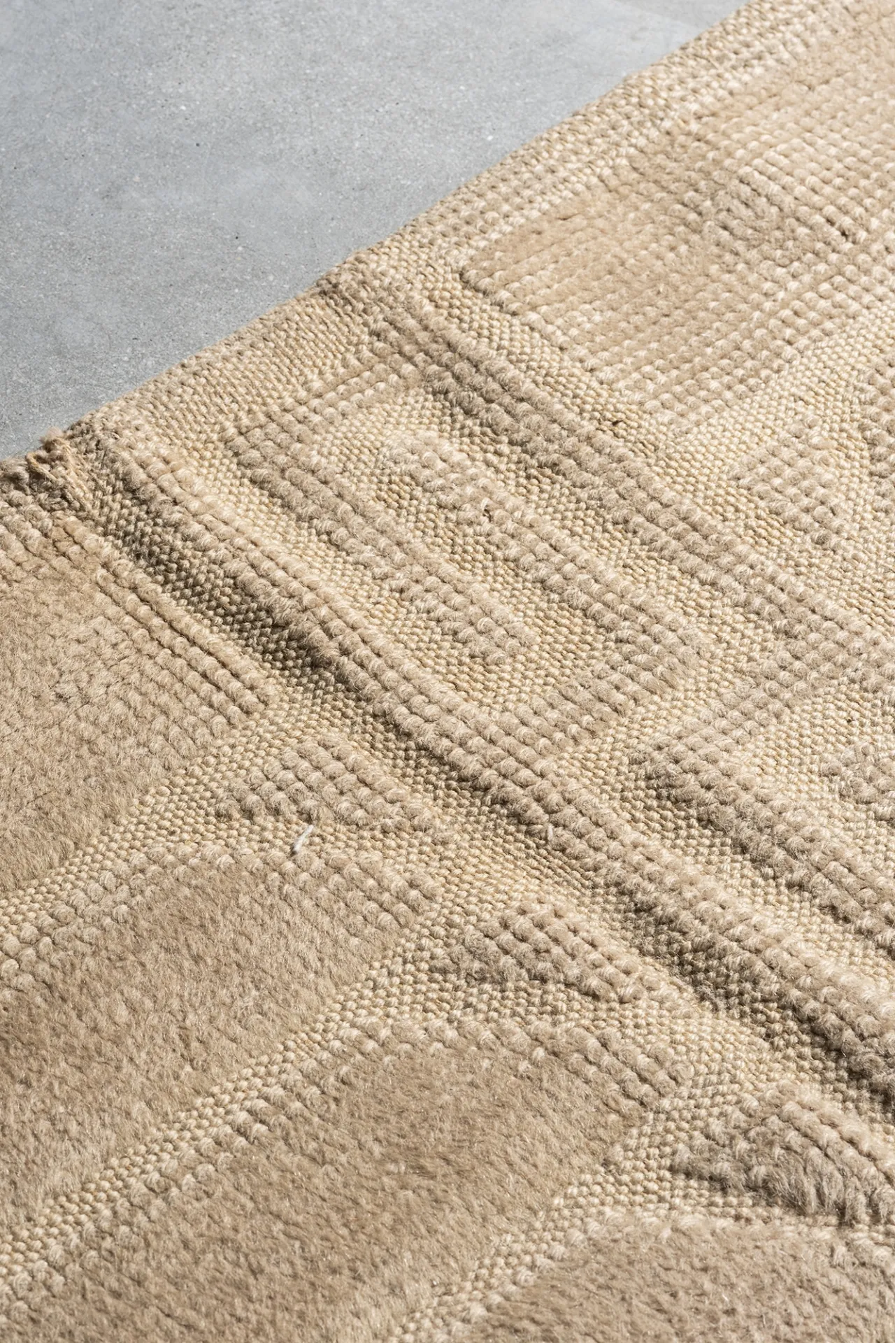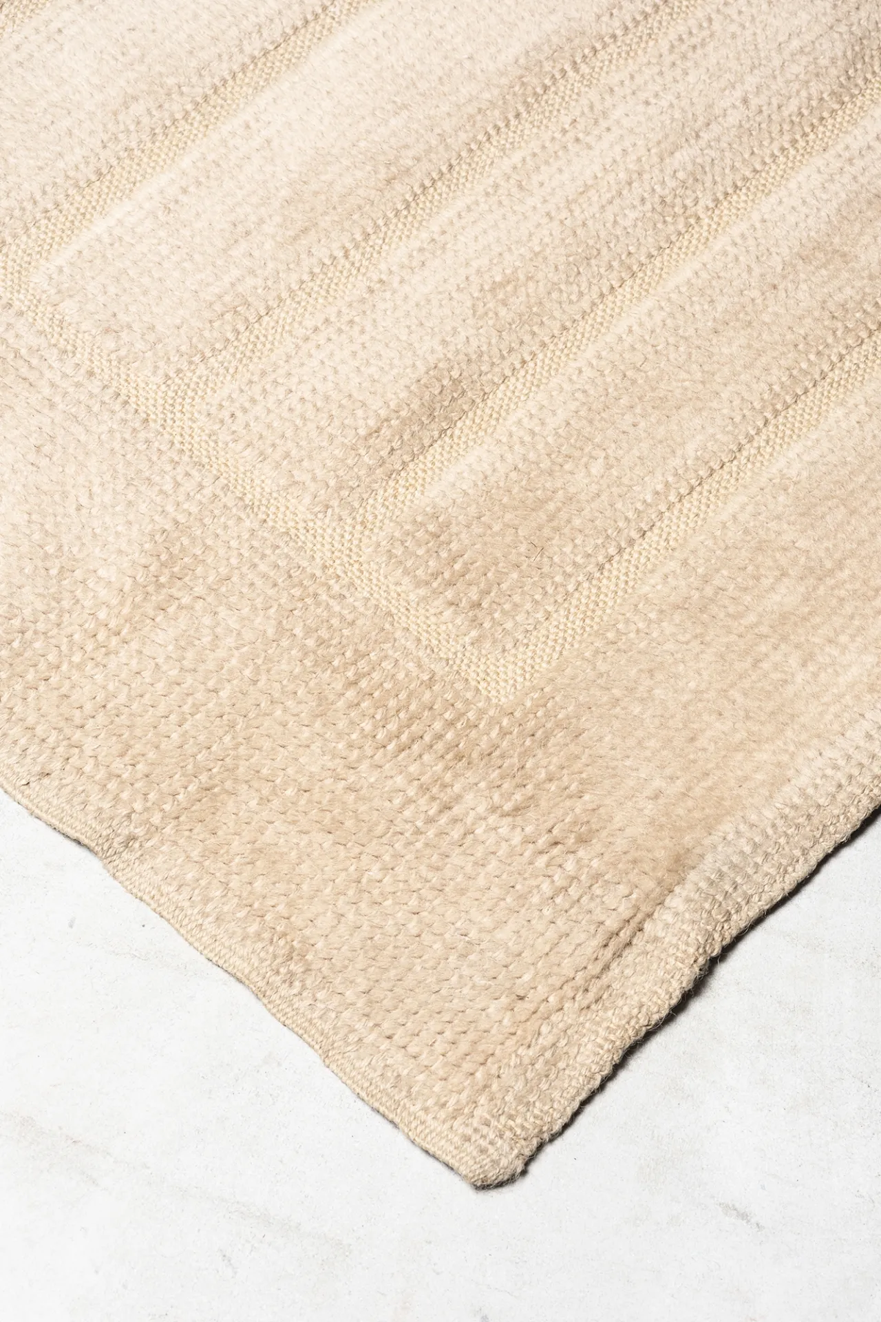 Wool, Ivory flat woven ground with geometric patterns in relief