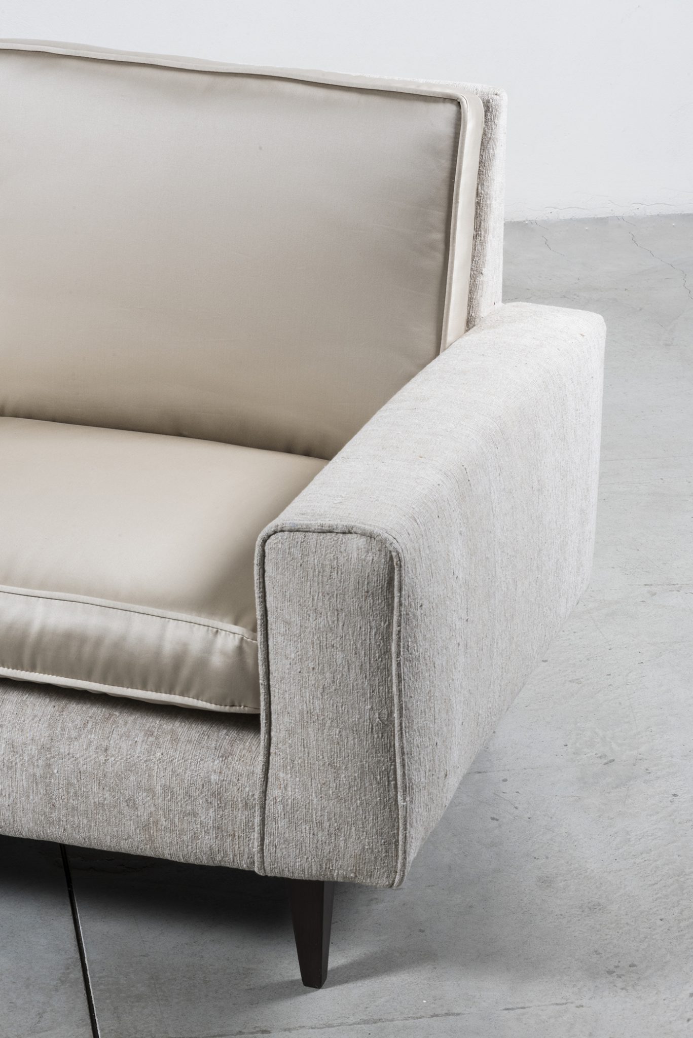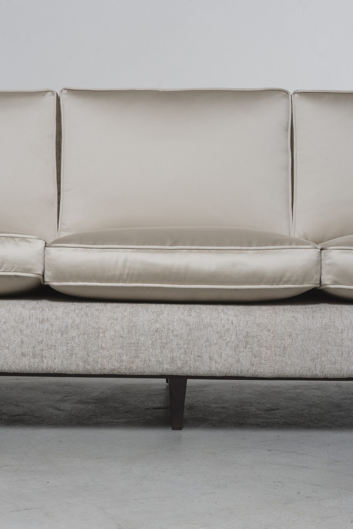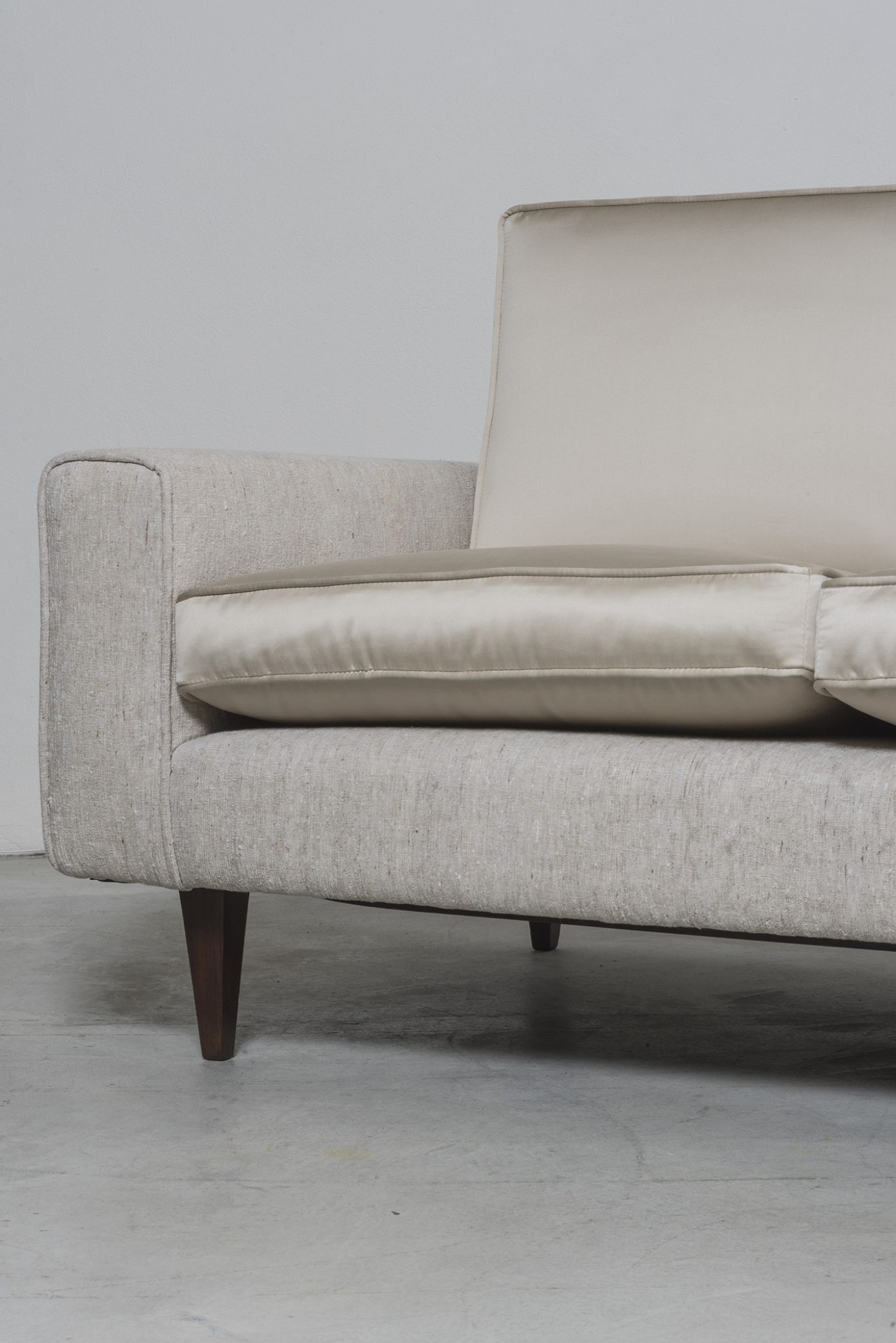 Manufactured in 1950 by Joaquim Tenreiro’s company, Tenrerio Móveis e Decorações, this sofa embodies his visionary approach to design. With a deep respect for tradition, it combines Brazilian wooden craftmanship with European heritage. The result is a timeless icon, celebrated for its masterful execution, clean lines, and elegant proportions. At the same time, Tenreiro infused a fresh sensibility to design, incorporating modern forms and innovative construction that further highlight the piece.
