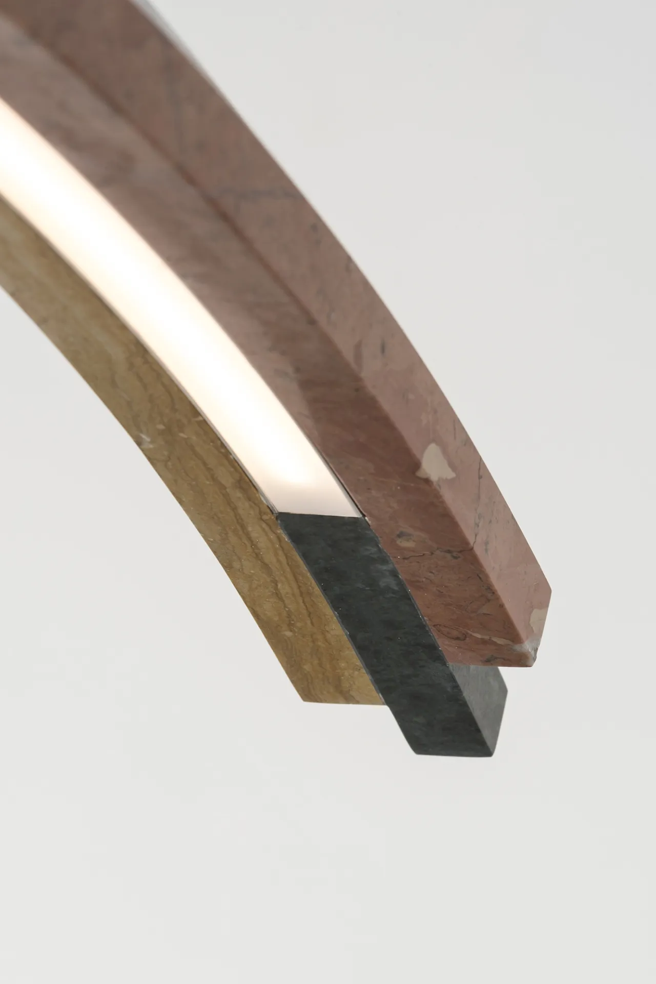 Arcoiris is a physical experiment in harnessing light. Curved stone arcs capture the way light bends through a prism or water droplet, splitting into a vibrant spectrum of colors. Crafted to ensure minimal waste, each element is designed to subtly conceal its light source, creating an ethereal effect with vivid colors illuminated from within.