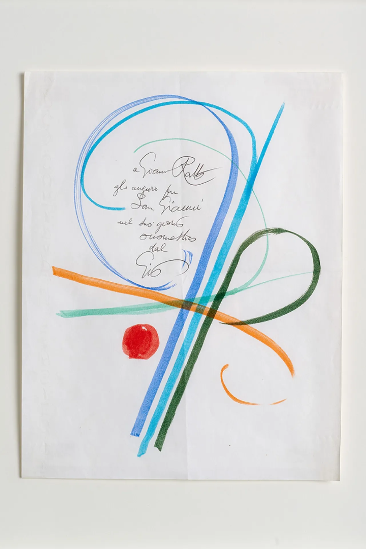 With a deep passion for art and drawing, Gio Ponti created numerous works throughout his career, often using them to enrich his personal letters. Dated in the 1970s, this ticket was sent to Giovanni Ratto, member of the editorial staff of Domus, the magazine Ponti founded in 1928. A multidisciplinary talent, Ponti investigated art, architecture and design through continuous research into shapes, materials and the essence of reality. Ponti believed that design transcended mere functionality, seeking to harmonize form, creativity, beauty and efficiency.