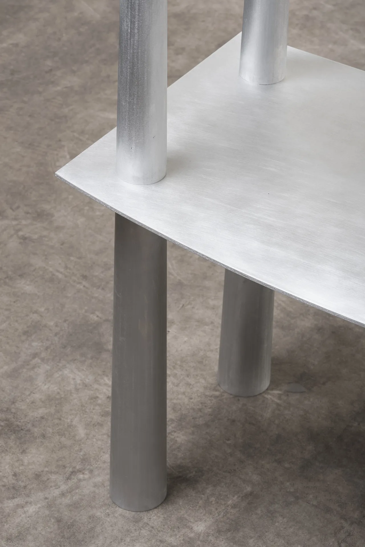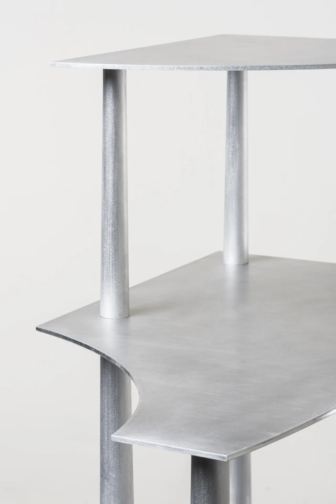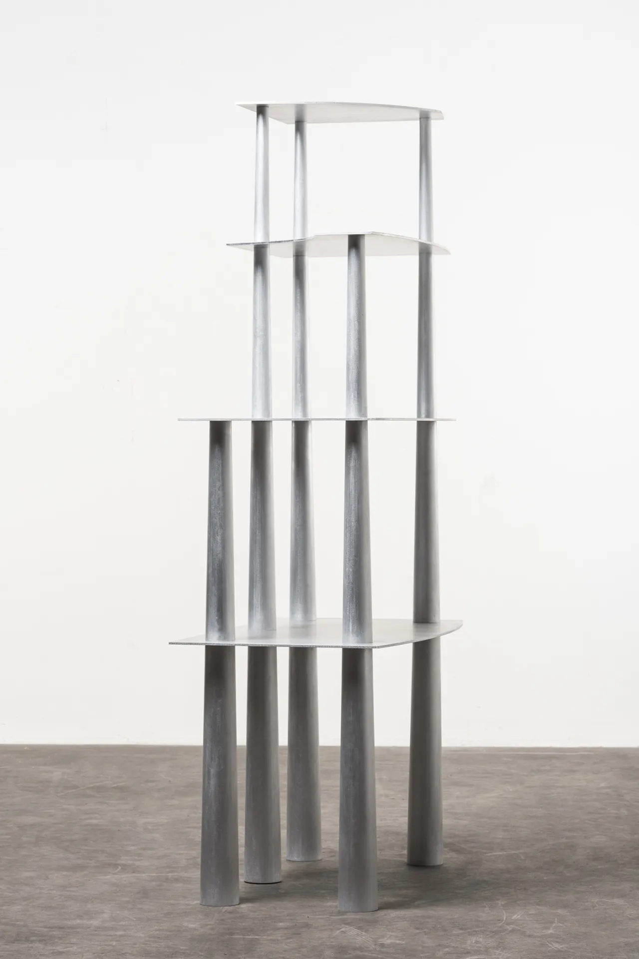 Designed by Destroyers / Builders, the High Section bookshelf was created as a limited edition for Nilufar. Featuring an open shelving system and conical legs, this piece reimagines the structure of the environment, deconstructing and reinterpreting past traditions while envisioning future possibilities. At its core, the design reflects a deep interest in rediscovering the fundamental forms rooted in the Anthropocene, on which human layers are added, shaping both the object and its narrative over time.