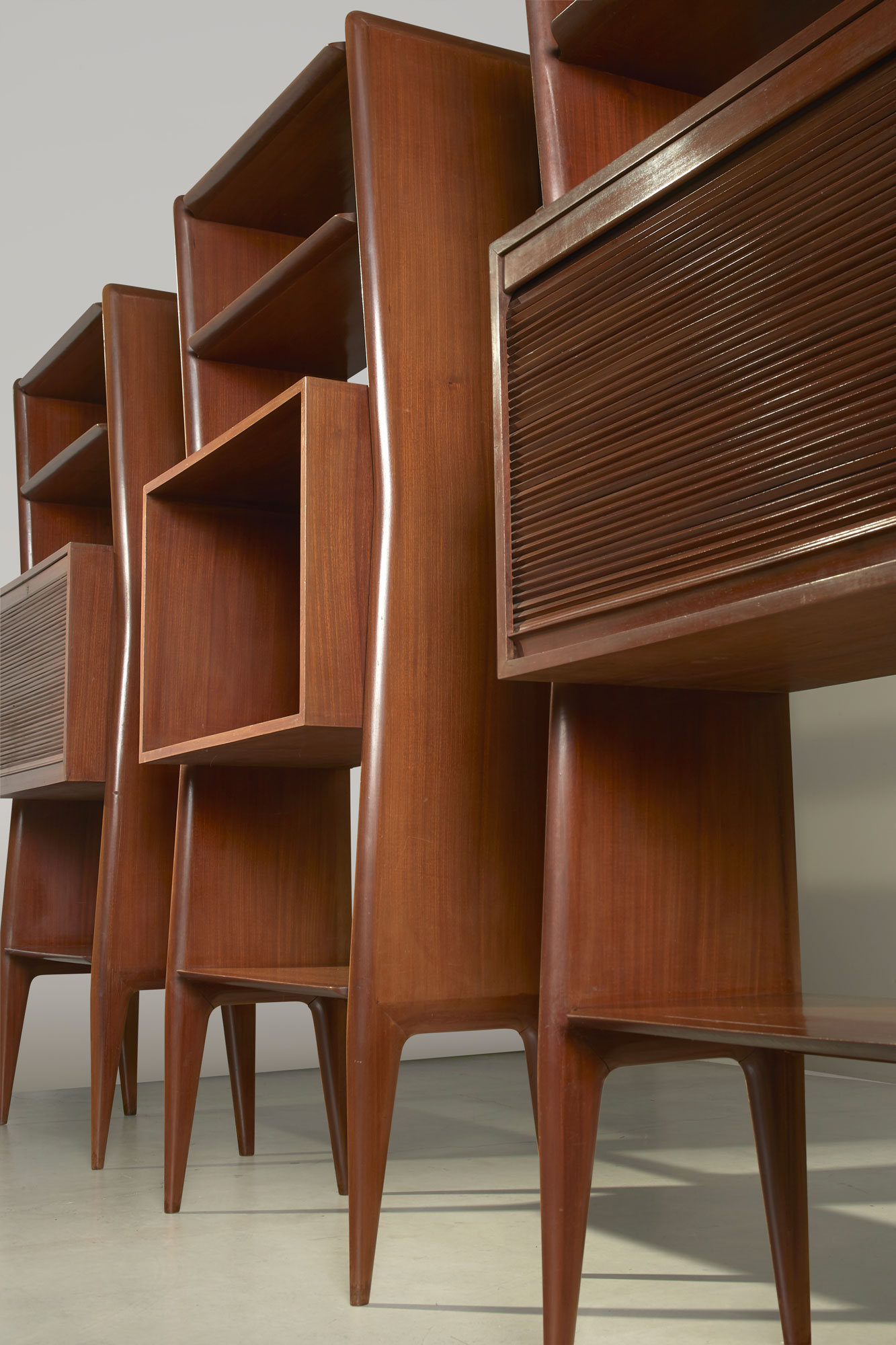 Manufactured by Ariberto Colombo in 1955, this striking bookcase exemplifies Ico Parisi’s visionary approach, seamlessly blending artistic expression with technical mastery. Featuring refined details and exceptional craftsmanship, this piece reflects the designer’s pursuit of creating a seamless dialogue between creativity, function, and form.