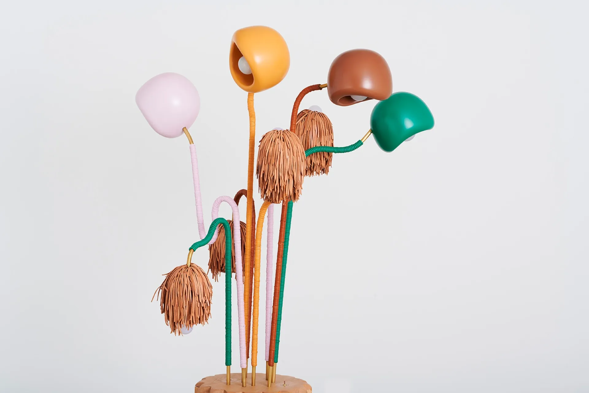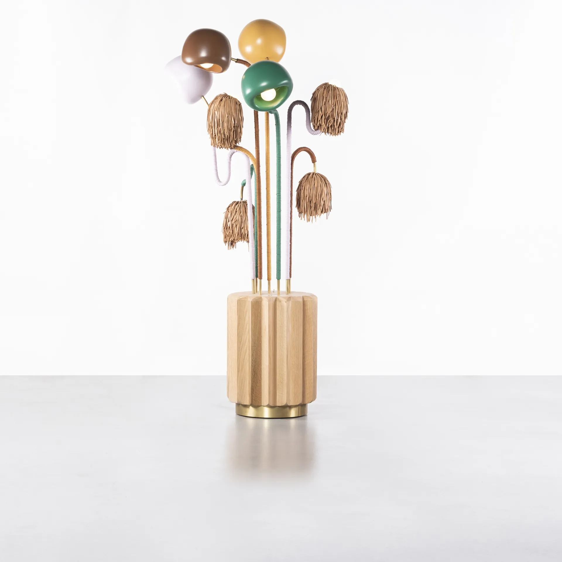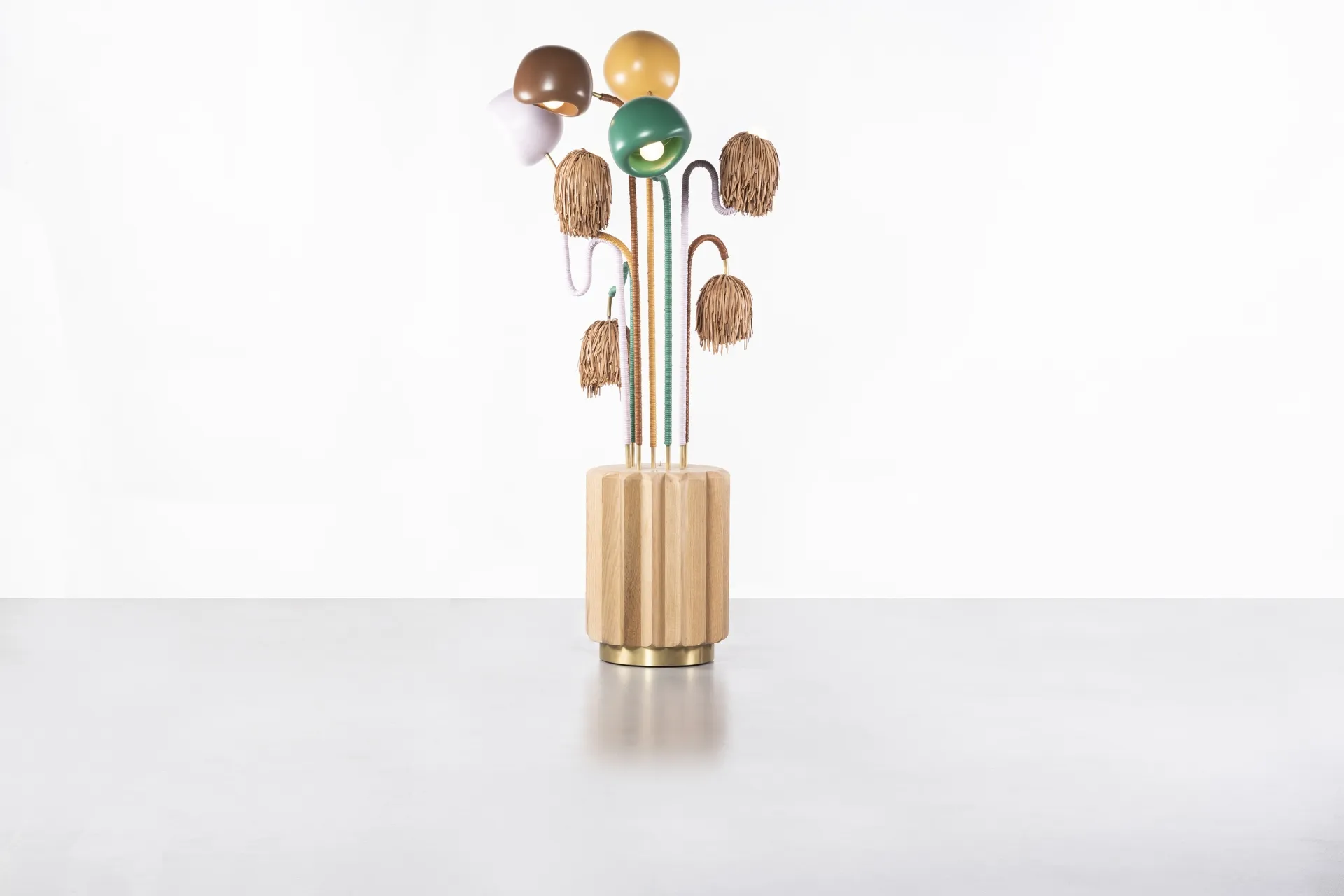 Khaled El Mays' creations explore flora and fauna, blending nature and design. Since 2017, his studio reinterprets natural beauty into usable, tactile objects. Resembling elephants, snakes, flowers, they reflect nature's complexity. Crafted by hand, each piece a one-of-a-kind expression of creativity, with a strong preference for natural materials such as wicker, leather and twine.