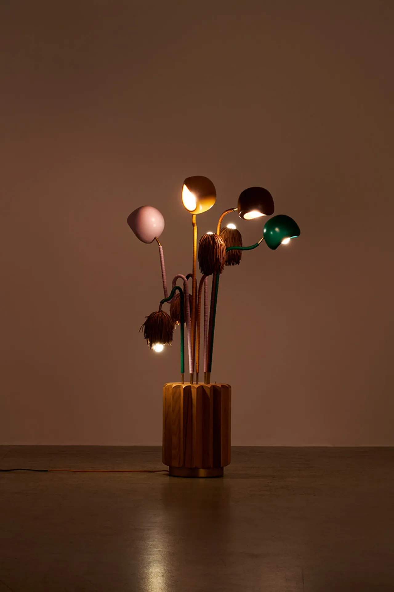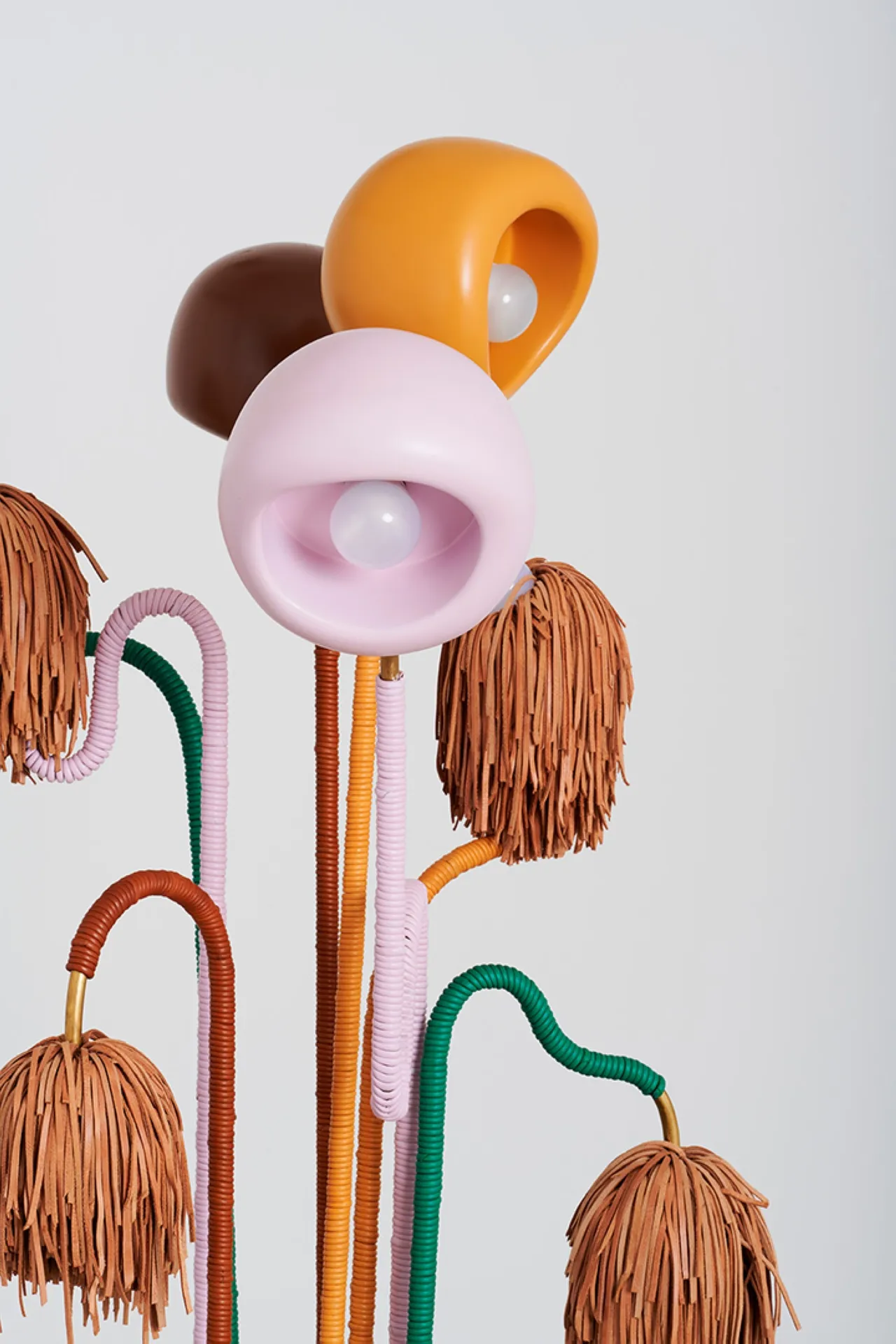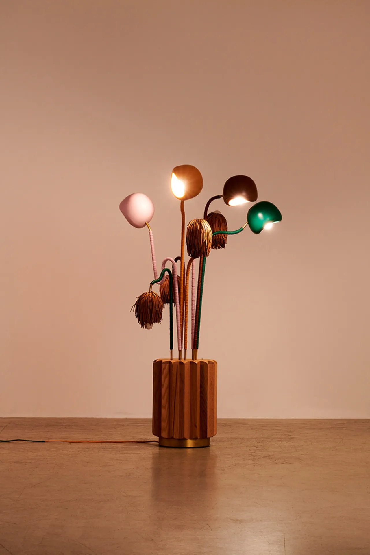 Khaled El Mays' creations explore flora and fauna, blending nature and design. Since 2017, his studio reinterprets natural beauty into usable, tactile objects. Resembling elephants, snakes, flowers, they reflect nature's complexity. Crafted by hand, each piece a one-of-a-kind expression of creativity, with a strong preference for natural materials such as wicker, leather and twine.