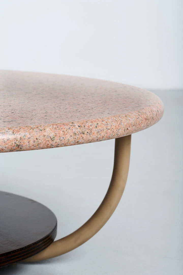 Parterre is a series of outdoor furniture mixing modern elements with traditional touches. Consisting of a sofa, armchair, side table and coffee tables, each piece has a painted metal tubular structure with streamlined contours. The backrests of the seats feature a natural straw weave that recalls classic 19th-century wicker furnishings. The armchair and sofa pieces have cushions upholstered in a sturdy velvet fabric suitable for the exterior, while tables boast tops in a terrazzo marble composition.