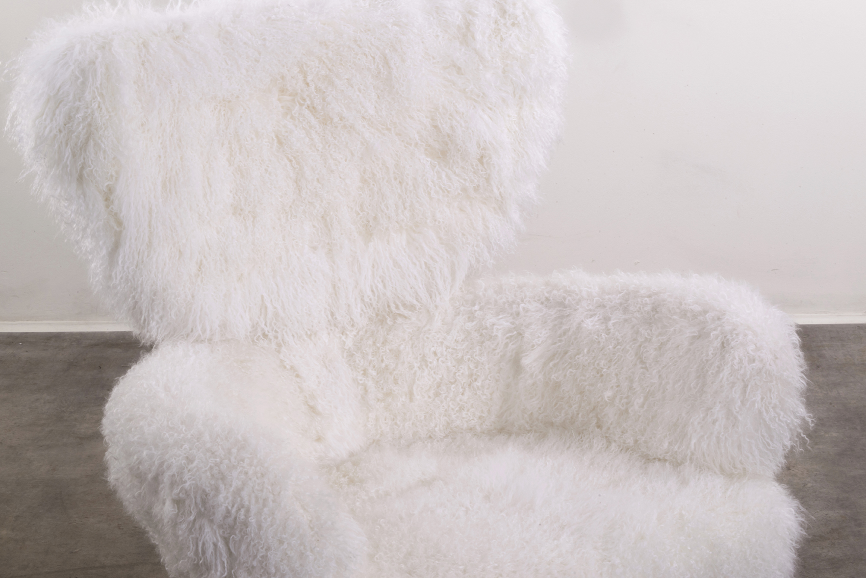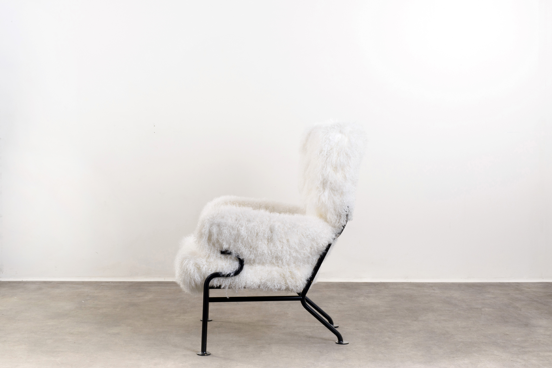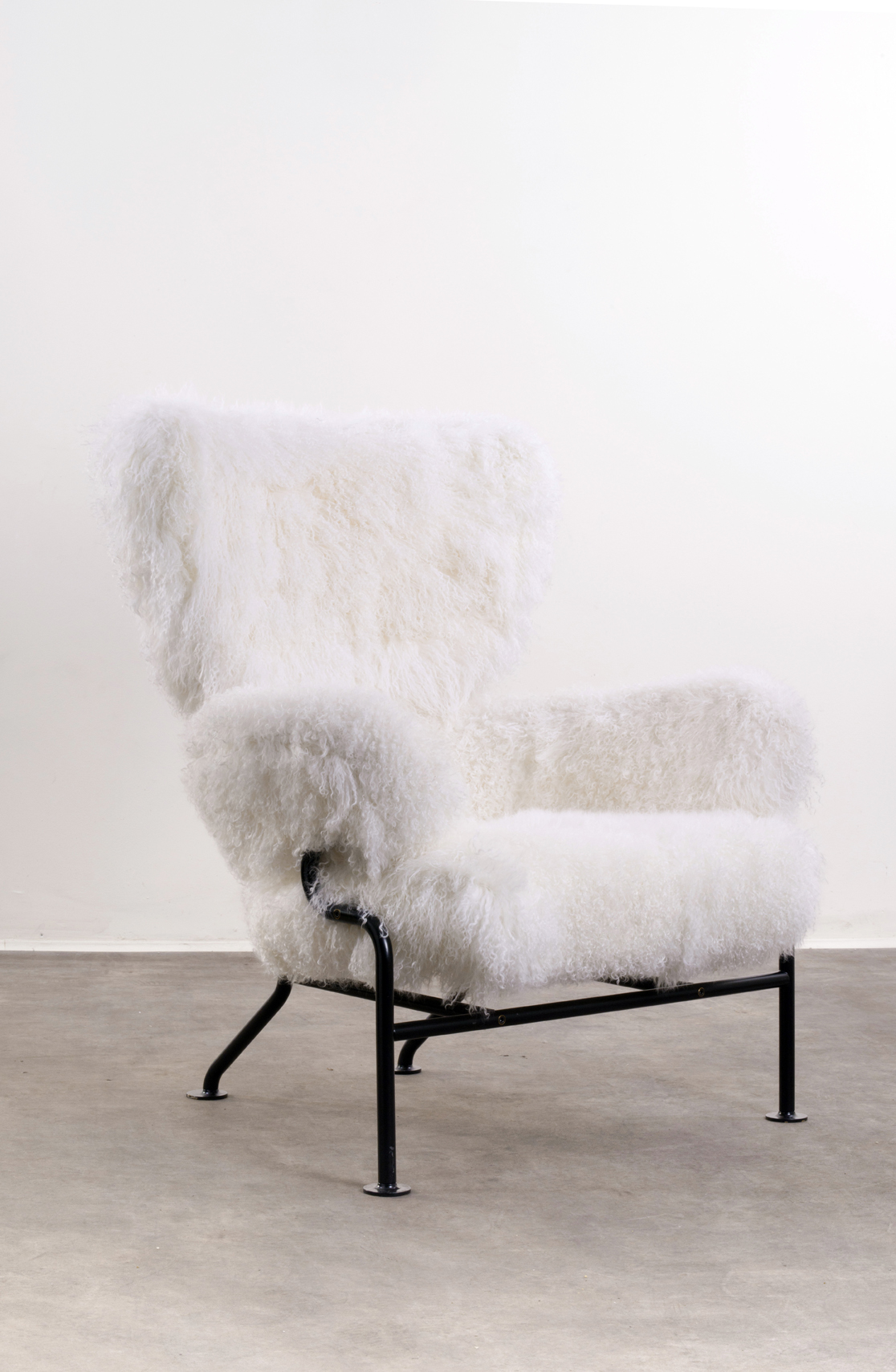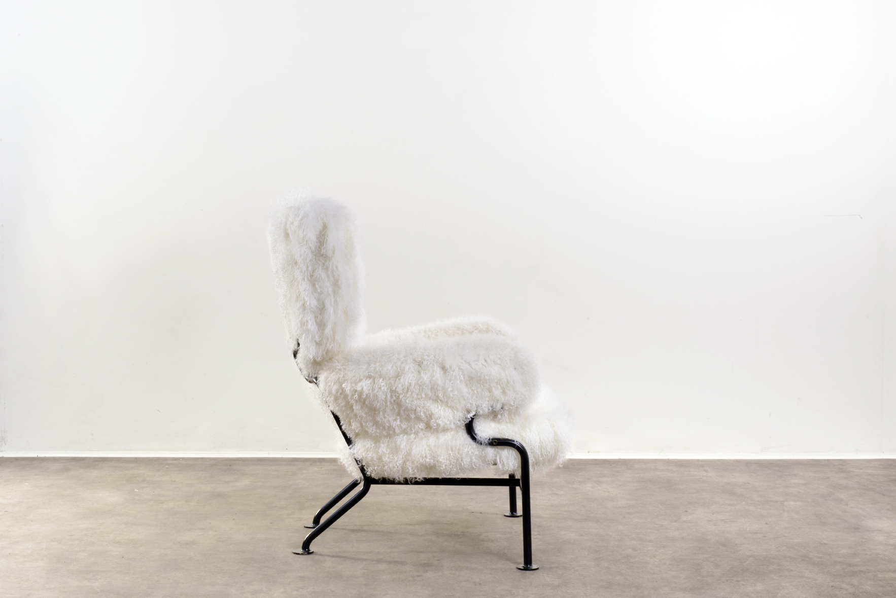 Lacquered metal tubular frame; latex-foam, mongolian fur