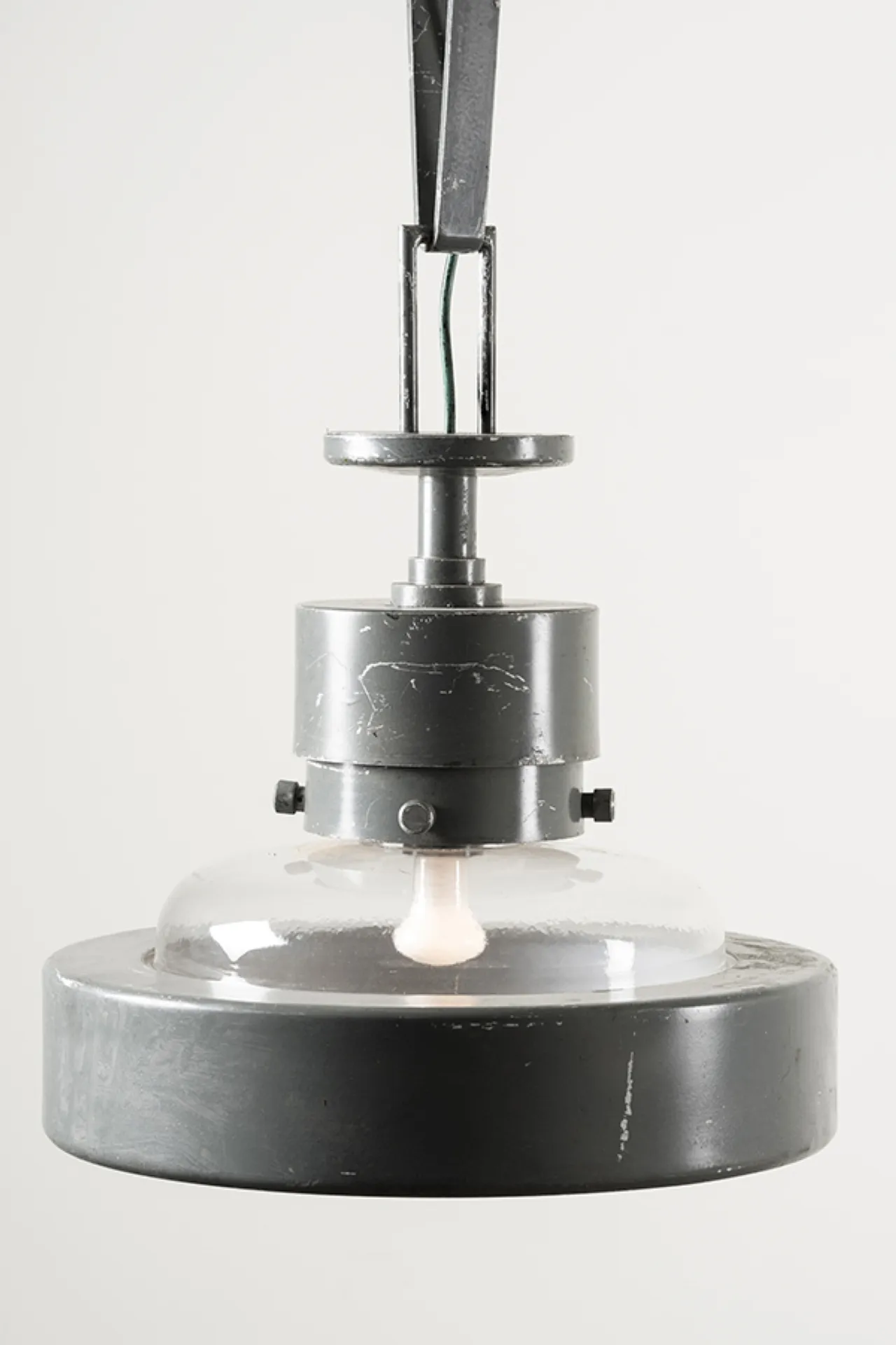 Produced in 1956 for Torre Velasca project, this ceiling lamp is an excellent example of BBPR’s visionary approach to design. Founded in 1932, the group of four designers believed that true aesthetic advancement could only be achieved by merging functionality with form. The lamp’s simple yet captivating structure strikes a perfect balance between practical necessity and modern elegance, resulting in a design that is both a statement piece and a timeless work of sophistication.