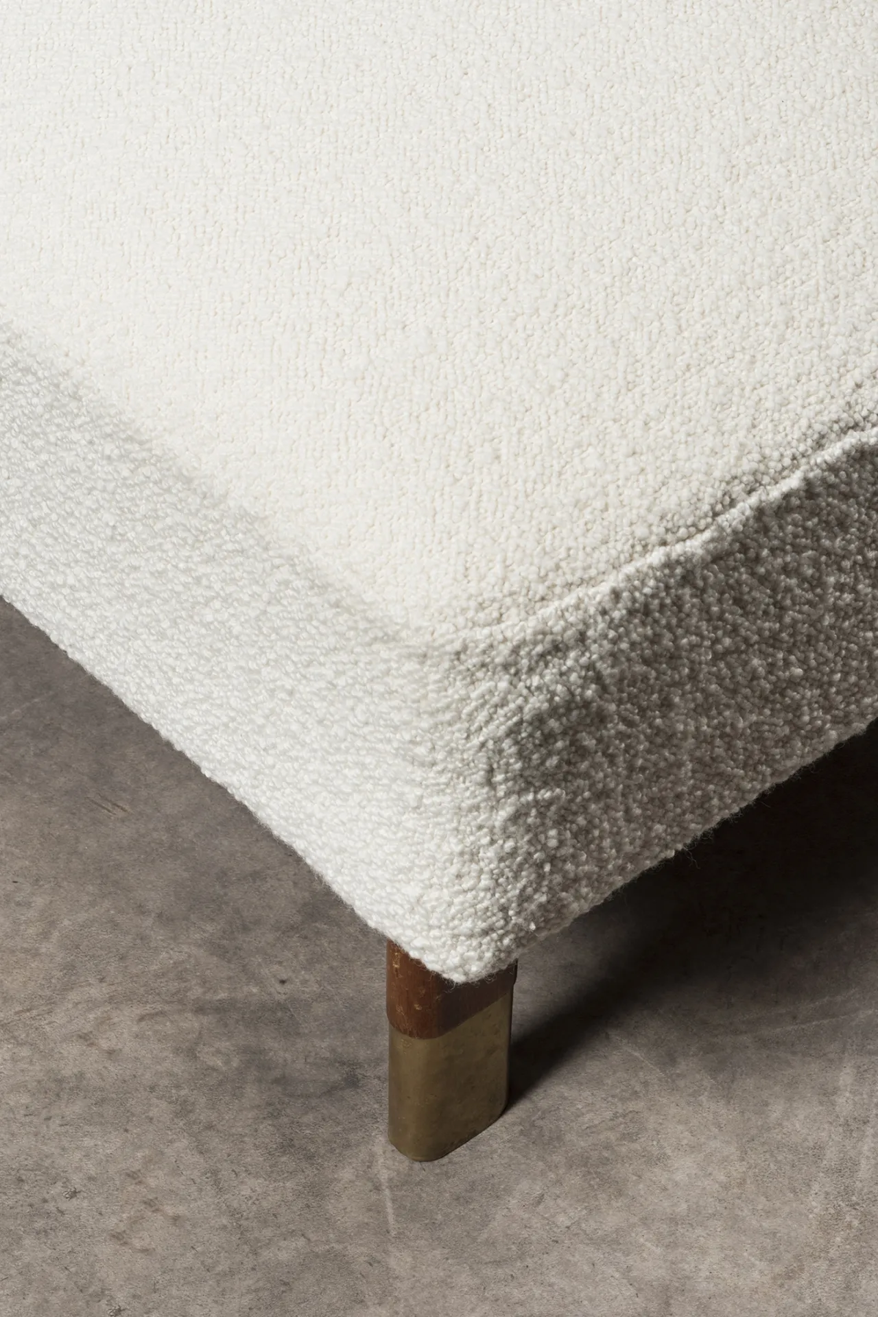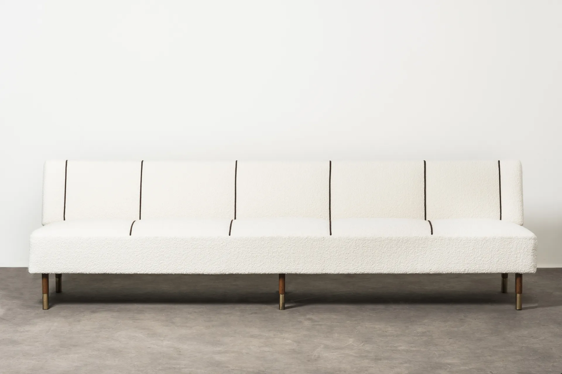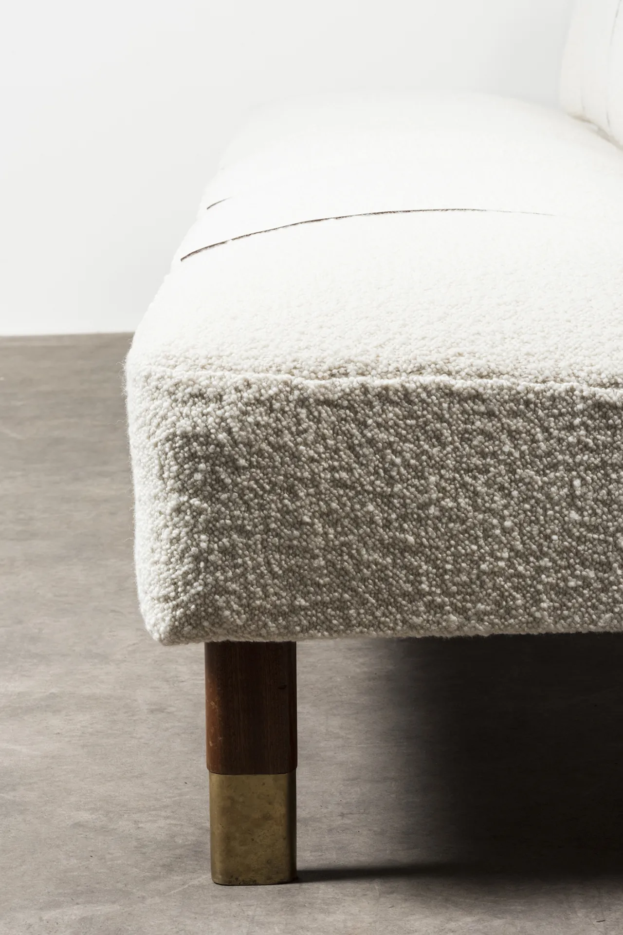 Wood, brass, fabric upholstery
