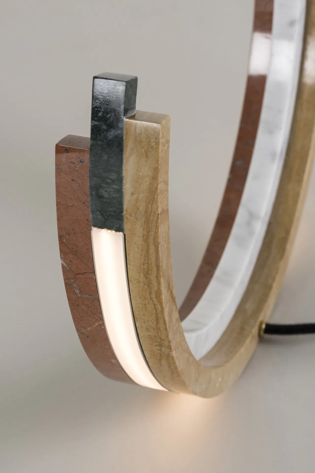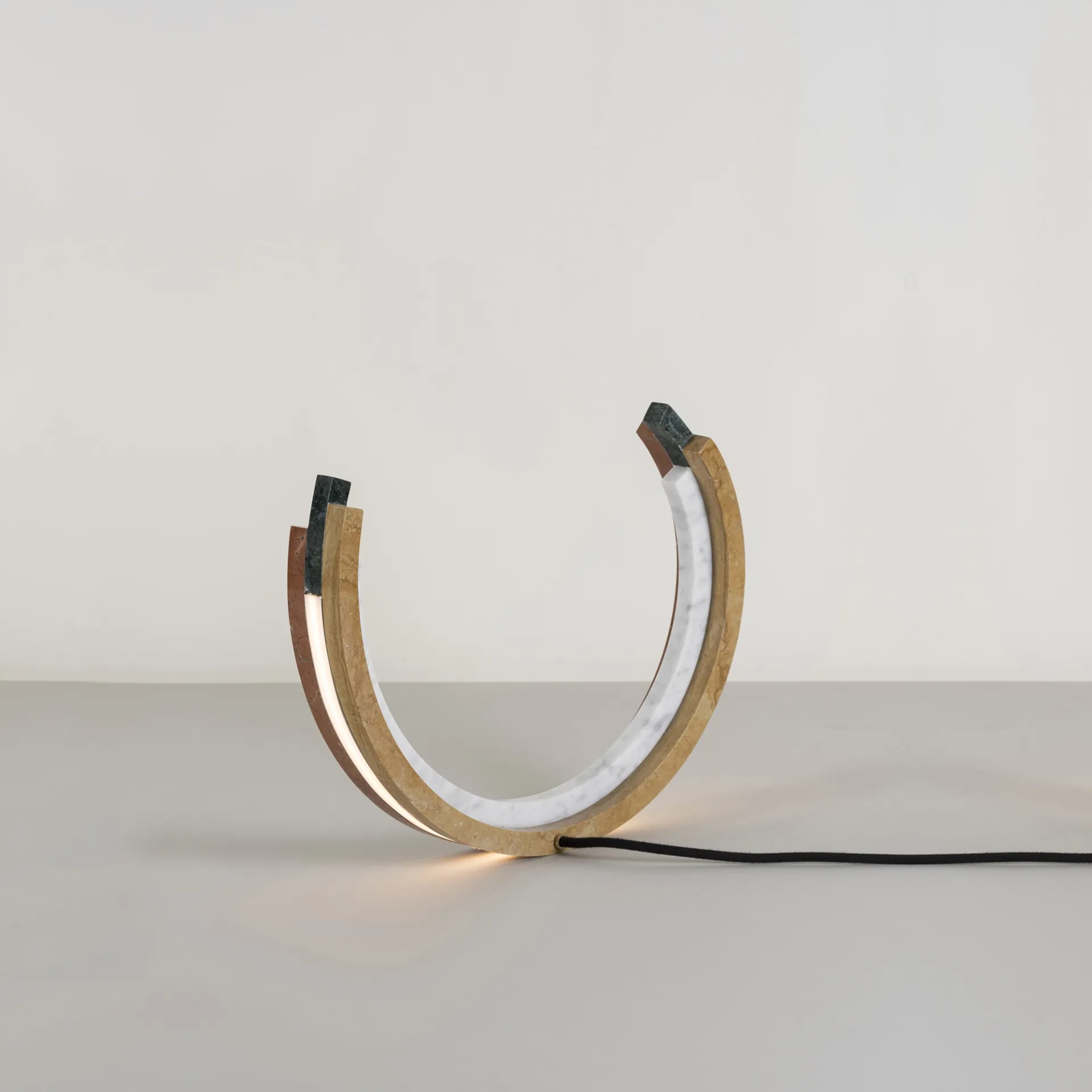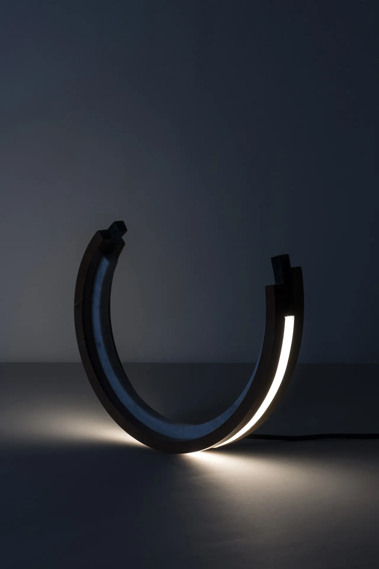 Arcoiris is a physical experiment in harnessing light. Curved stone arcs capture the way light bends through a prism or water droplet, splitting into a vibrant spectrum of colors. Crafted to ensure minimal waste, each element is designed to subtly conceal its light source, creating an ethereal effect with vivid colors illuminated from within.