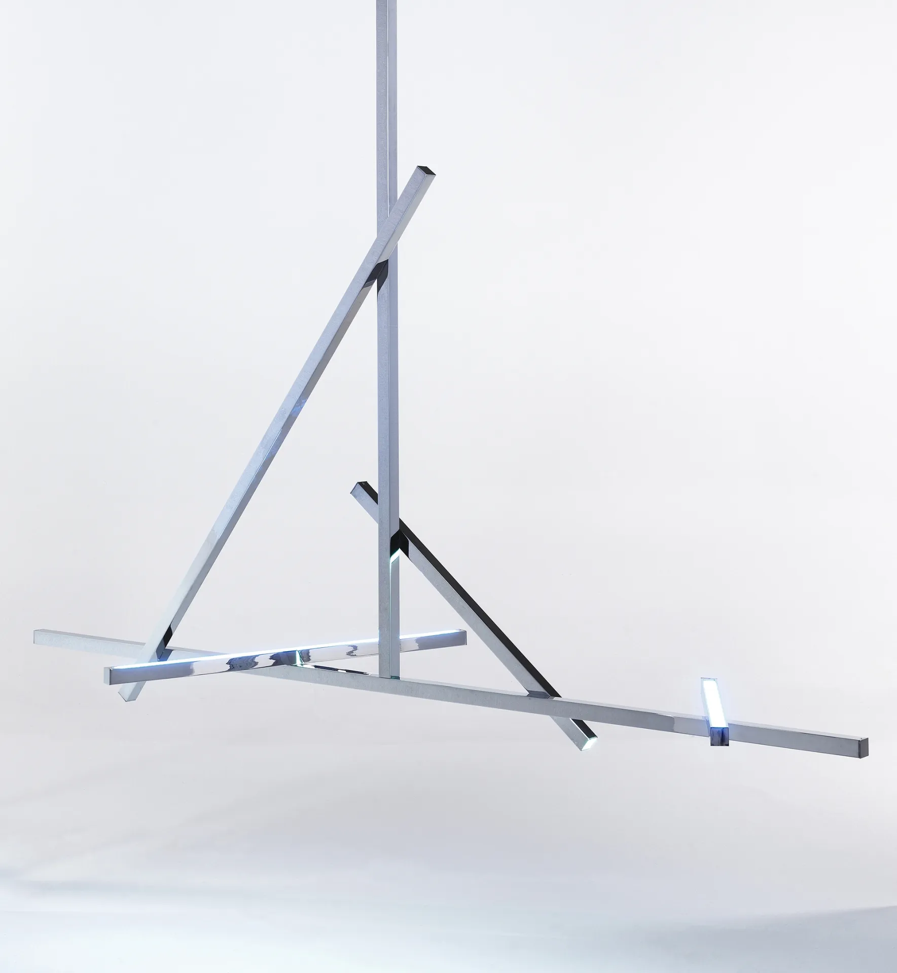 Manufactured by JCP Universe in 2018, the Sun-Ra collection is the final project designed by Nanda Vigo. The Mod. Horizon ceiling lamp is a remarkable example of her continued exploration into the relationship between space and light, where light itself becomes the central element of the entire composition. Vigo’s research and projects deeply investigate reality, merging functionality with artistic experimentation, transforming her designs into authentic works of art.