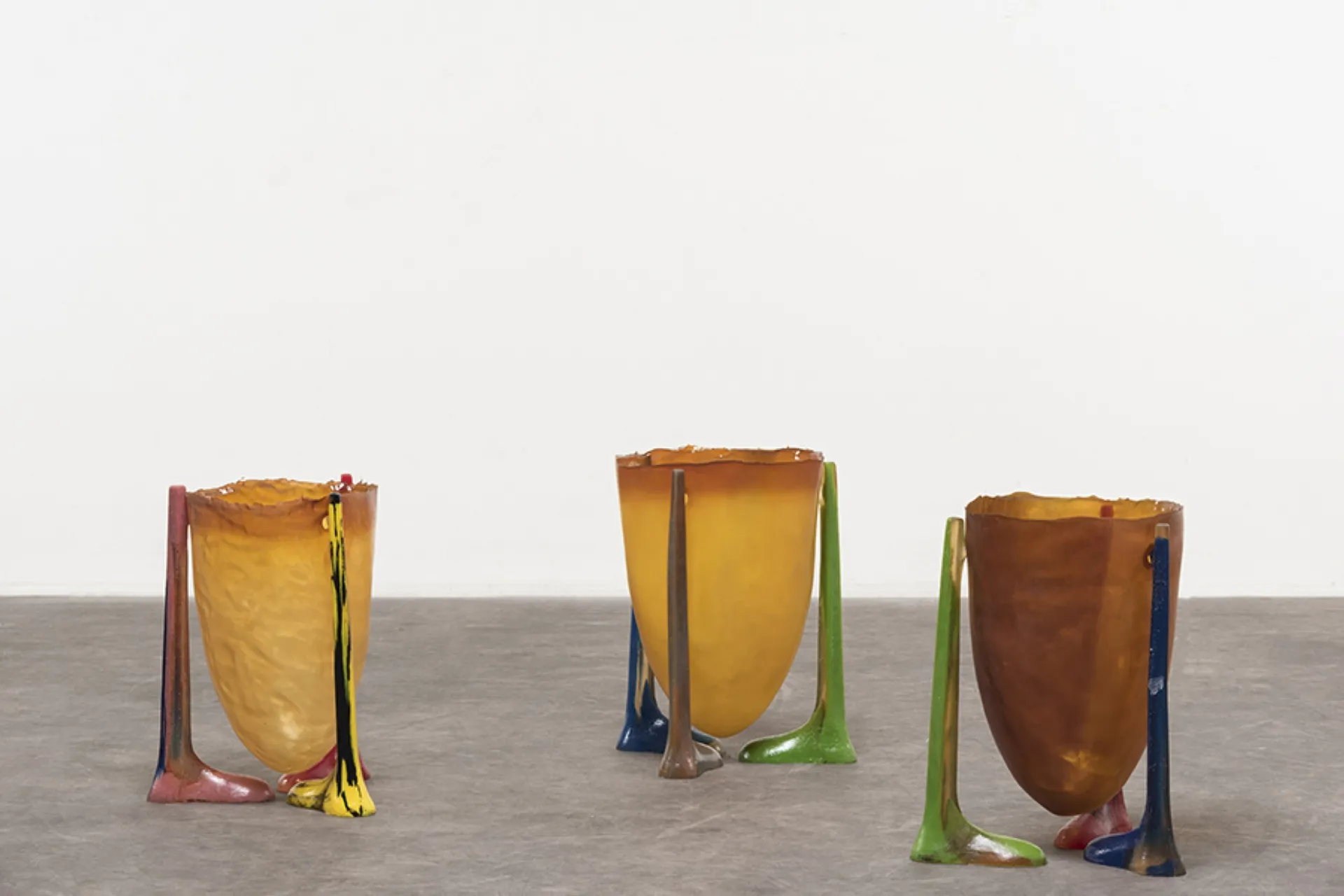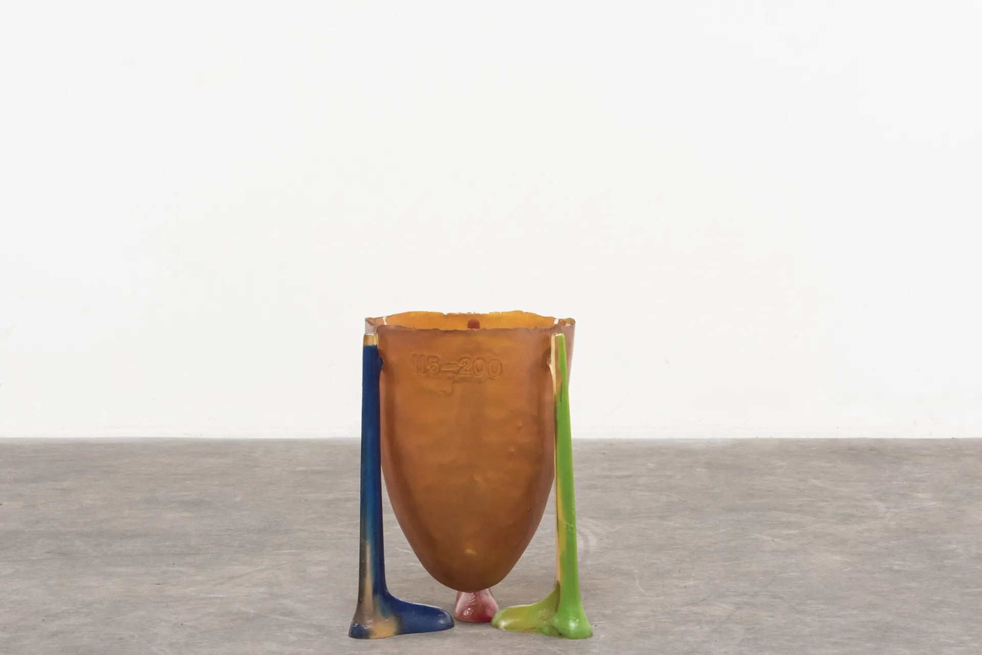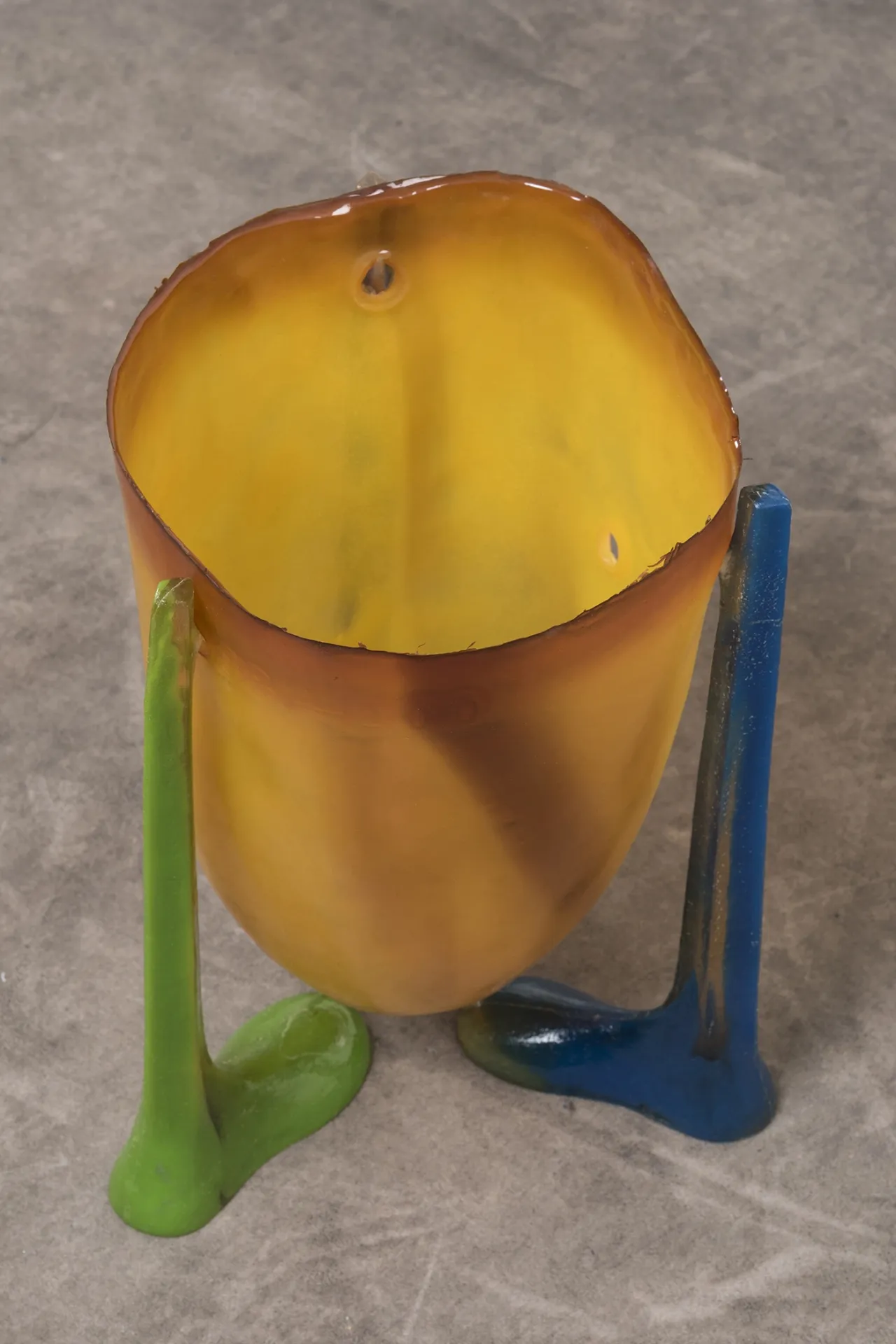 A silicone shell, supported by three resin legs.
