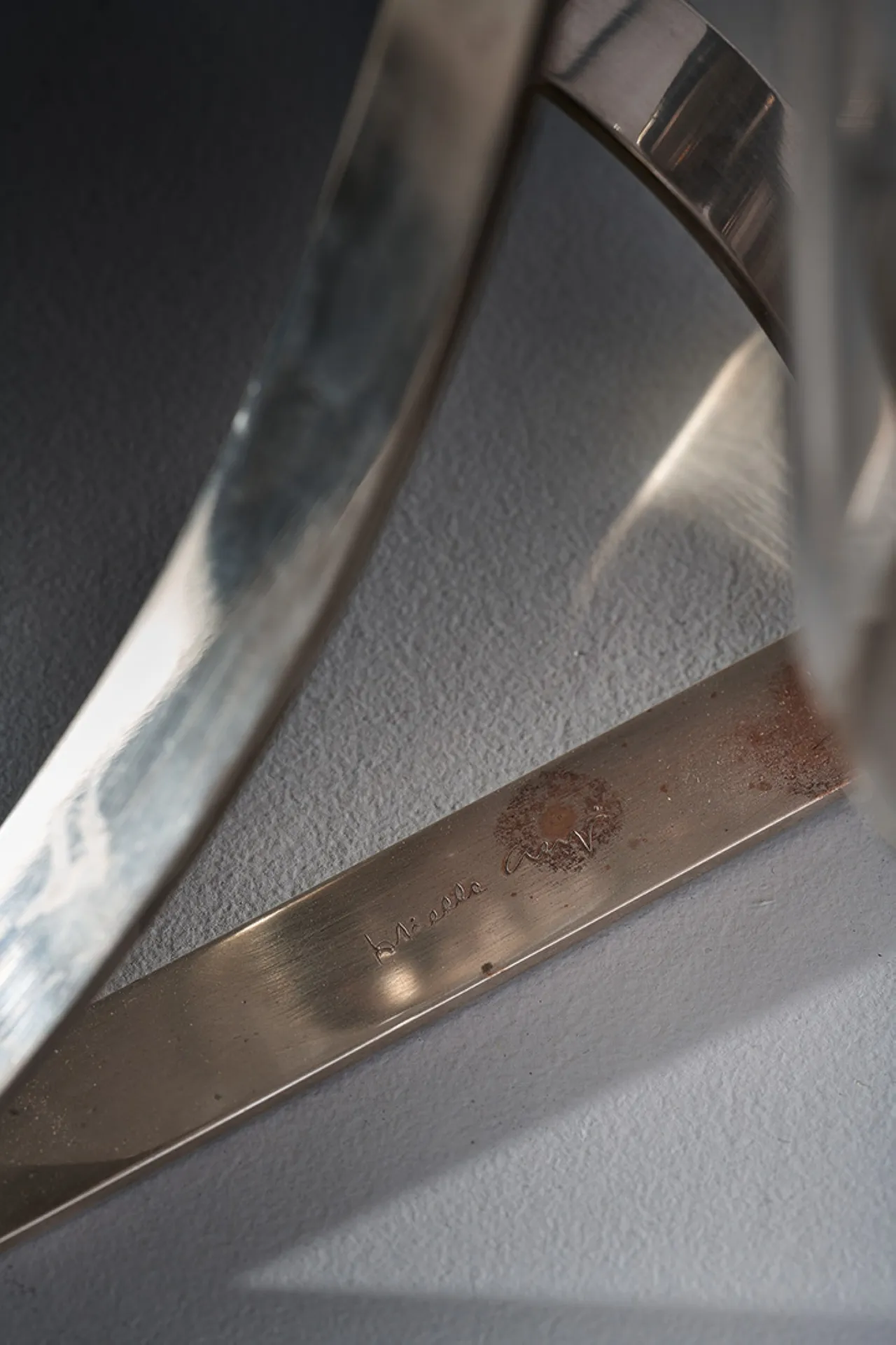 Since the 1950s, Gabriella Crespi has dedicated herself to creating handcrafted furniture and decorative accessories that blend design with sculptural abstraction. As a result of her intense collaboration with master artisans, whose contacts she cherished, she began producing a series of famous collections in the 1960s: the first, Lune, is a line of lamps, frames, and other accessories inspired by the shape of Earth’s satellite.