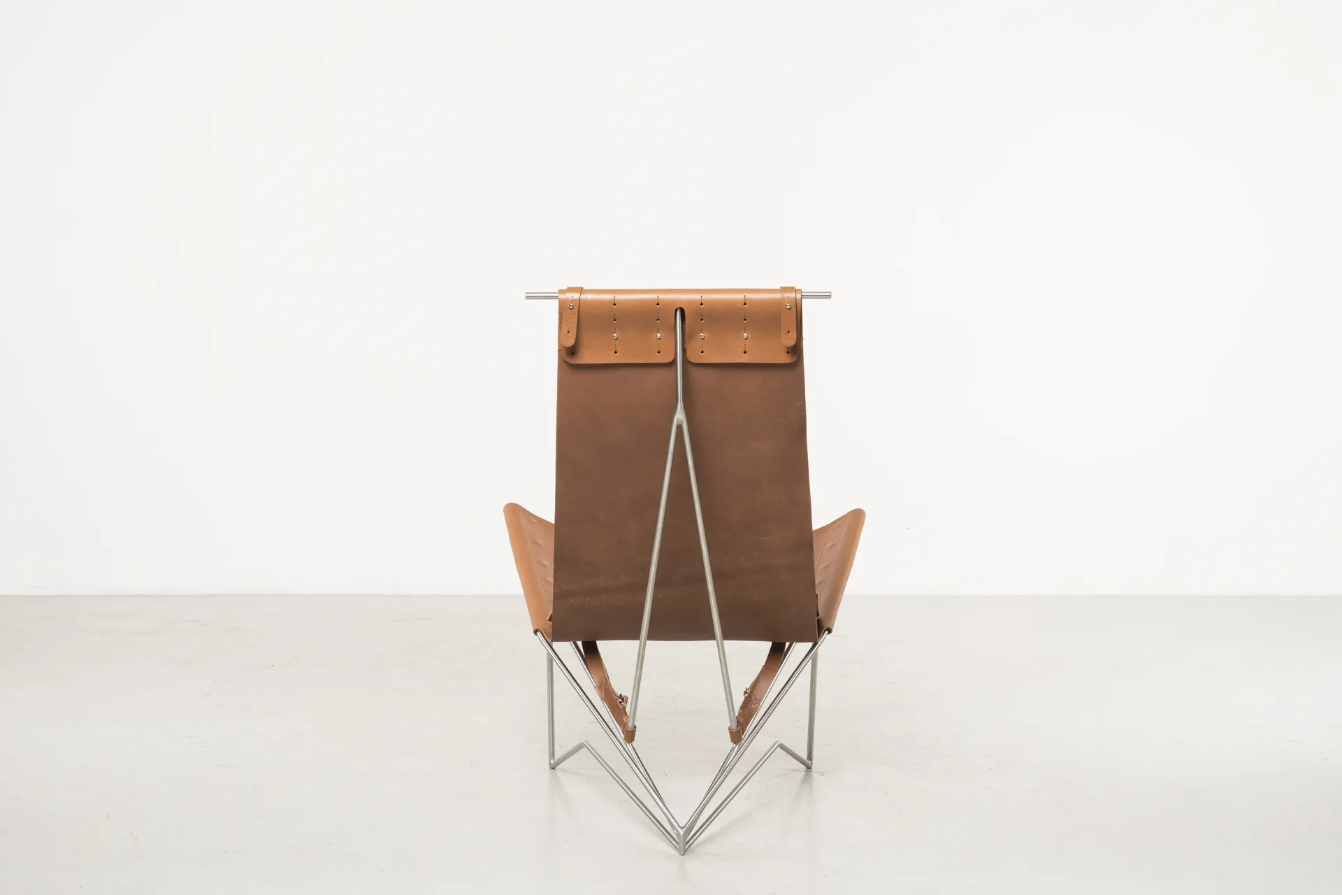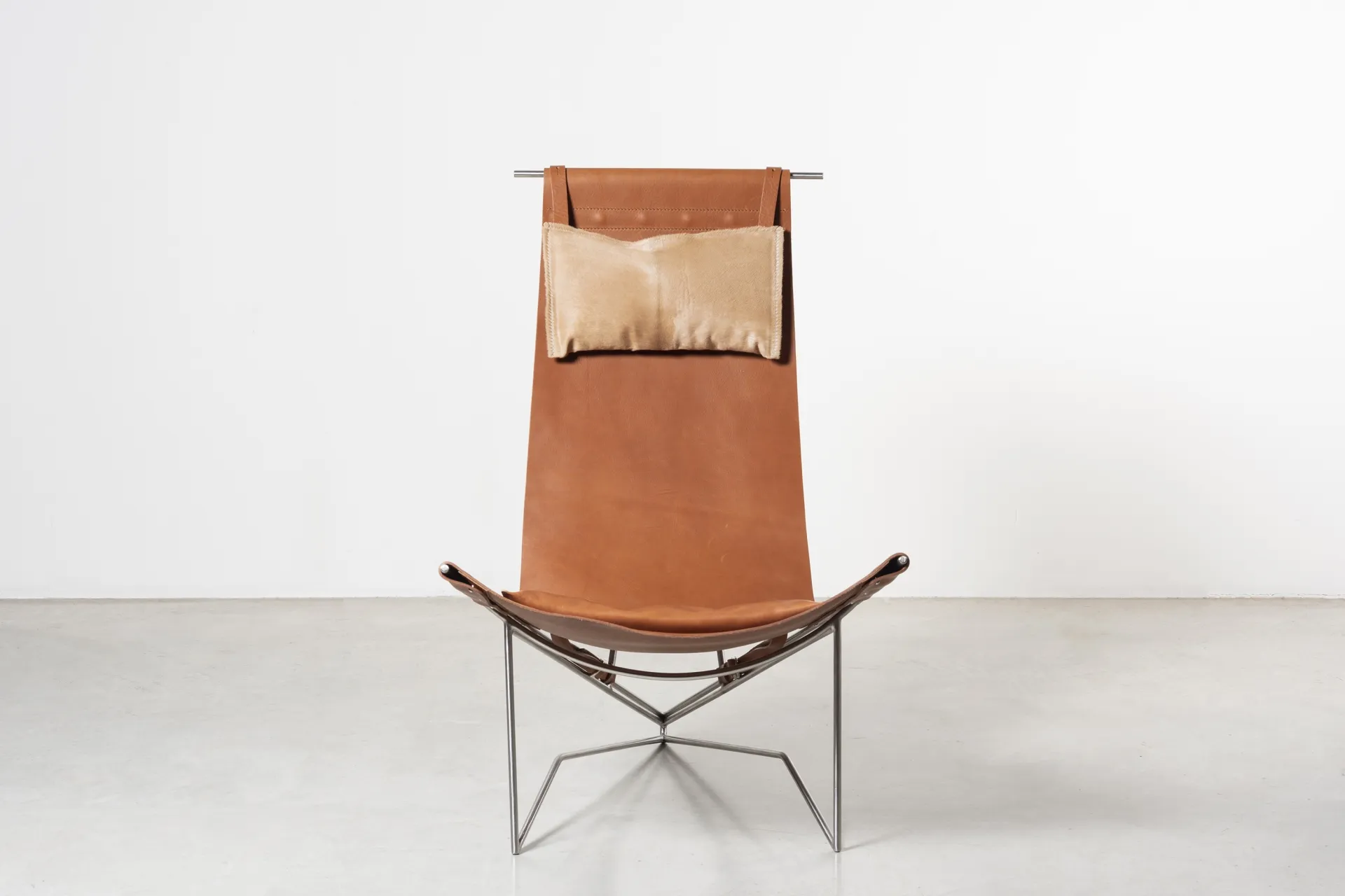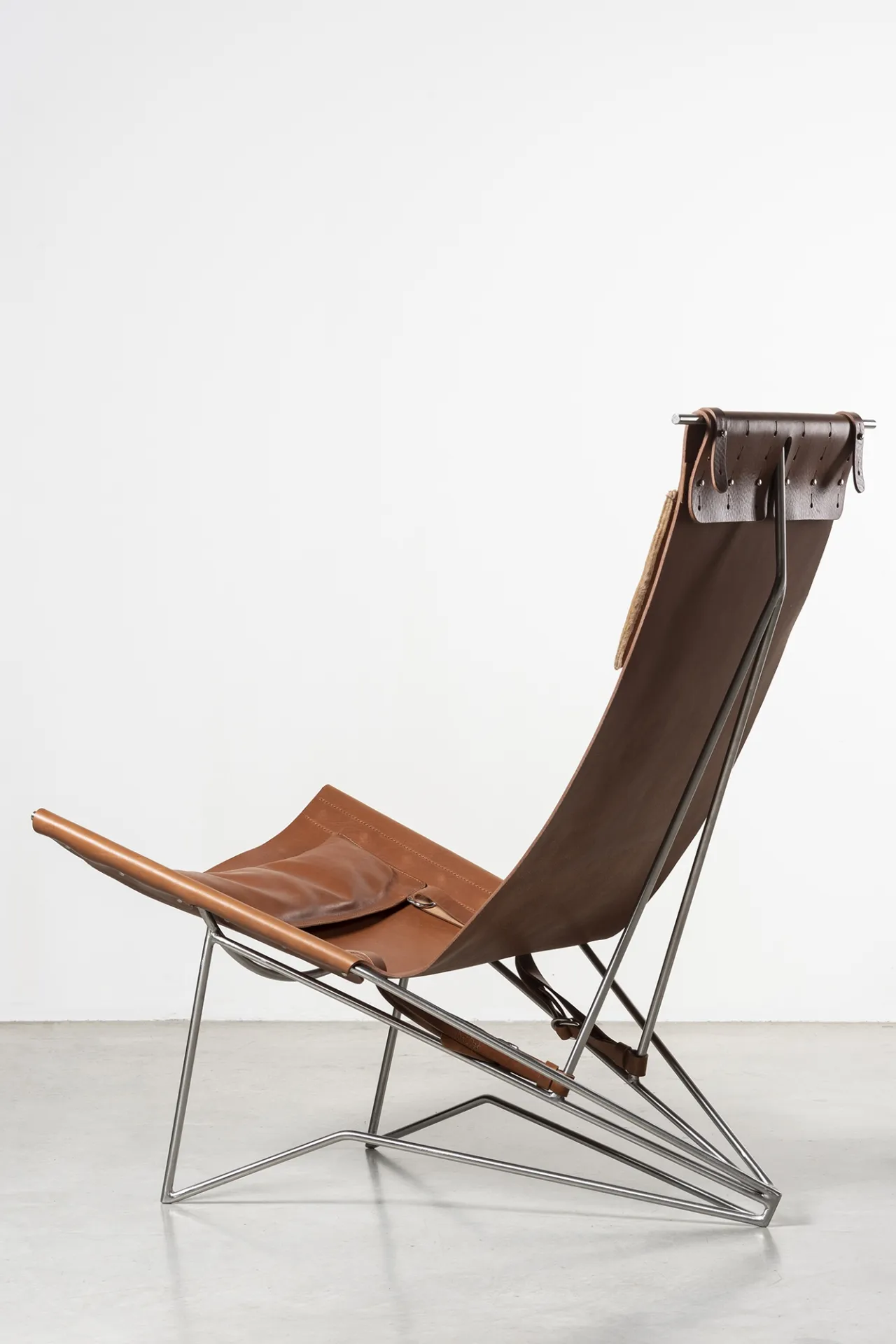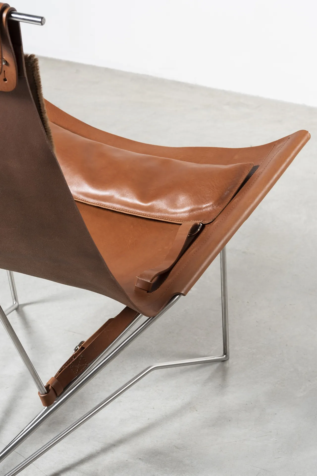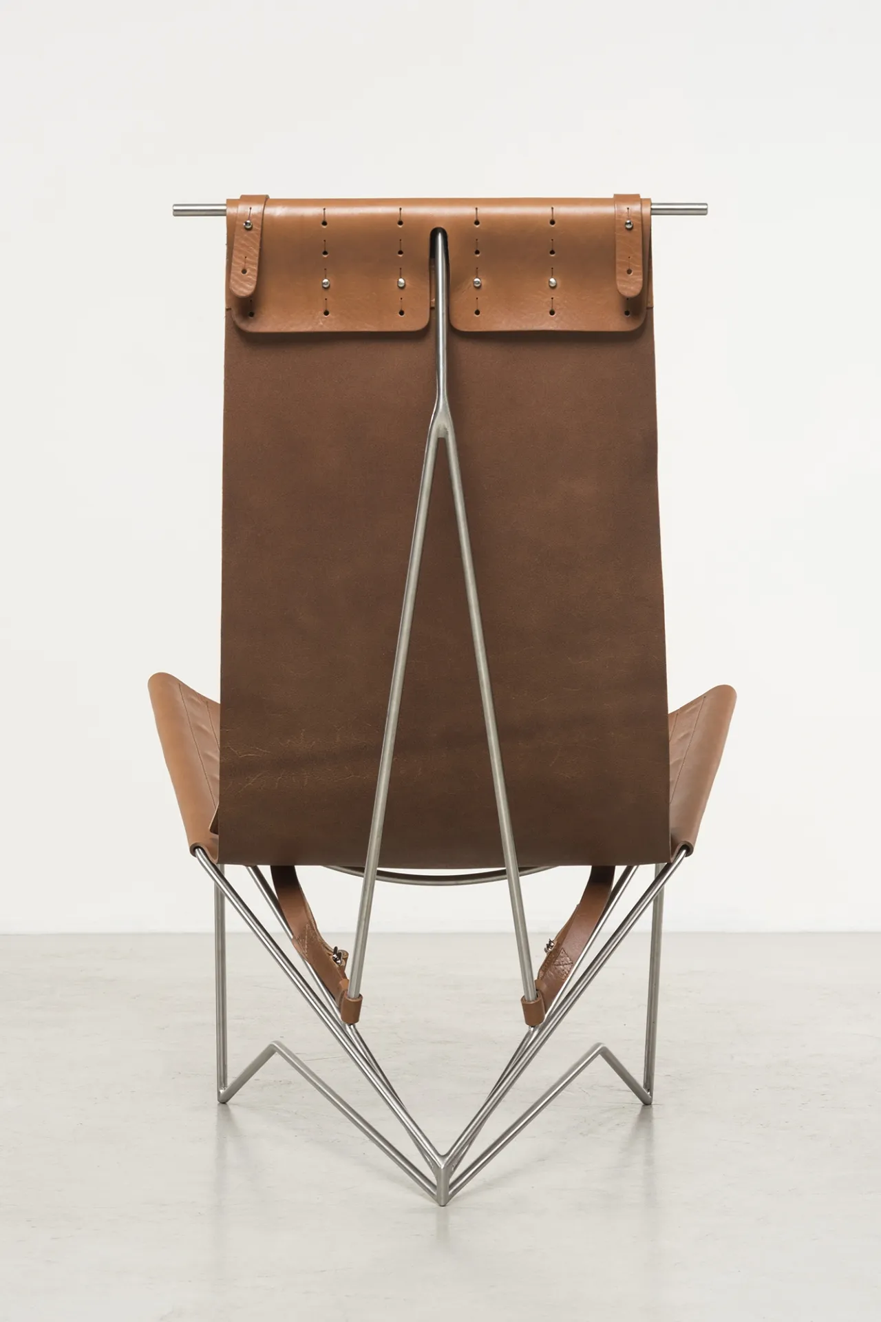 Iron frame, brass, tanned leather, tassel