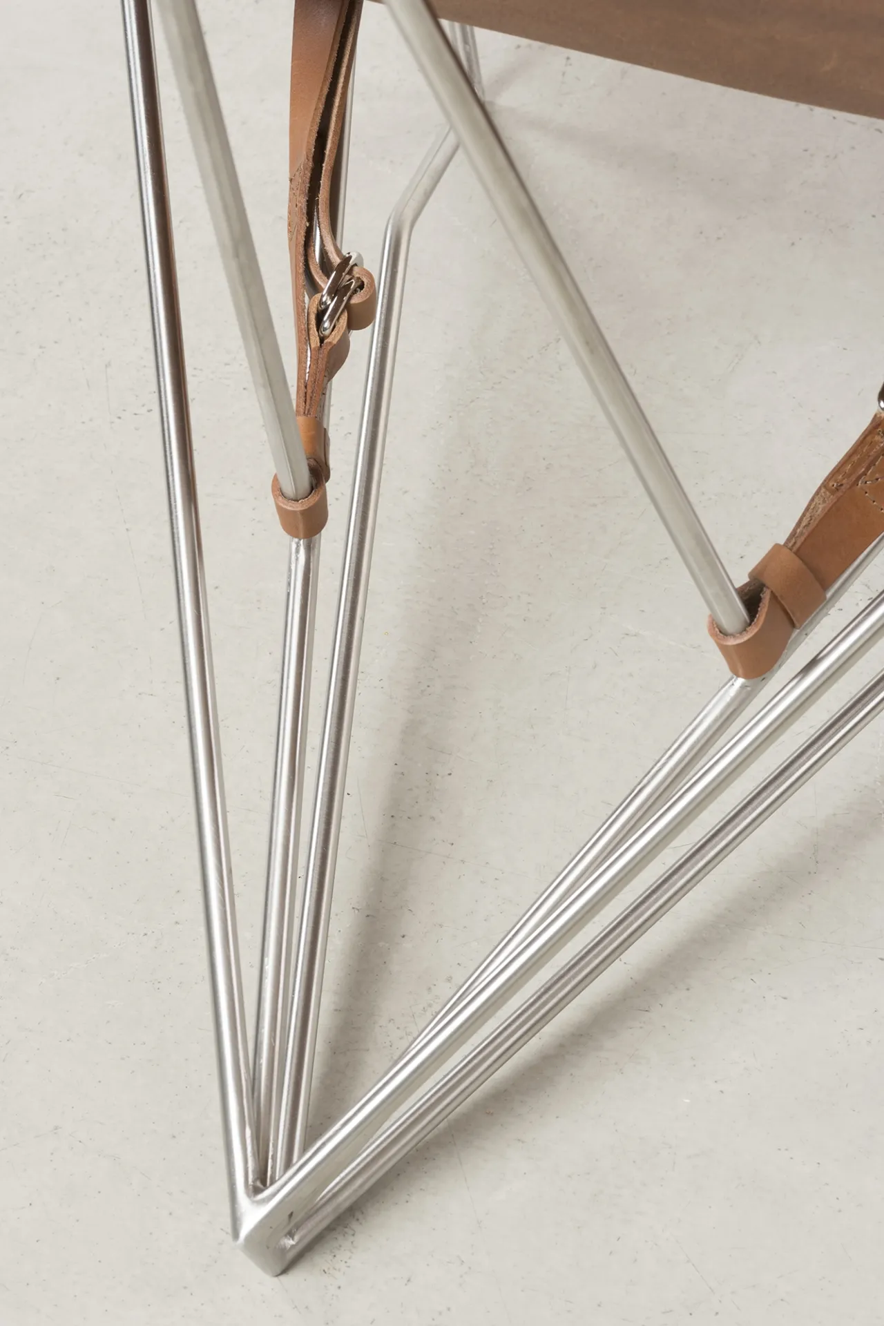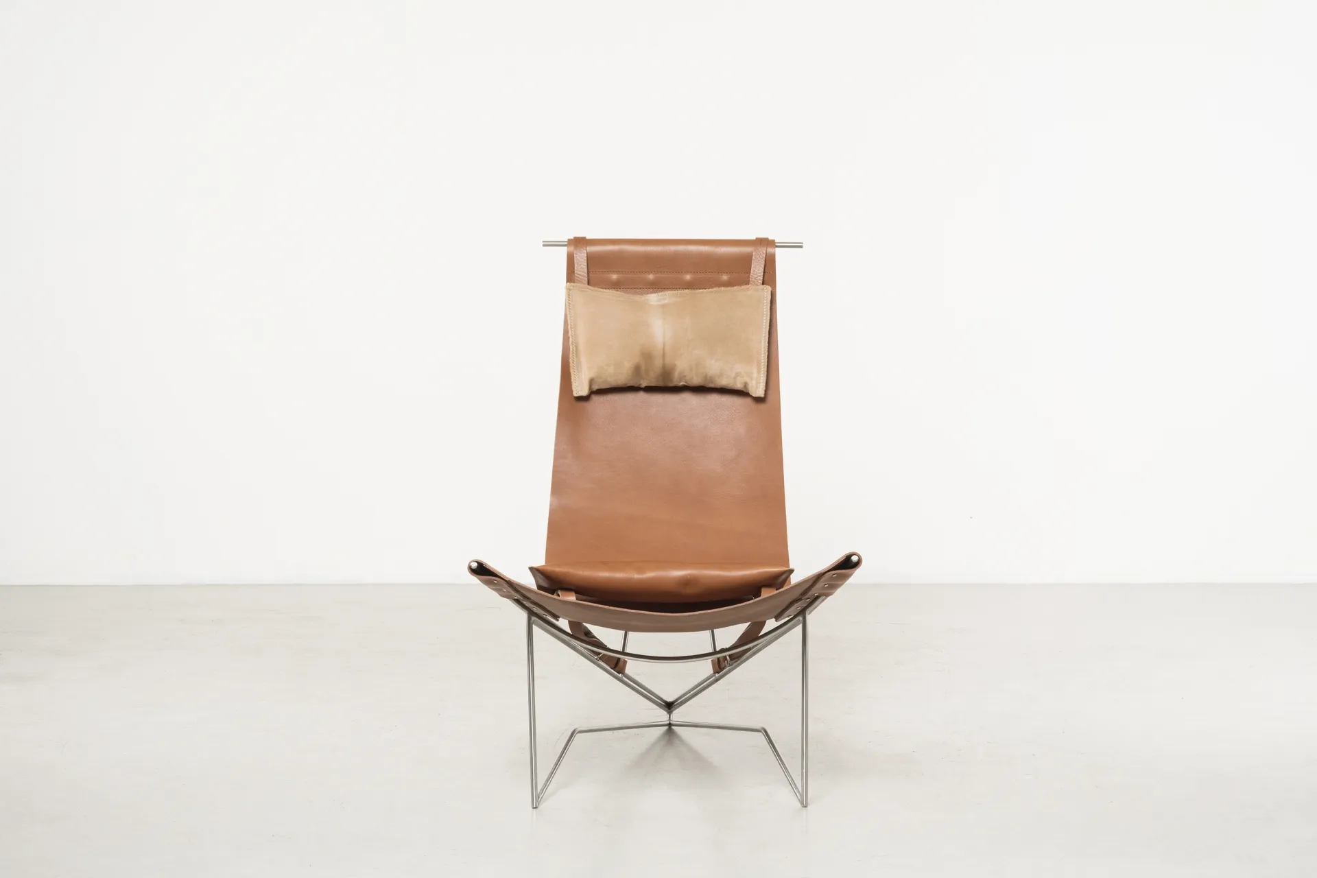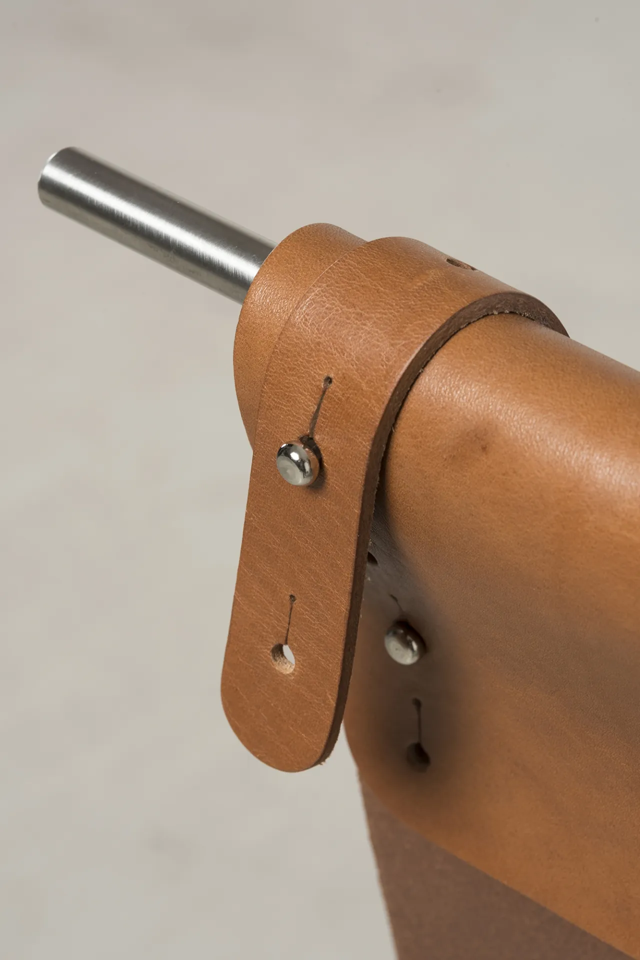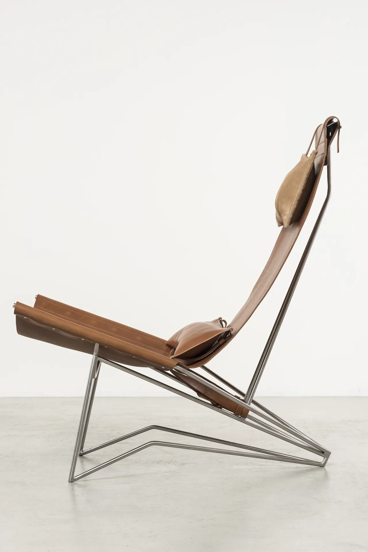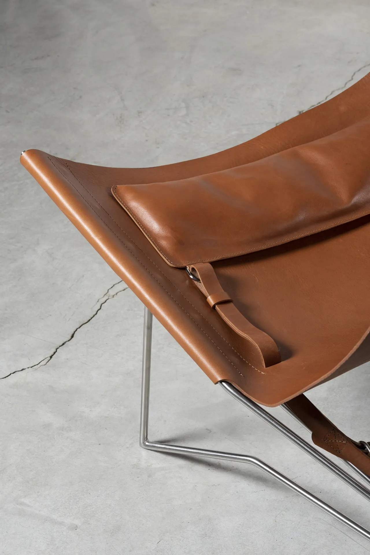 Iron frame, brass, tanned leather, tassel