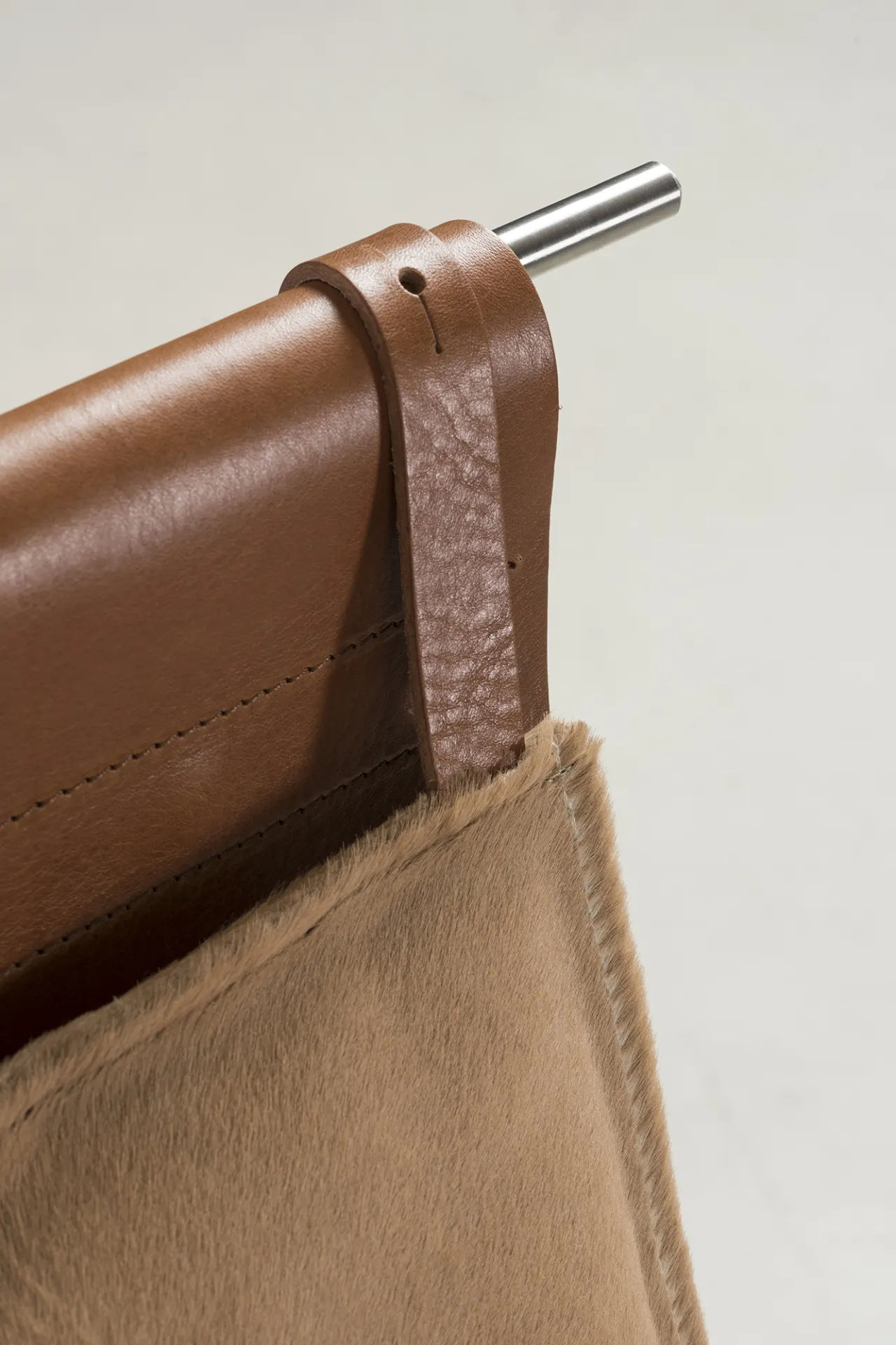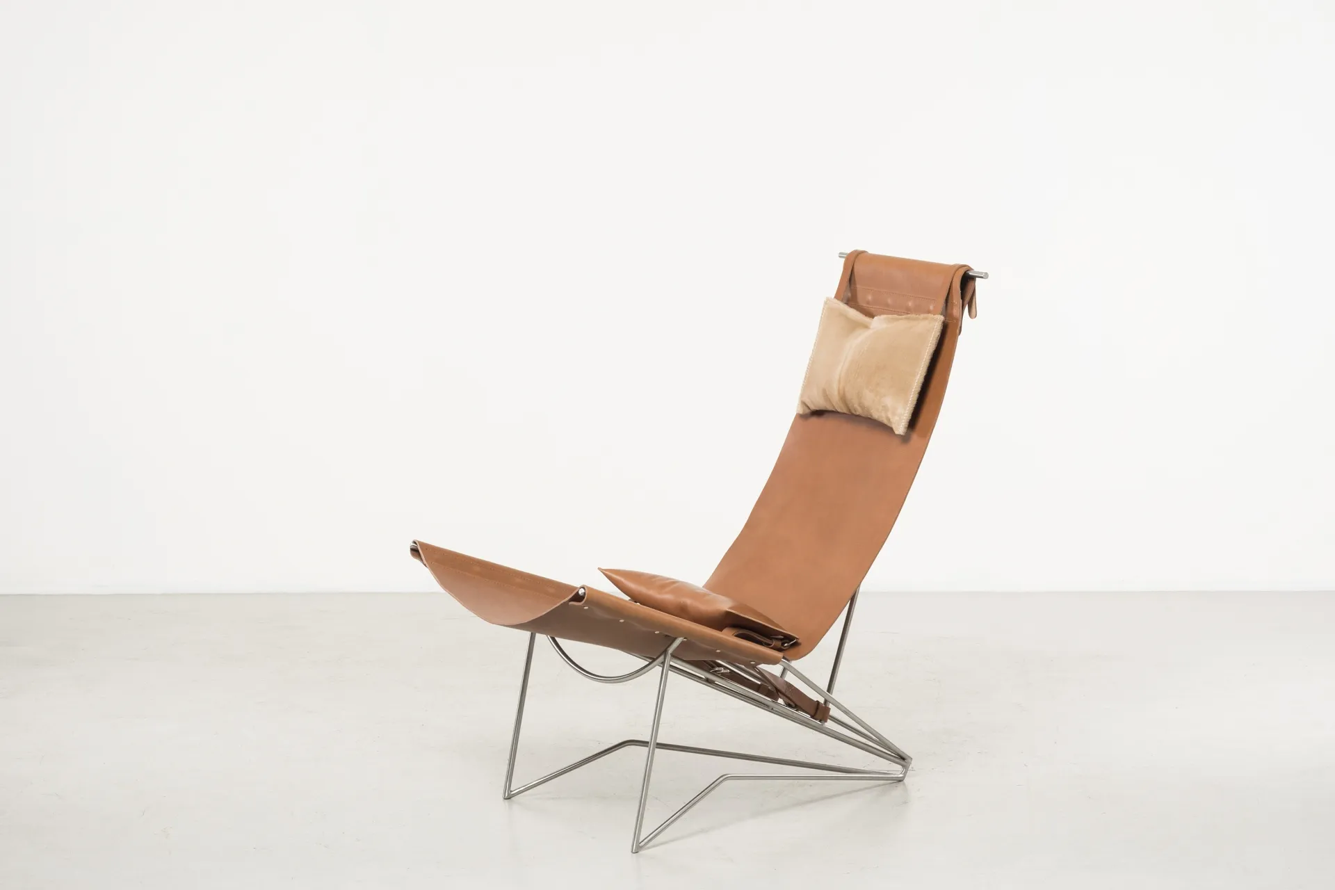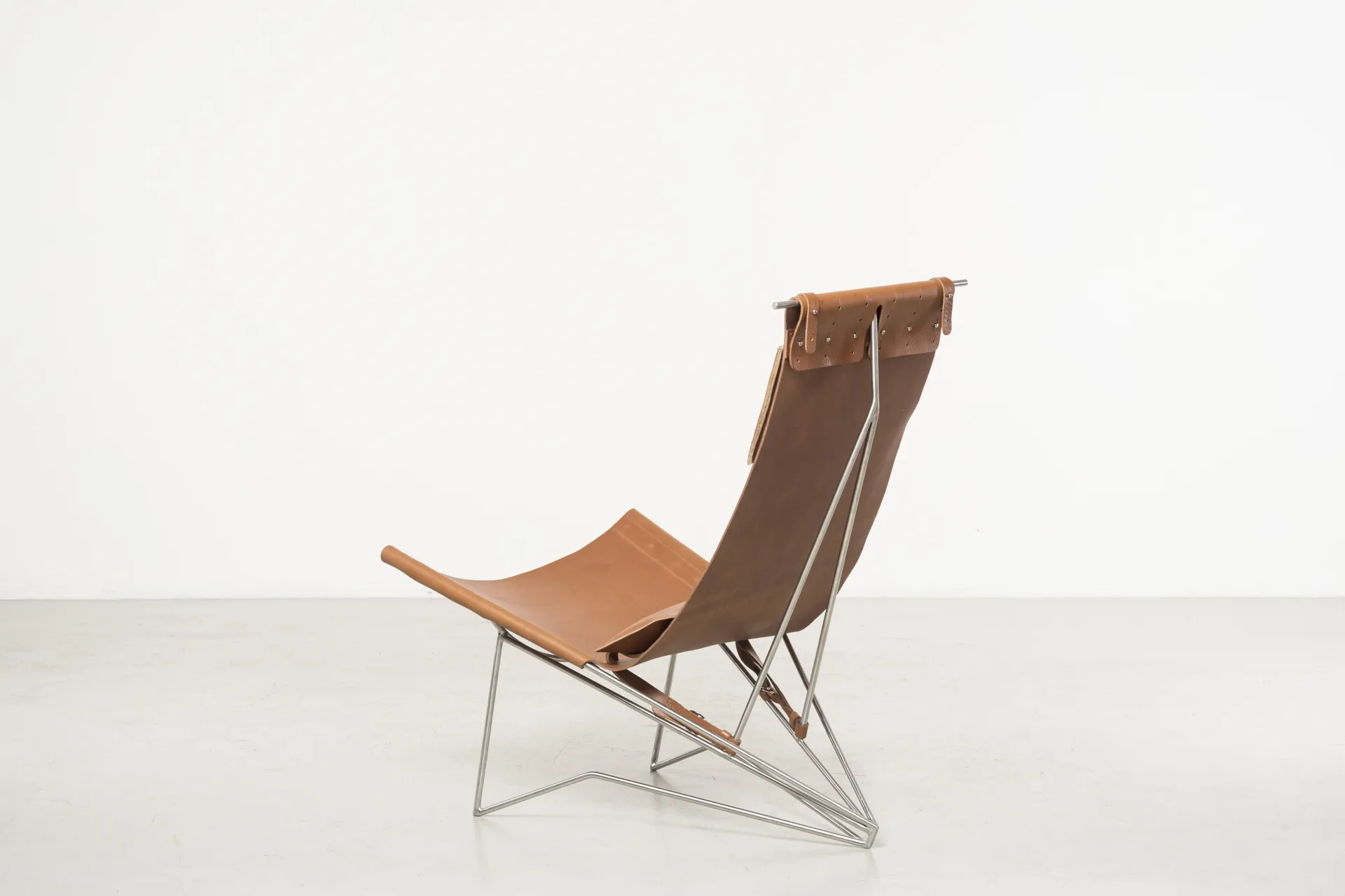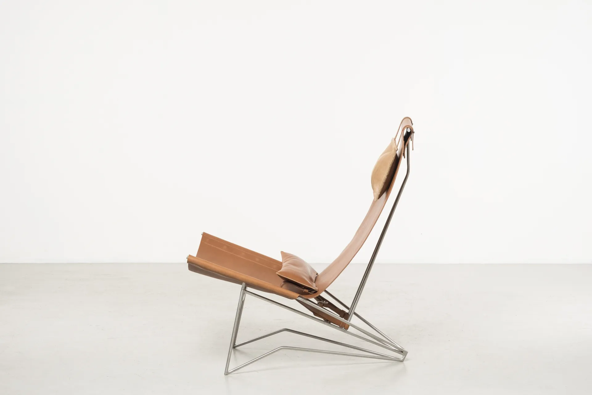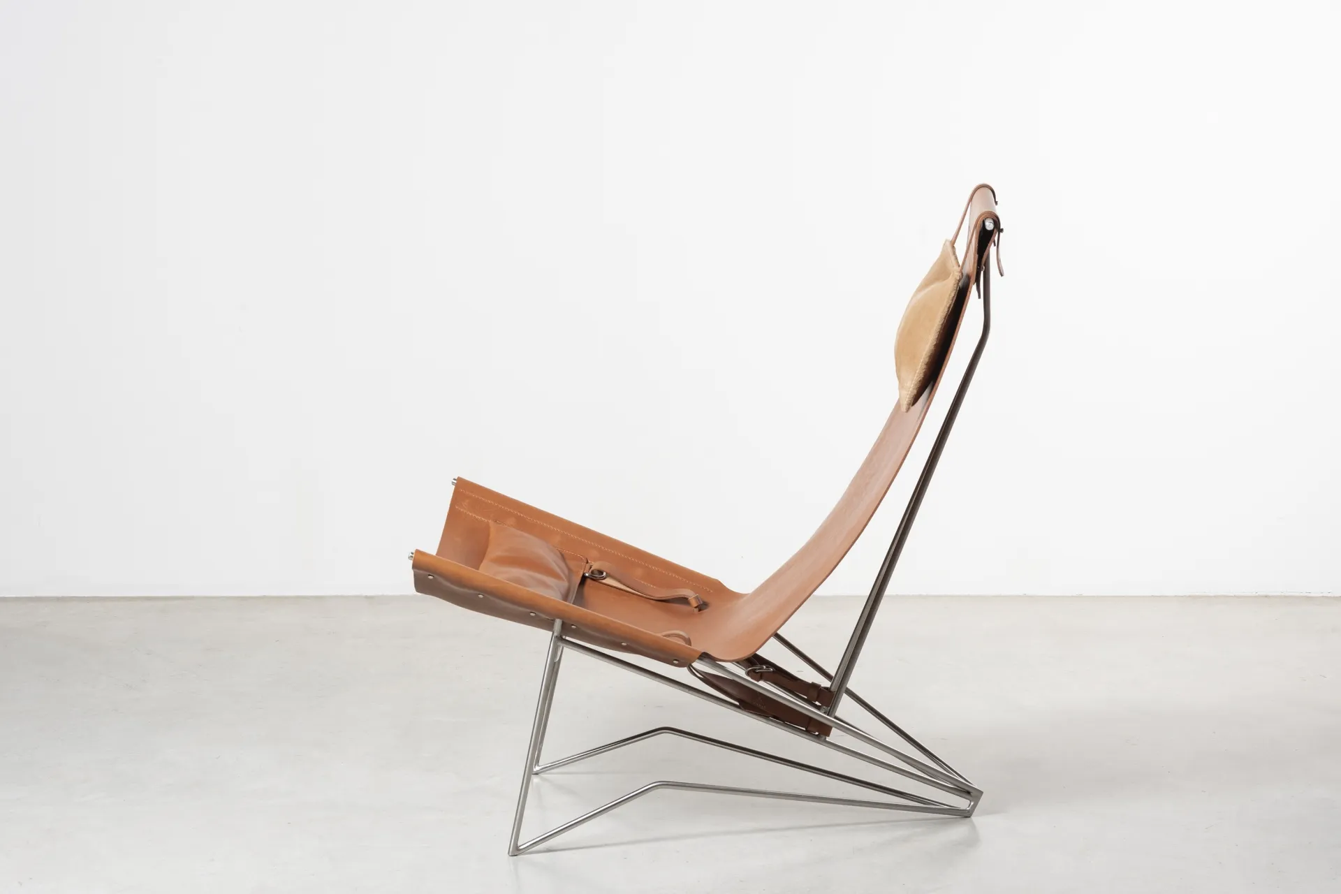 Iron frame, brass, tanned leather, tassel