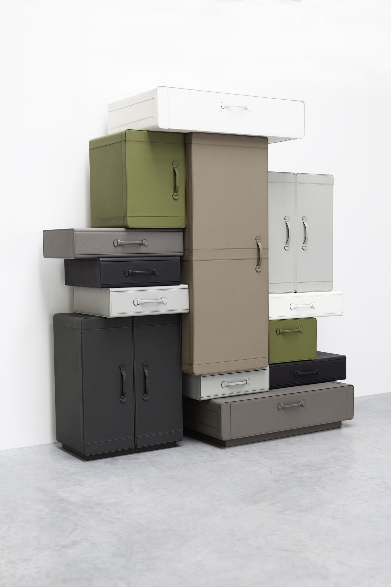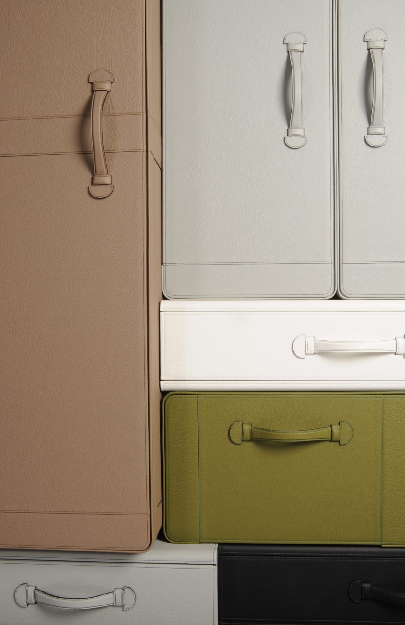 The Pile of Suitcases series reimagines furniture as asymmetric stacks of cabin trunks. Crafted in collaboration with one of Belgium's most renowned leather artisans, each piece is made from precious leather in varying colors and sizes. Exceptional craftsmanship and detailing command instant admiration. Playful yet luxurious, these pieces evoke a sophisticated atmosphere, embodying the spirit of modern nomadism while transcending boundaries in the home. Every piece is unique and customizable in different dimension and color combinations.