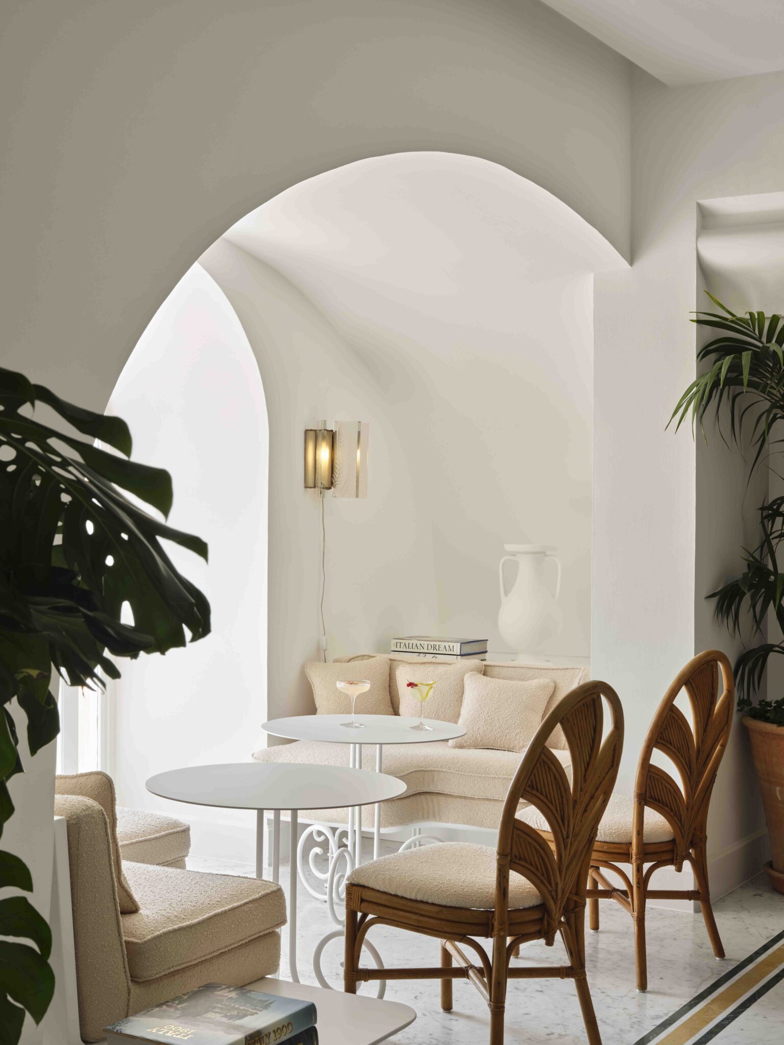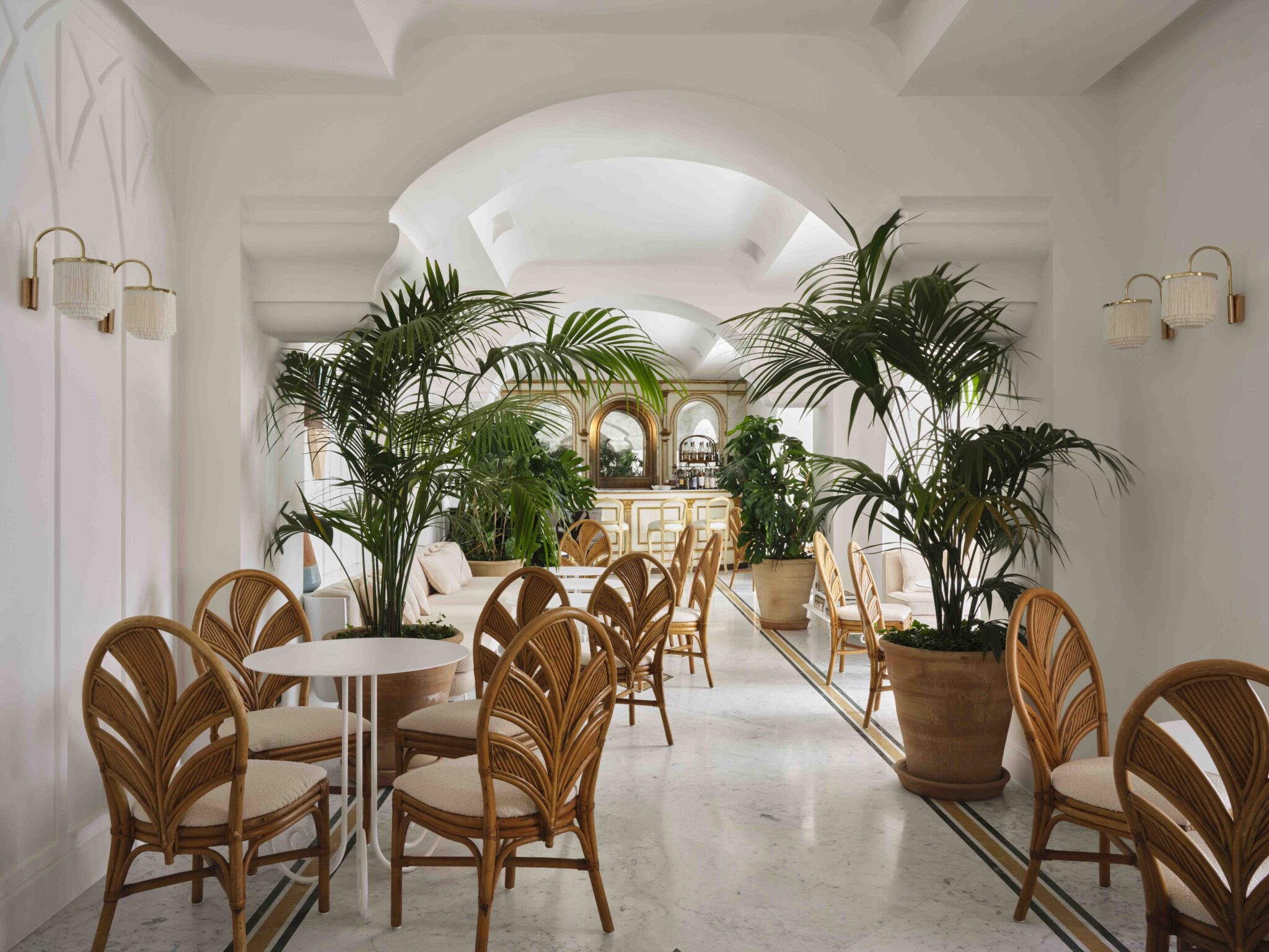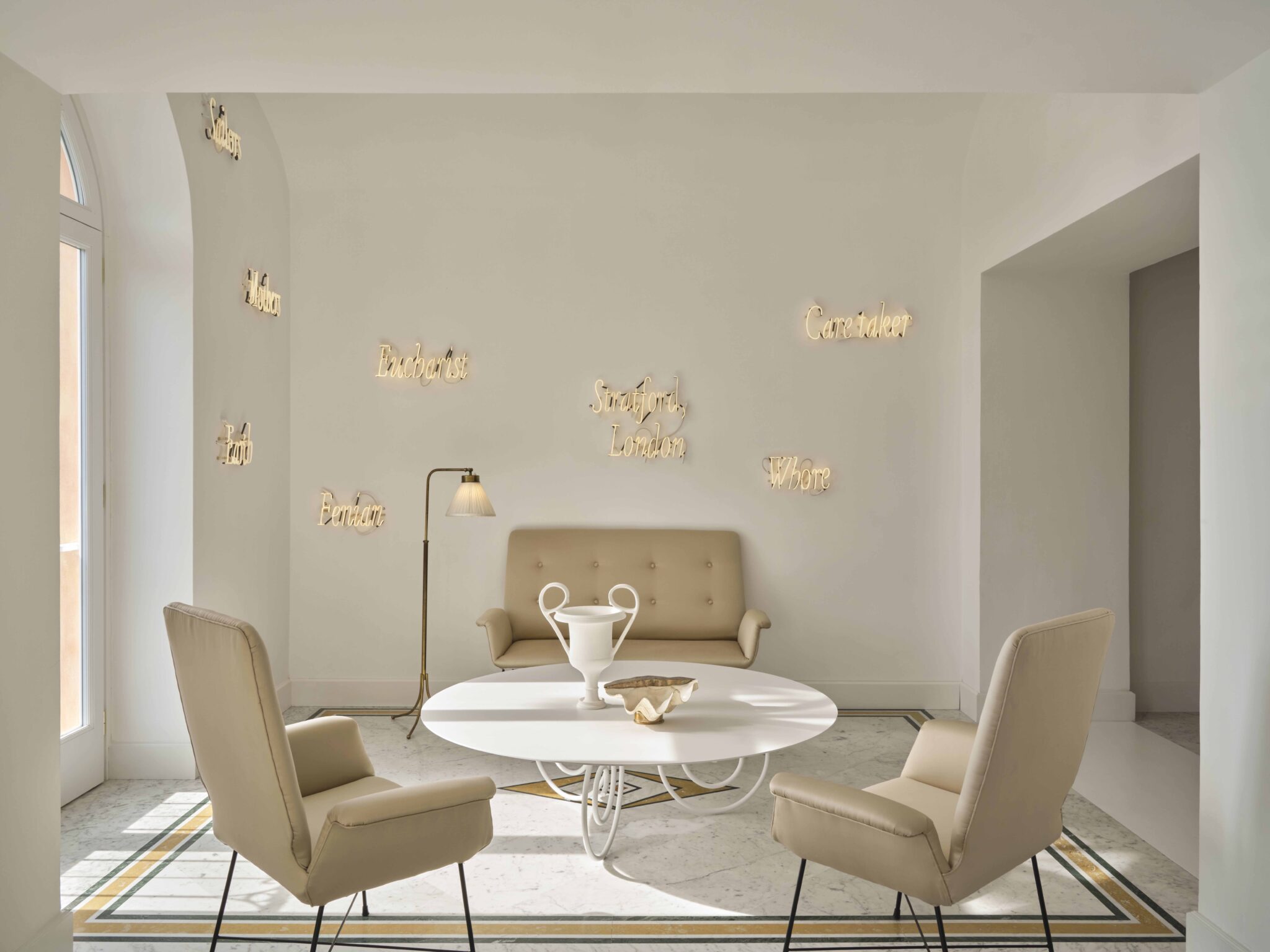 At the heart of the project, Nilufar pieces bring Brazilian 1950s design into the lobby, creating a dialogue with the palace’s Moorish architecture and turning the space into an emotional prologue for guests. The journey continues in the Caffè dell’Arte, where mid-century seating, handcrafted iron-and-glass tables, and thoughtfully placed plants evoke the intimate elegance of a Mediterranean garden. Nilufar’s curated vintage design enriches the interiors, merging history, art, and contemporary vision into a harmonious, immersive experience.